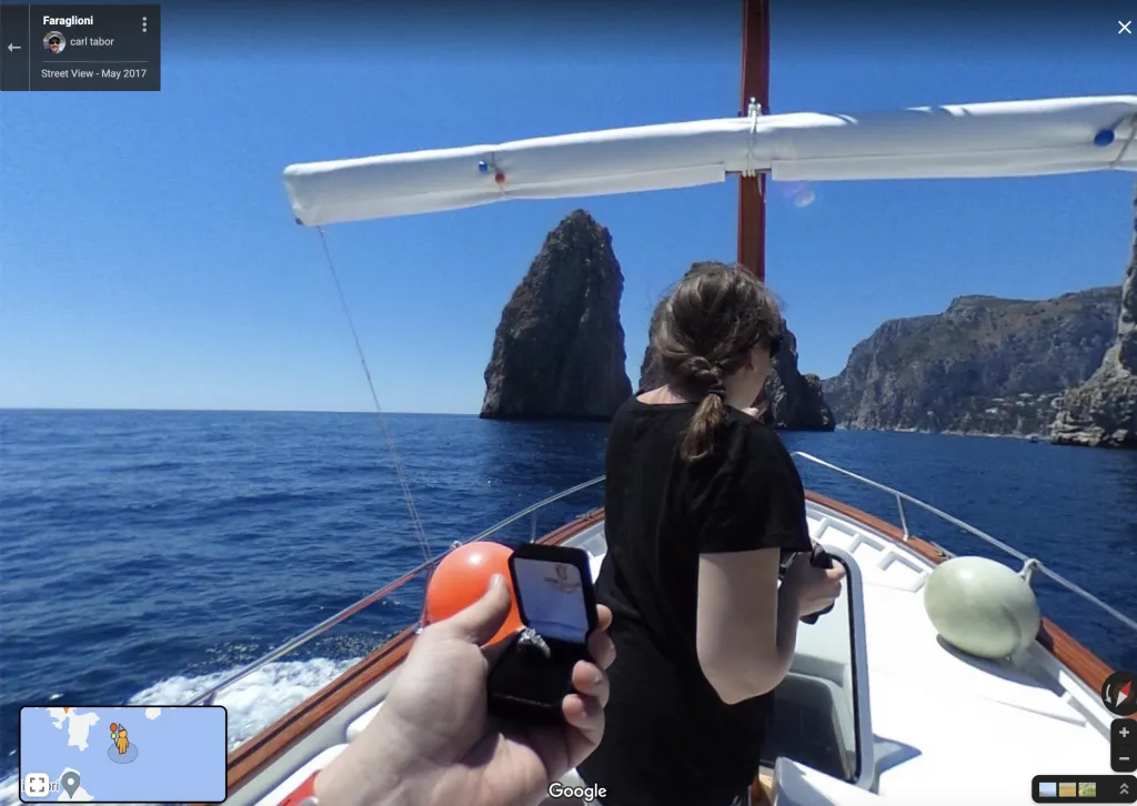 How sweet! Google captured (or it was submitted) a man about to propose to his girlfriend on a boat sailing around Italy.