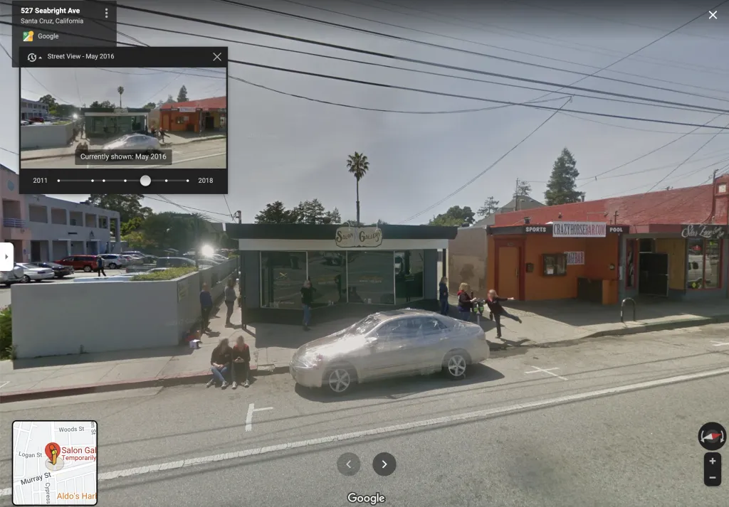 Psst! When you click on these links, some street views have been taken over and over again, so scroll through the dates using the clock/time icon in the top left corner of Google street view.