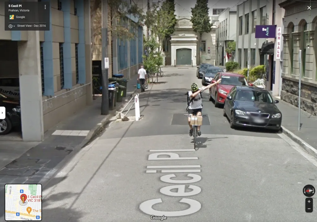 This cyclist dabs for the street view camera in Victoria, Australia.
