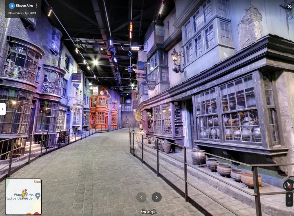 Harry Potter fans! Did you know you can take a stroll down Diagon Alley via Google street view? It’s through Warner Bros. Studios in London.