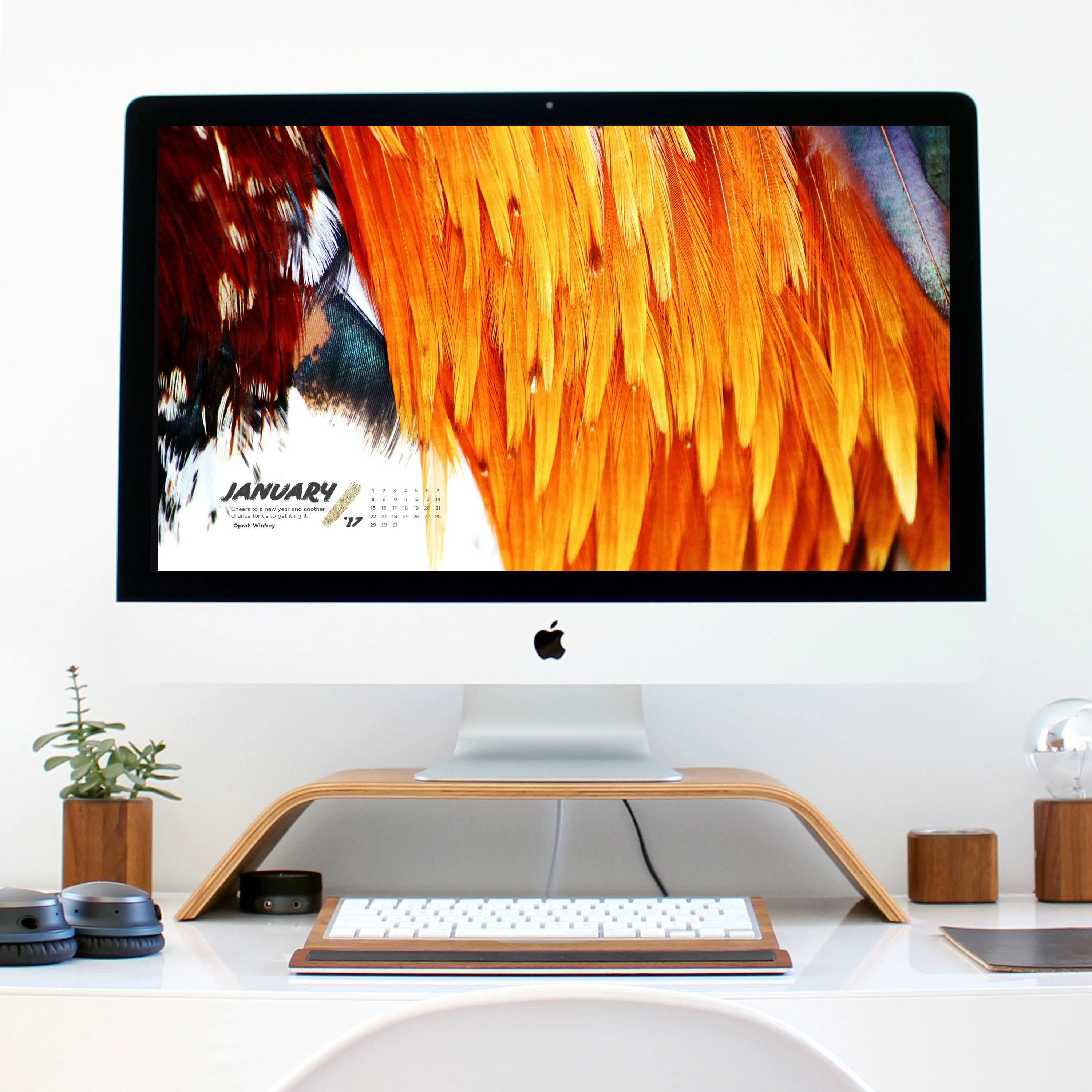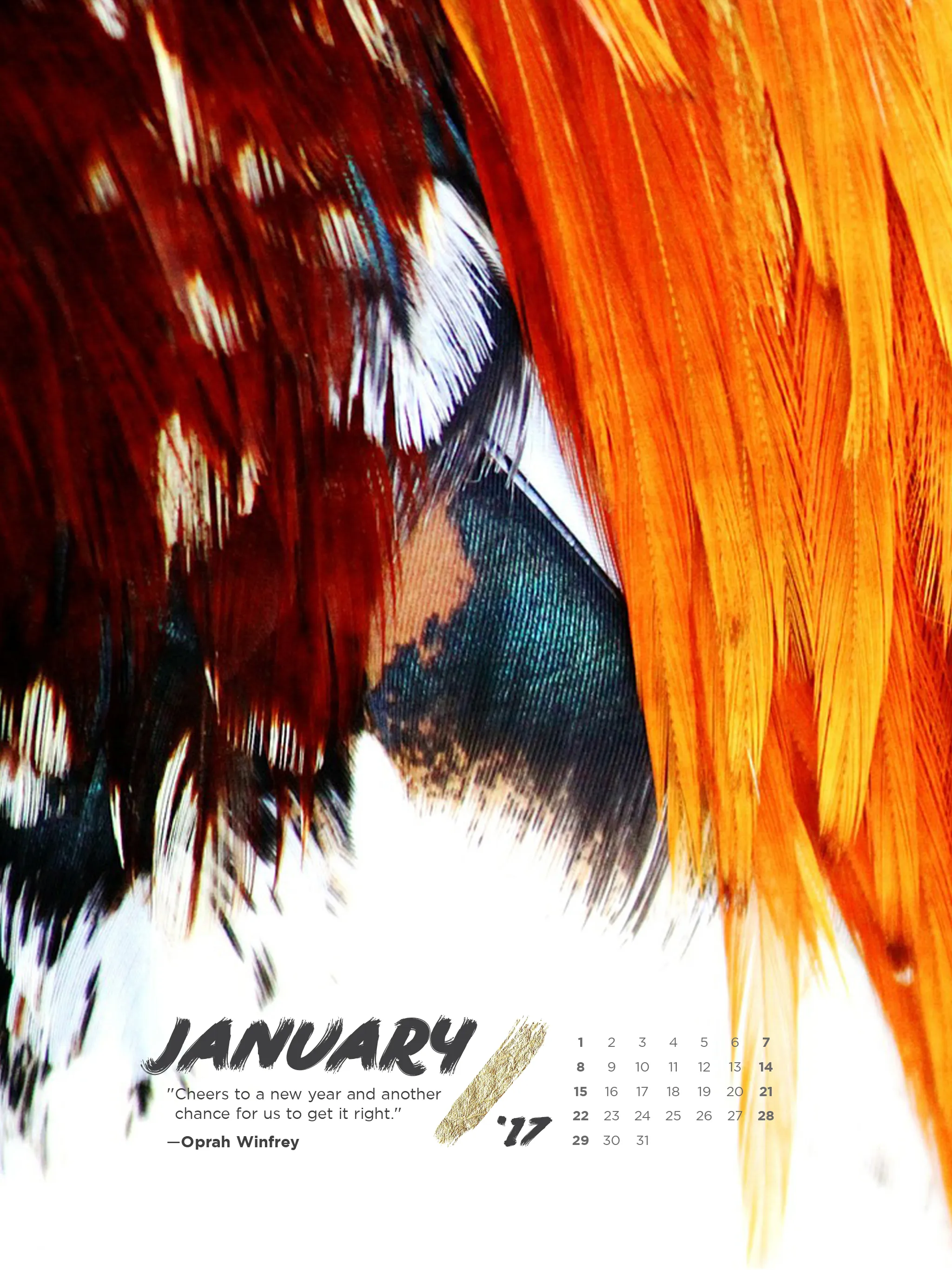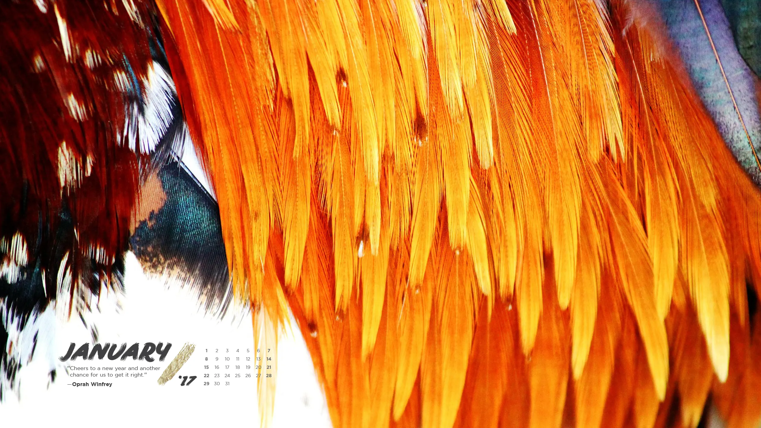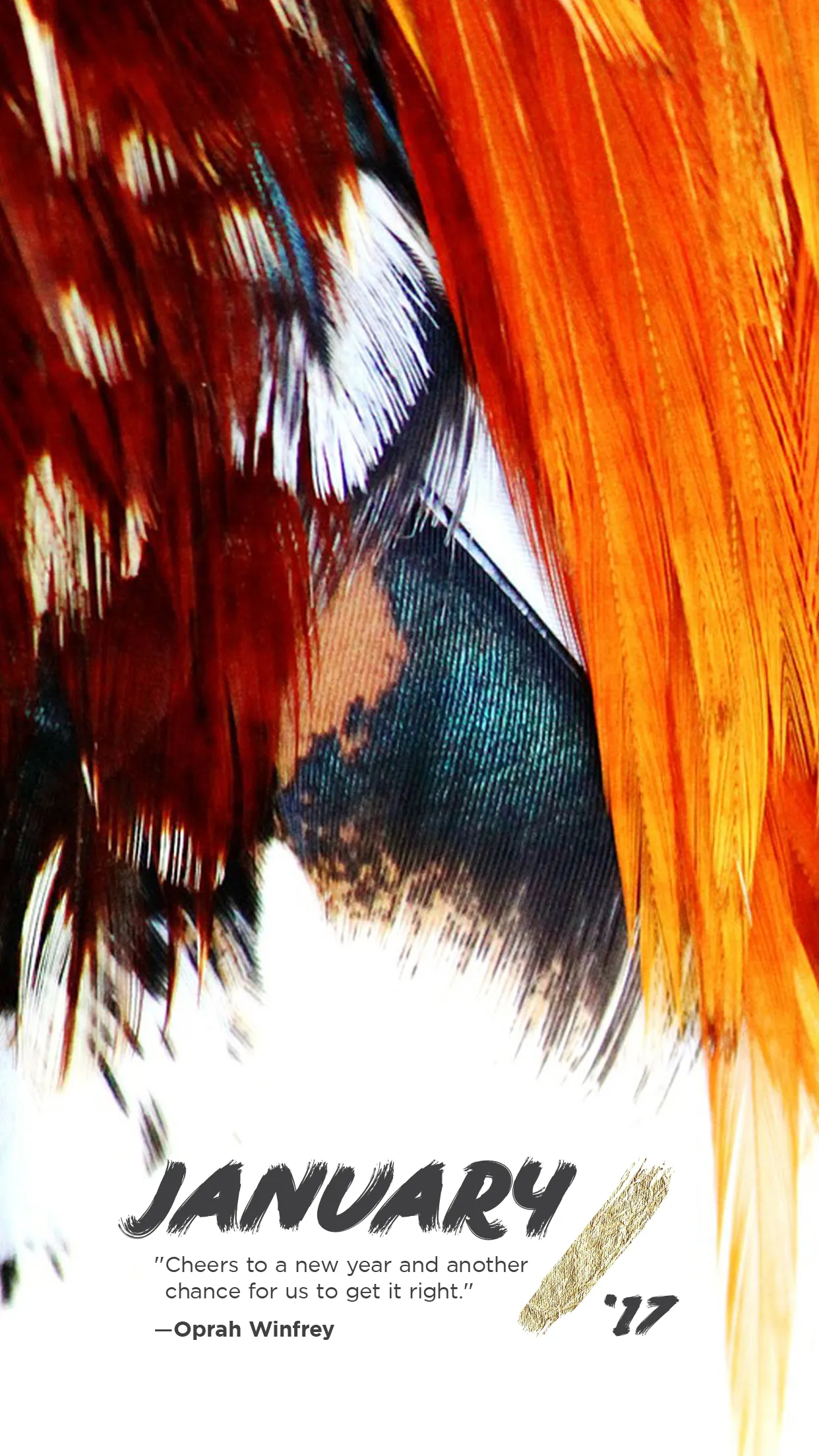 Welcome to 2017! In celebration of January 1 and anticipation to the Chinese New Year which welcomes in the Year of the Rooster happening later this month, we put together a bold, fiery and feathery inspired wallpaper design for you. Enjoy!
