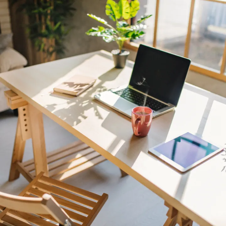 The first step to setting up your workspace is to find a comfortable and quiet location. This could be a corner of a coffee shop, a hotel room, or even a coworking space but it should be a place where you can focus on your work without any distractions.
