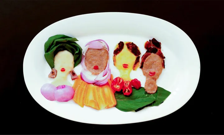 She creates colorful food art portraits depicting regional meals and ingredients.