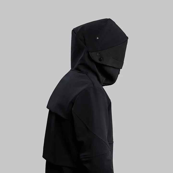 Picture a black hooded jacket with superpowers. The hood can fold down and up not unlike a space helmet and voila you are wearing a portable isolation tank.