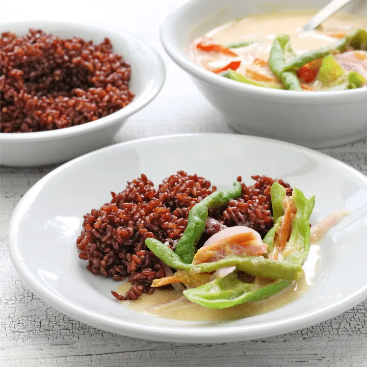 • Most dishes in Bhutan are served with red rice, so you will undoubtedly try it with or without planning on it. The red color of the uncooked rice comes from the antioxidant, the flavonoid anthocyanin. As it cooks, the color fades to a paler red or pink. The rice paddies where red rice are grown are irrigated with mineral-rich glacier water.