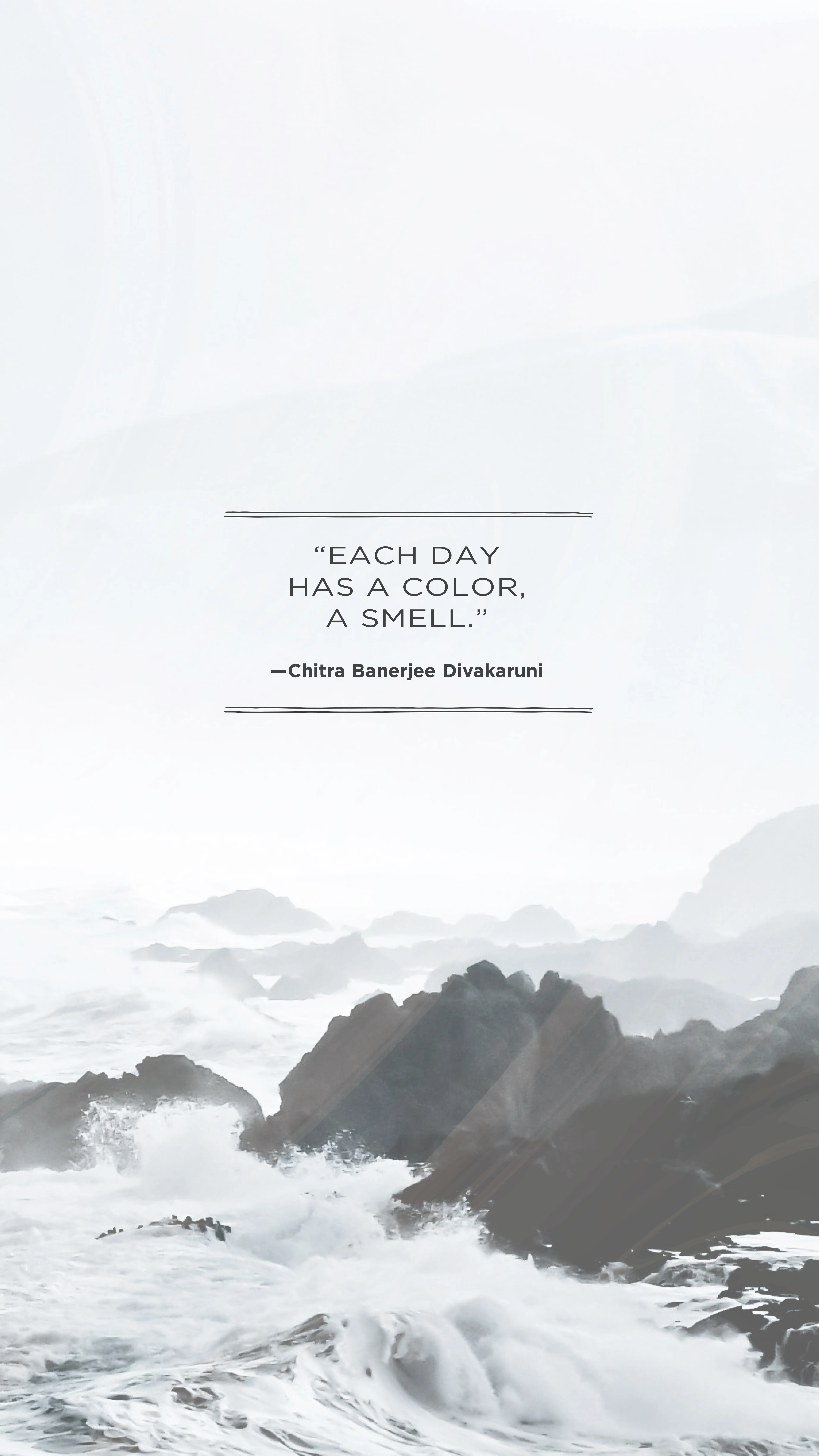 Indian-American author, poet and Professor Chitra Banerjee Divakaruni provides us with inspiration this week. Taken from the novel The Mistress of Spices. “Each day has a color, a smell.”