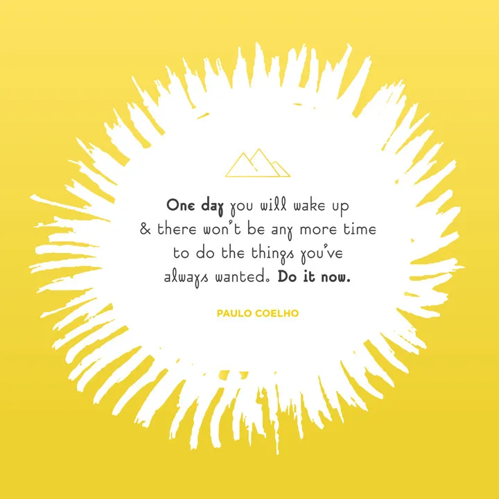 This quote by Paulo Coelho is just that, a verbal kick in the butt, words that really get down to it. Life is short, what are you waiting for? Whatever it is, do it now!