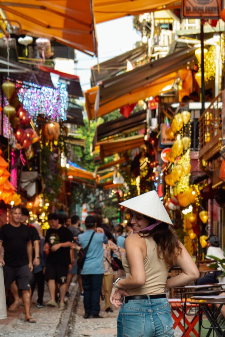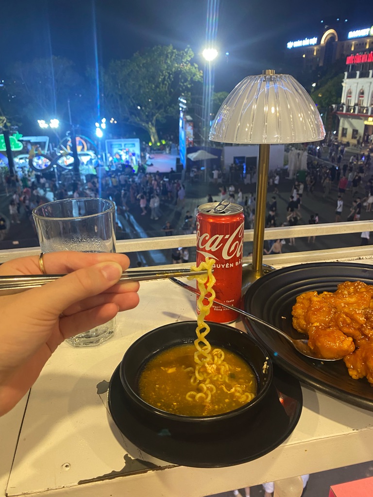 התקלחנו, התלבשנו ויצאנו אל הרחוב הסואן שנמצא מתחת לבית המלון, הרבה אנשים, מוזיקה, הופעות רחוב, אופנועים בכל פינה ומלא מסעדות , התיישבנו במסעדה חמודה והזמנו מרק עוף ואטריות, היה נחמד ממש קצת חסר טעם, לאחר מכן המשכנו לטייל בכל חצי מור עוצר אותך מלצר בשביל שתיכנס אליו למסעדה, בכל מקום תלויות מנורות מהממות ומיוחדות מאוד, עצרנו וקנינו לנו אננס ואכלנו אותו בזמן שראינו הופעת רחוב של זמרת מוכשרת מאוד ולאחר מכן הלכנו לחדר לישון.