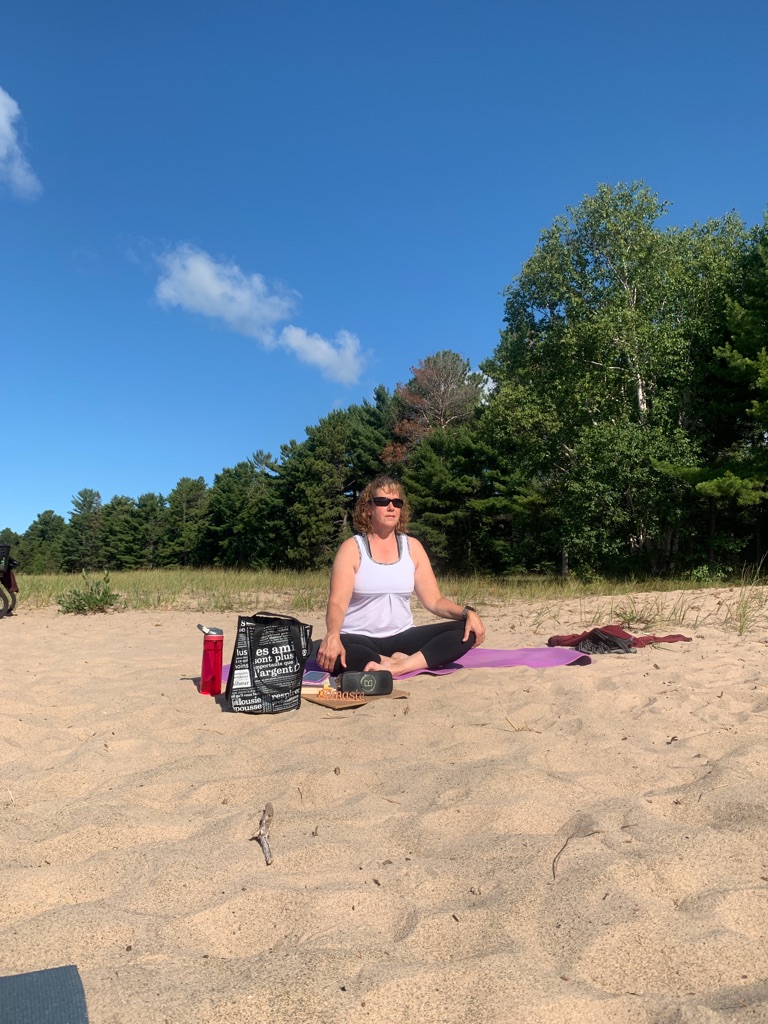We started the day with yoga on the beach at Pancake. The air was crisp, but at the beach it was beautiful. You could feel the sunshine and the warmth of the sand. Teresa also joined us and we had a total of 10 participants.
