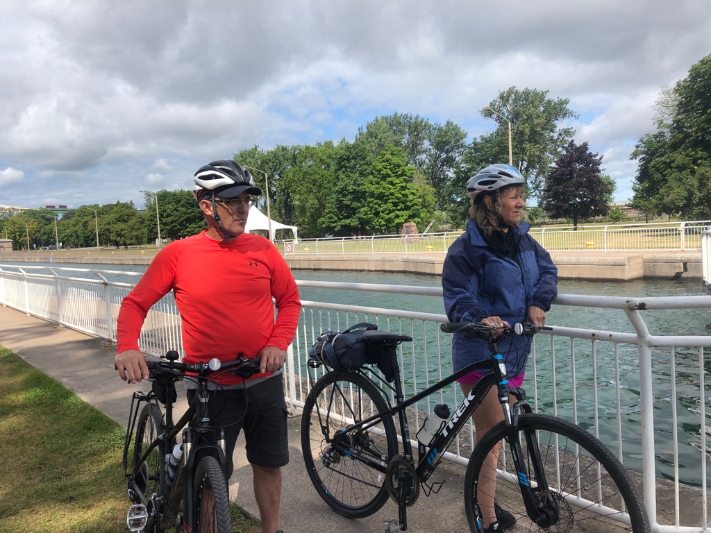 We started our day by exploring the HUB trail along the waterfront. Unfortunately much of Whitefish Island was underwater and not passable on our bikes. We did see a boat passing through the locks.