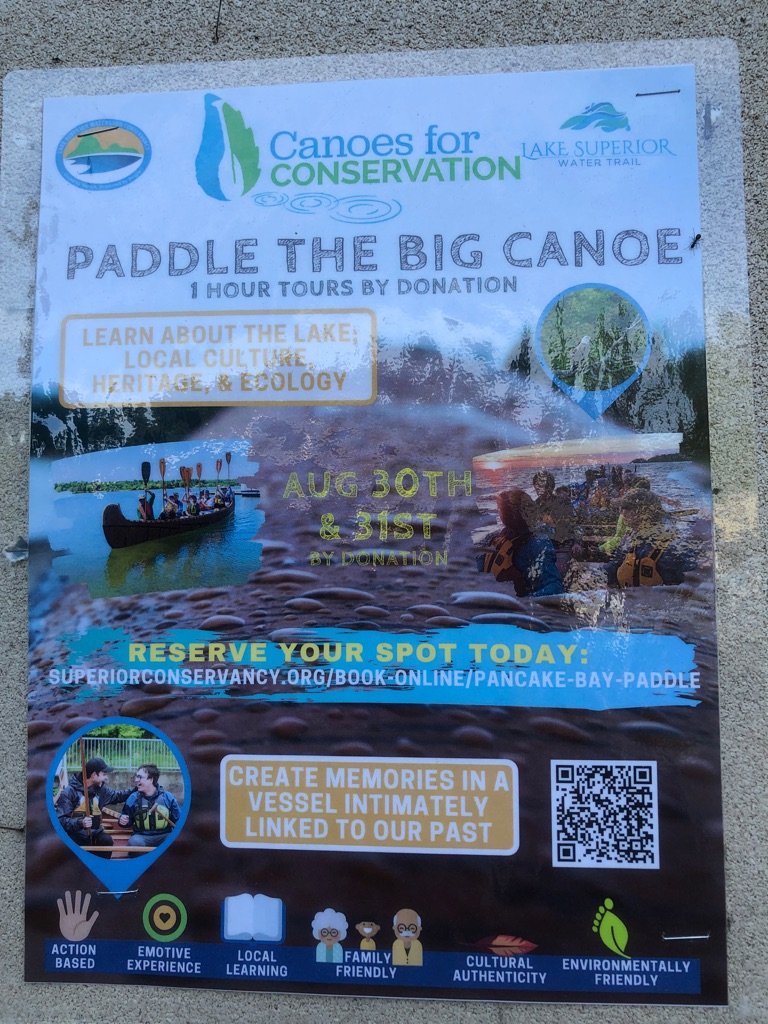 We started our day with the big canoe paddle. An amazing experience and lots of history shared about the Voyageurs. We had the pleasure of meeting Joany McGuffin..she is the executive director for the Canoe company and also an published author of several canoe books and the movie Painted Lands.