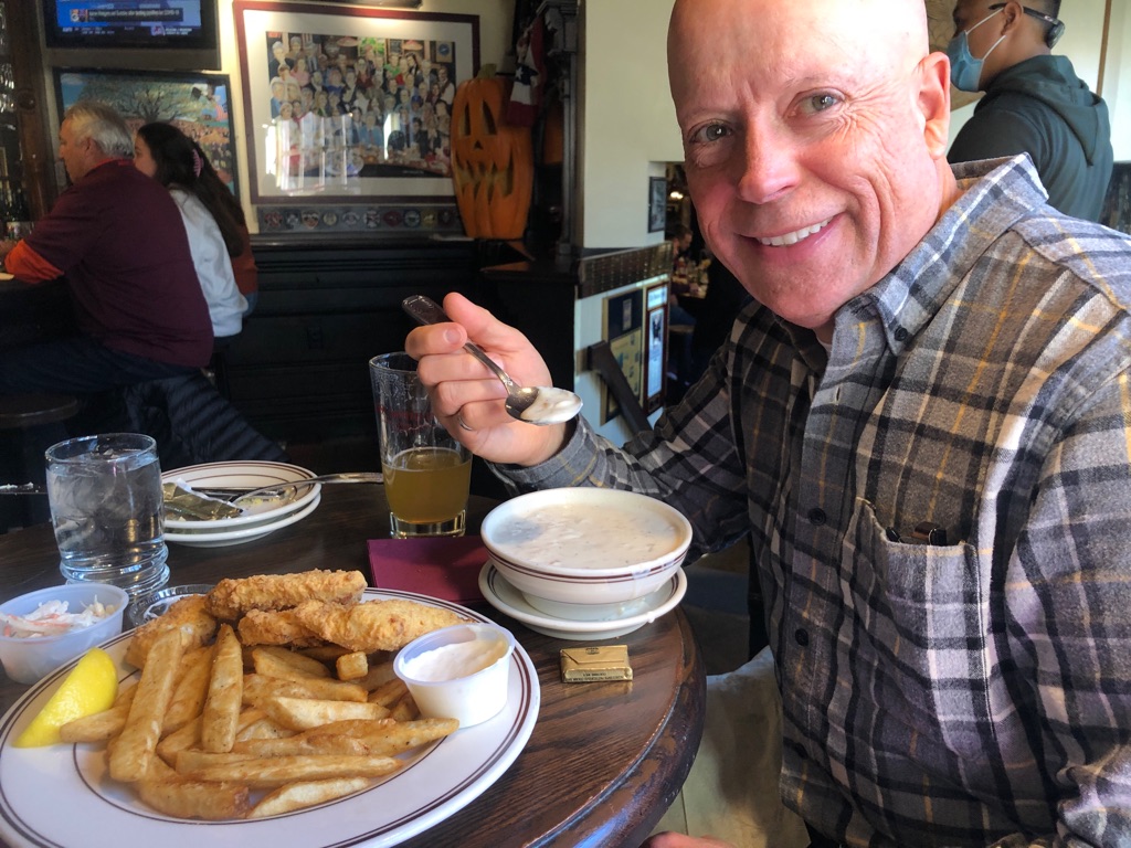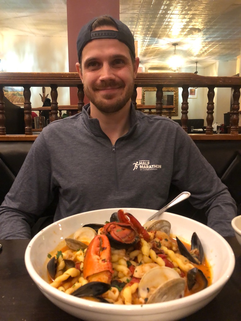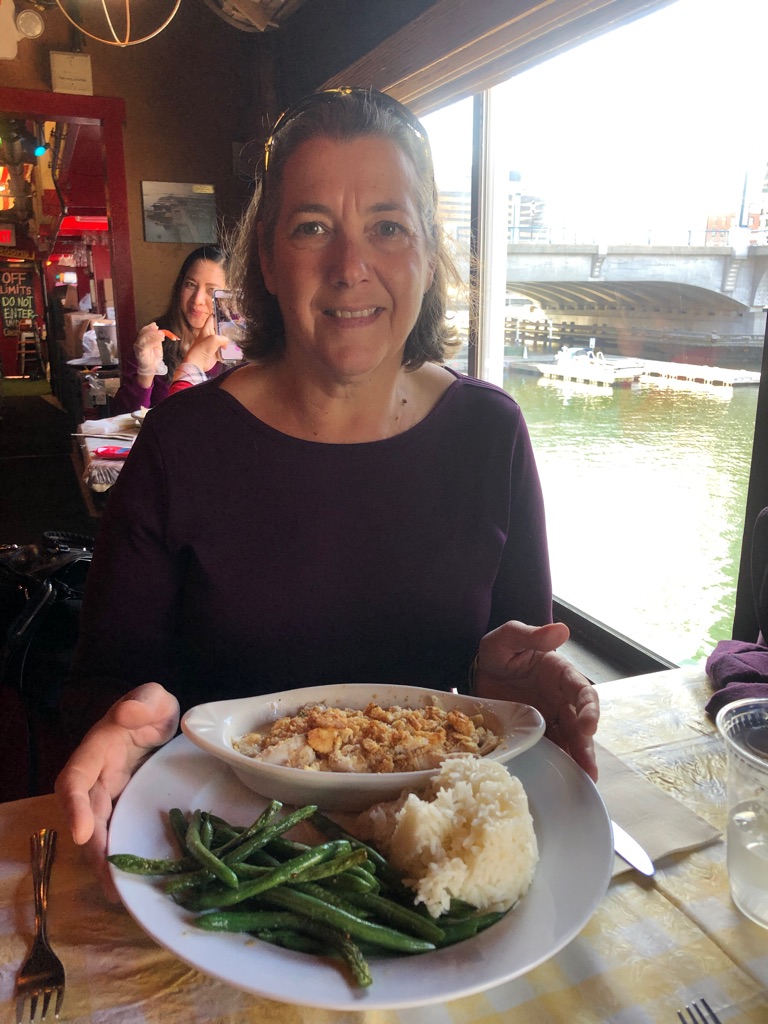 After about a 45 minute walk along the Charles River we headed to a restaurant that Matt had planned for us, The Salty Girl. Boston is known for its seafood and this place was the first of so much we would see. Ed decided to go out on a limb (or maybe I should say claw) and followed the recommendation to have lobster and waffles with maple syrup. He was not disappointed.