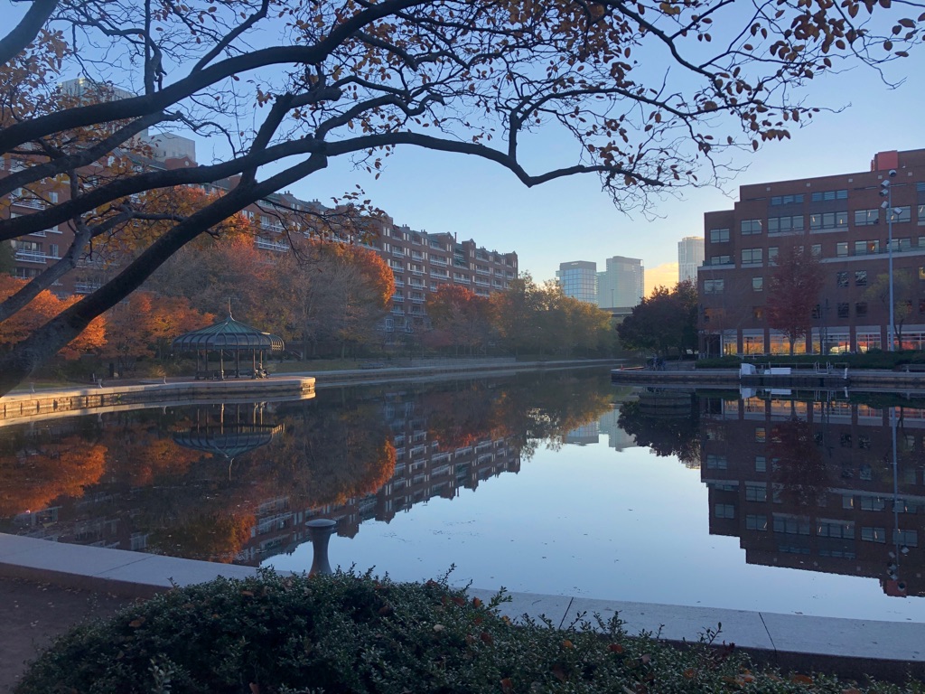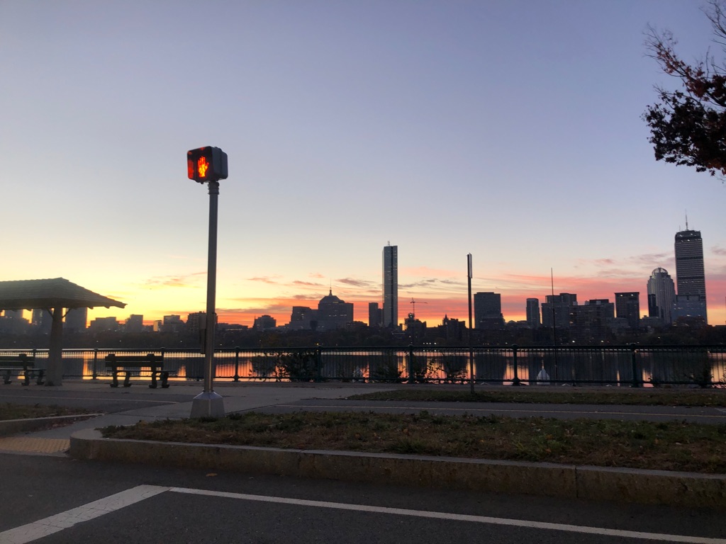 We parked and took a stroll to explore the Esplanade along the Charles River. It was only 6:45ish but already very dark here. We strolled along the bike path which was busy with lots of runners and cyclists.