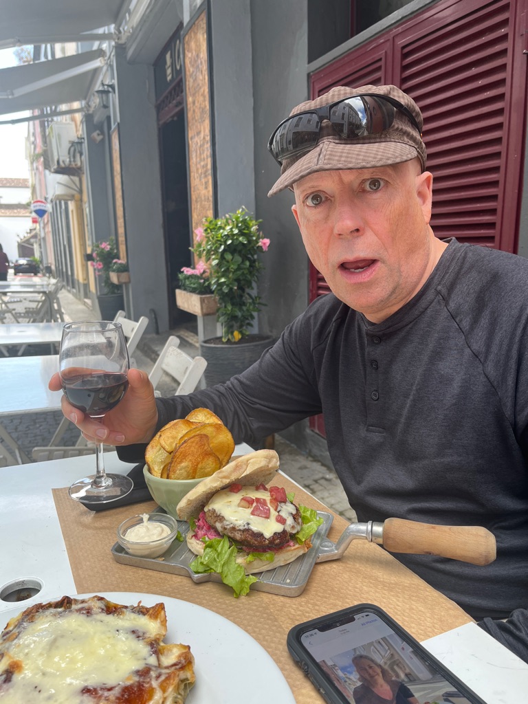 Ed was able to find his morning espresso and we sweetened it up by adding a Pastal de Nata (homemade Portuguese custard tart). \240We connected to wifi and had a wonderful FaceTime with Jude. \240It wasn’t until we were sitting having our lunch later in the day that we realized that we left the cafe and neither of us had paid! Yikes!!…. Now we are trying to figure out a way to send them the payment.