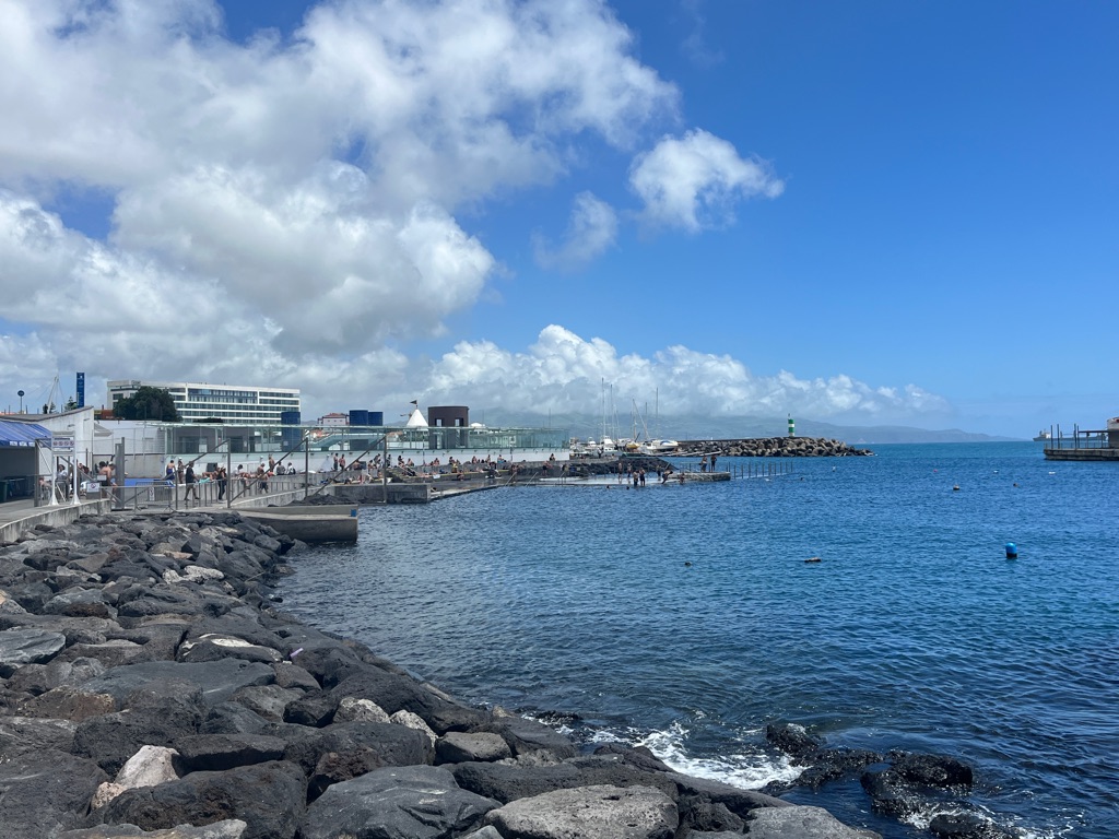 The Azoreans say they can experience 4 seasons in one day, we have heard this from several people on different islands. Today the air was foggy, misty and damp in Angra. On our 15 minute drive to the airport it completely changed and this area is sunny and warm. The hills and caldiera create microclimates. Layering of clothing and jackets is a must here.
