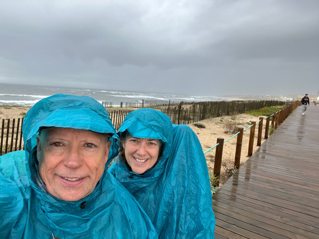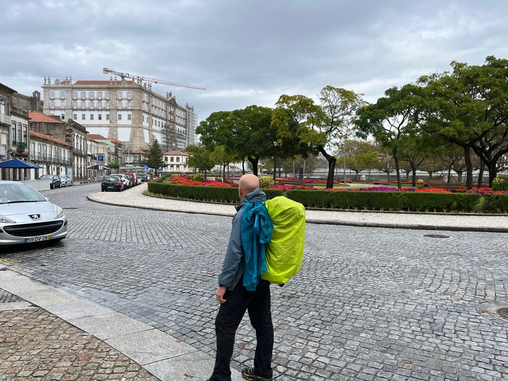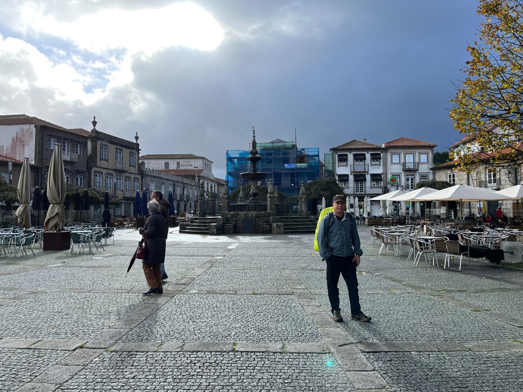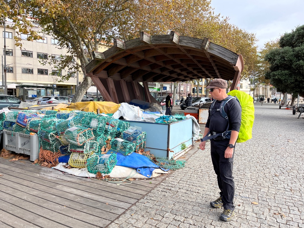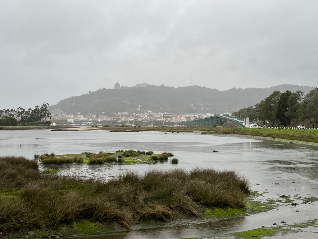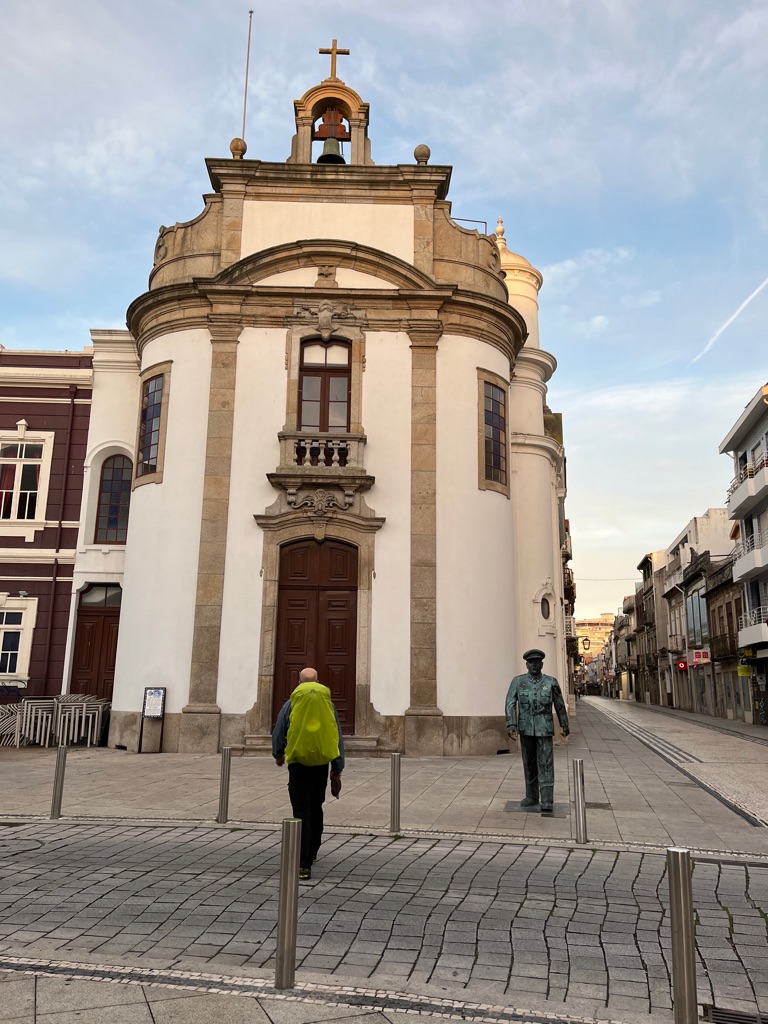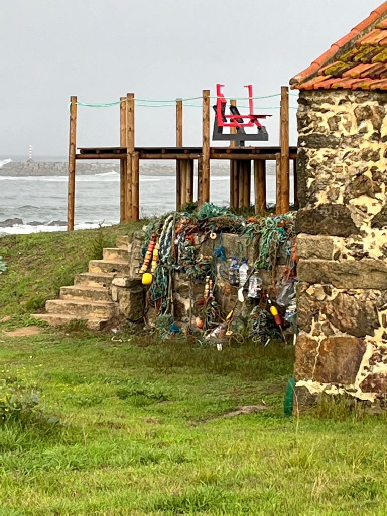 At about 10 am we entered the large city of Viana do Castelo. There was a very very long bridge as you enter the city. Normally this would have been a great vantage point to take photos, however today we were in a downpour at the time we were crossing, the wind kept wiping our ponchos and us. I was holding onto the bridge with one hand and my poncho with the other so I could see where I was going. Our first coffee stop was just across the bridge and we lingered here quite a while until the rain seemed to subside a bit.