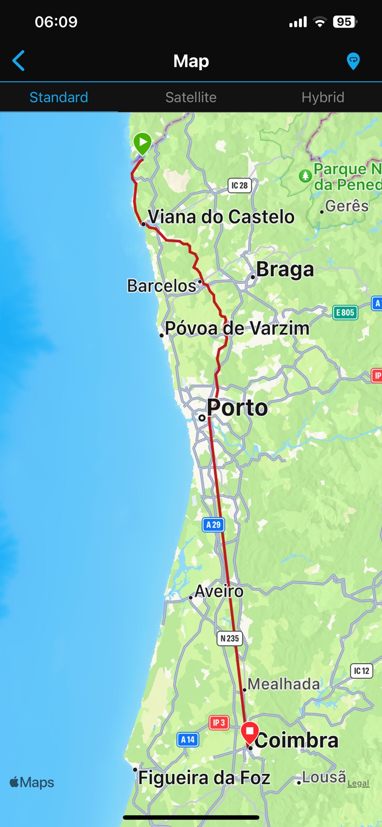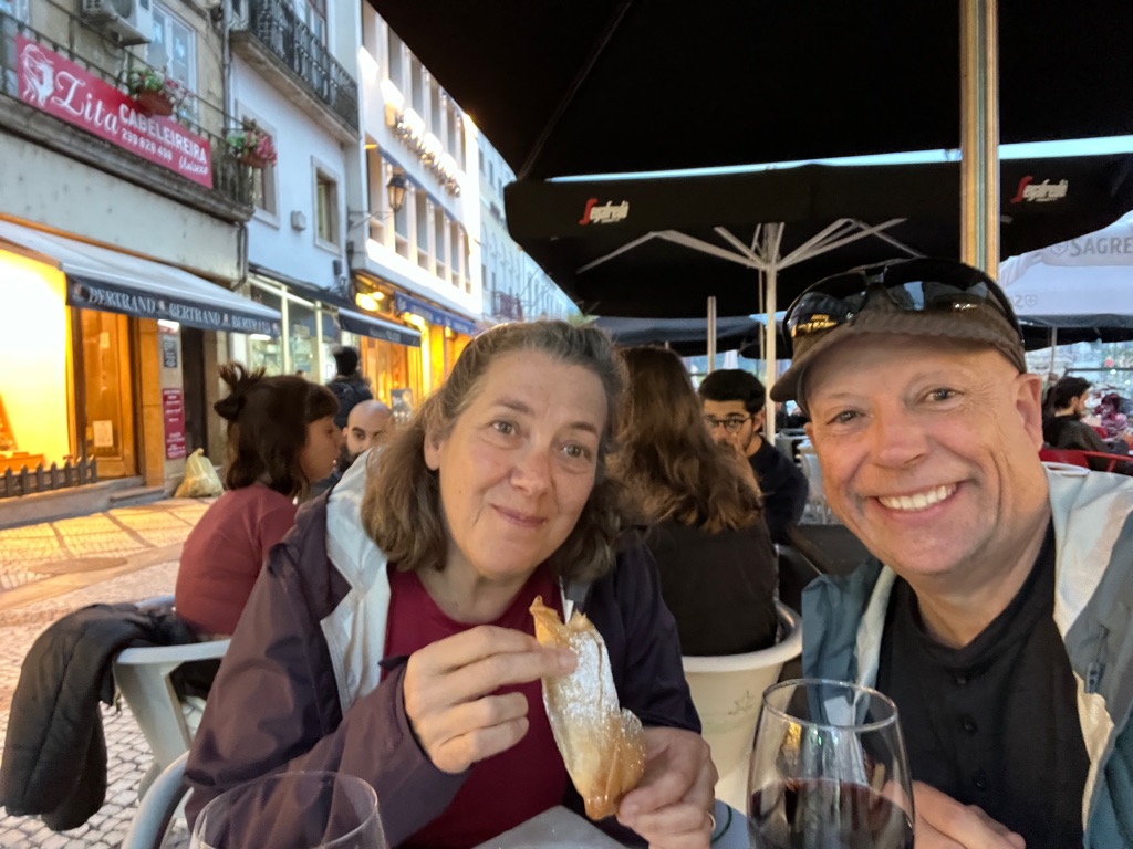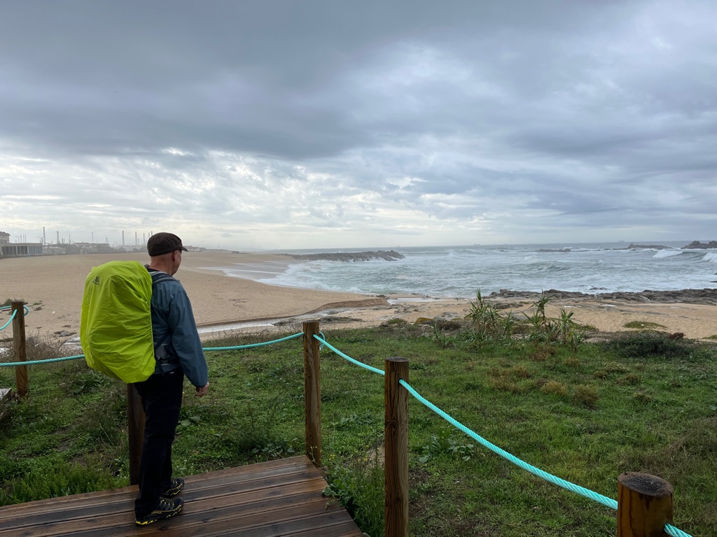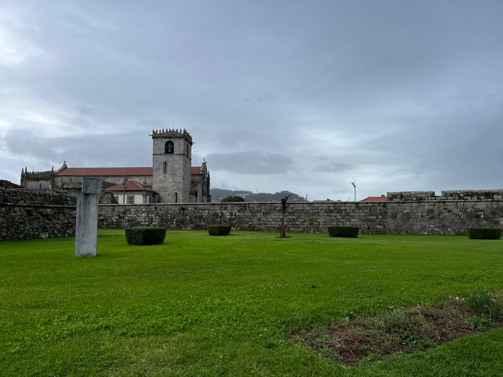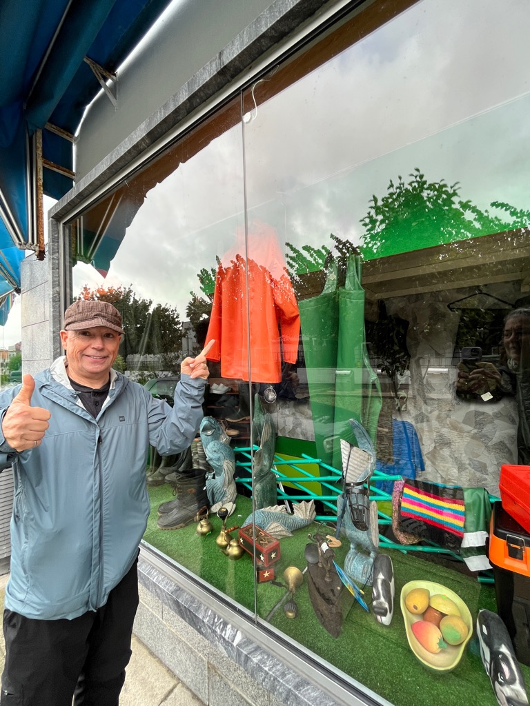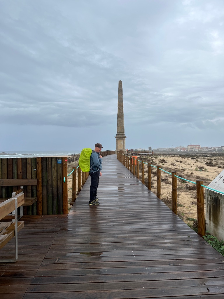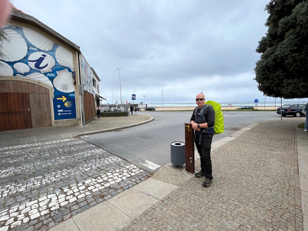 At about 10 am we entered the large city of Viana do Castelo. There was a very very long bridge as you enter the city. Normally this would have been a great vantage point to take photos, however today we were in a downpour at the time we were crossing, the wind kept wiping our ponchos and us. I was holding onto the bridge with one hand and my poncho with the other so I could see where I was going. Our first coffee stop was just across the bridge and we lingered here quite a while until the rain seemed to subside a bit.