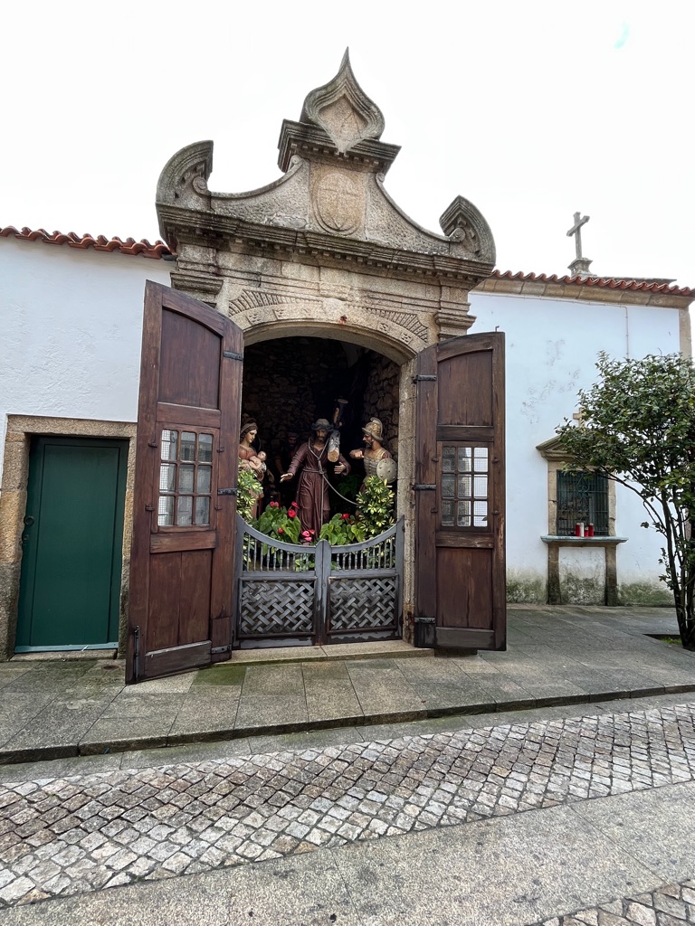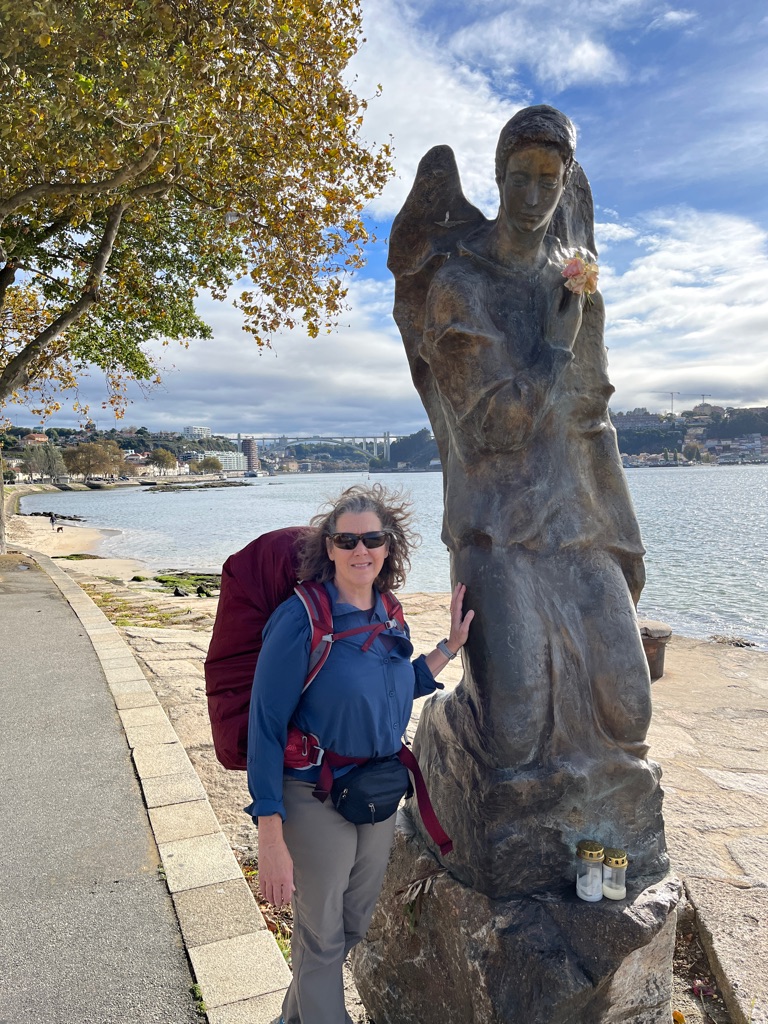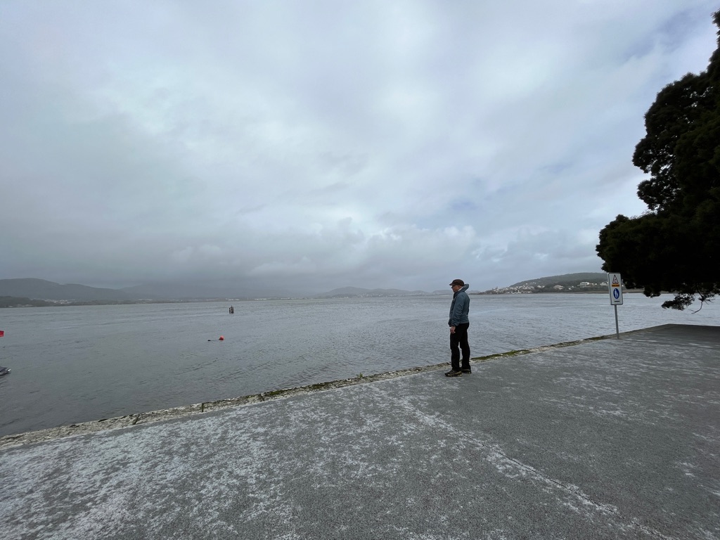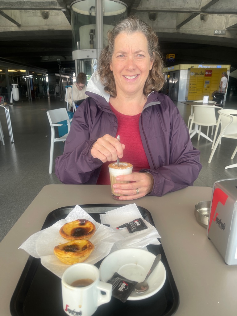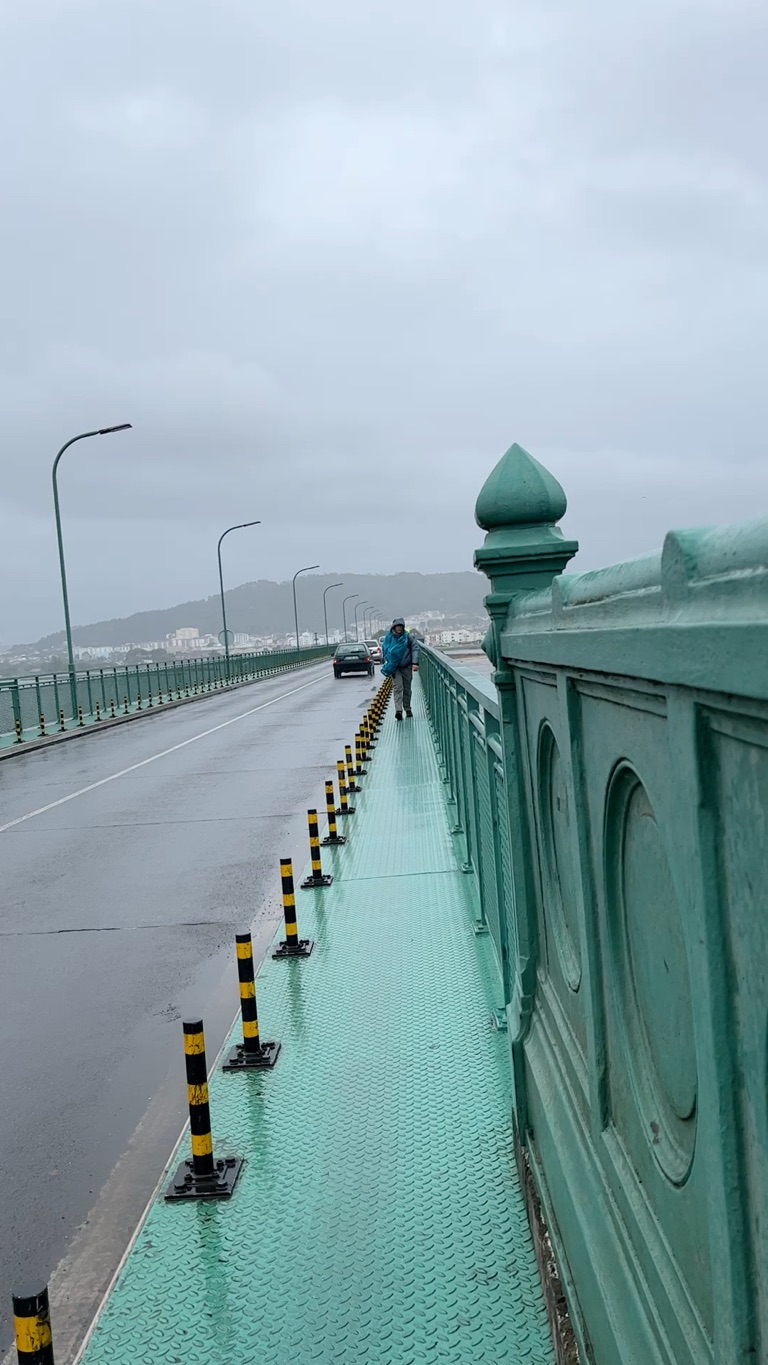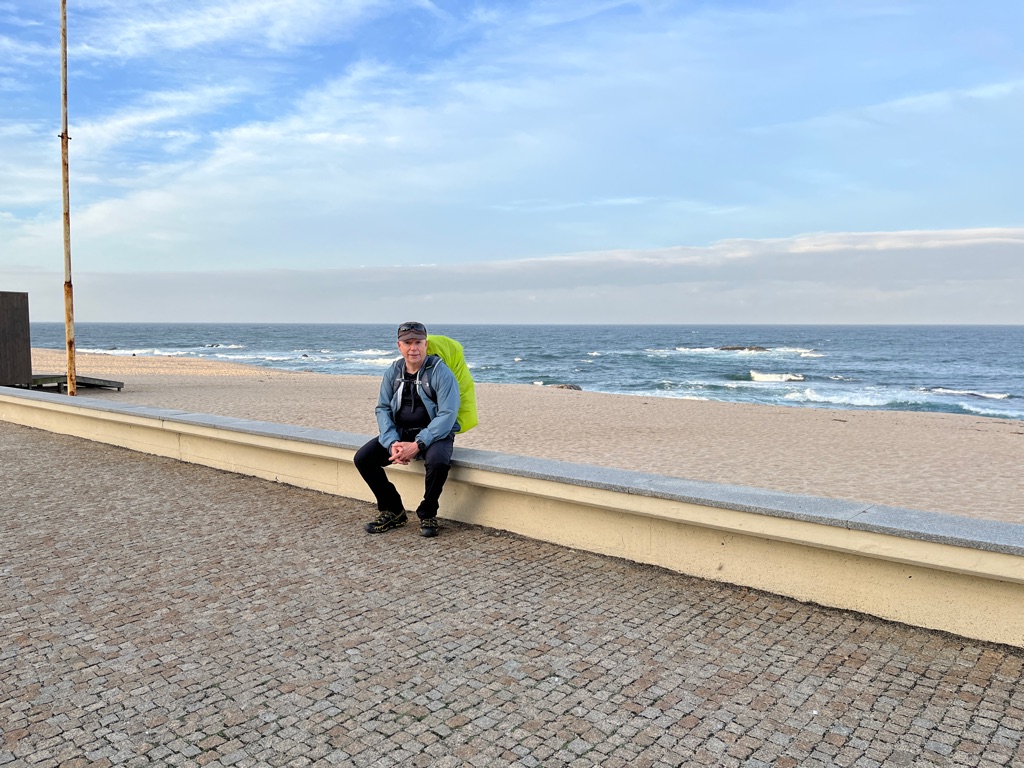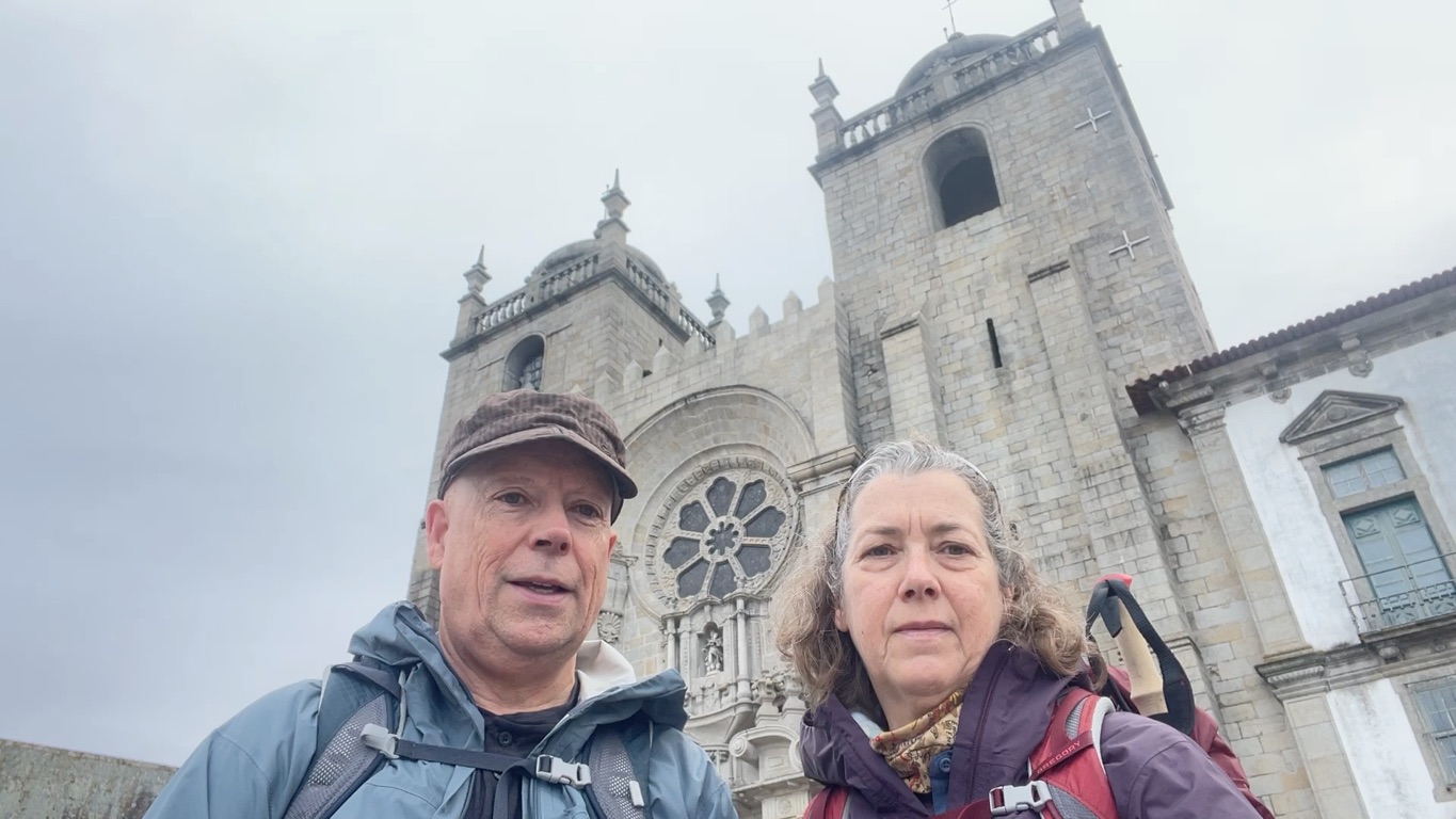 At about 10 am we entered the large city of Viana do Castelo. There was a very very long bridge as you enter the city. Normally this would have been a great vantage point to take photos, however today we were in a downpour at the time we were crossing, the wind kept wiping our ponchos and us. I was holding onto the bridge with one hand and my poncho with the other so I could see where I was going. Our first coffee stop was just across the bridge and we lingered here quite a while until the rain seemed to subside a bit.