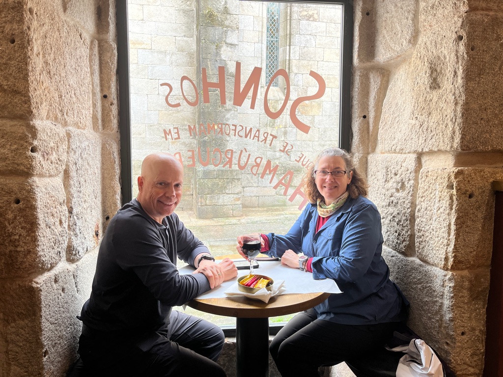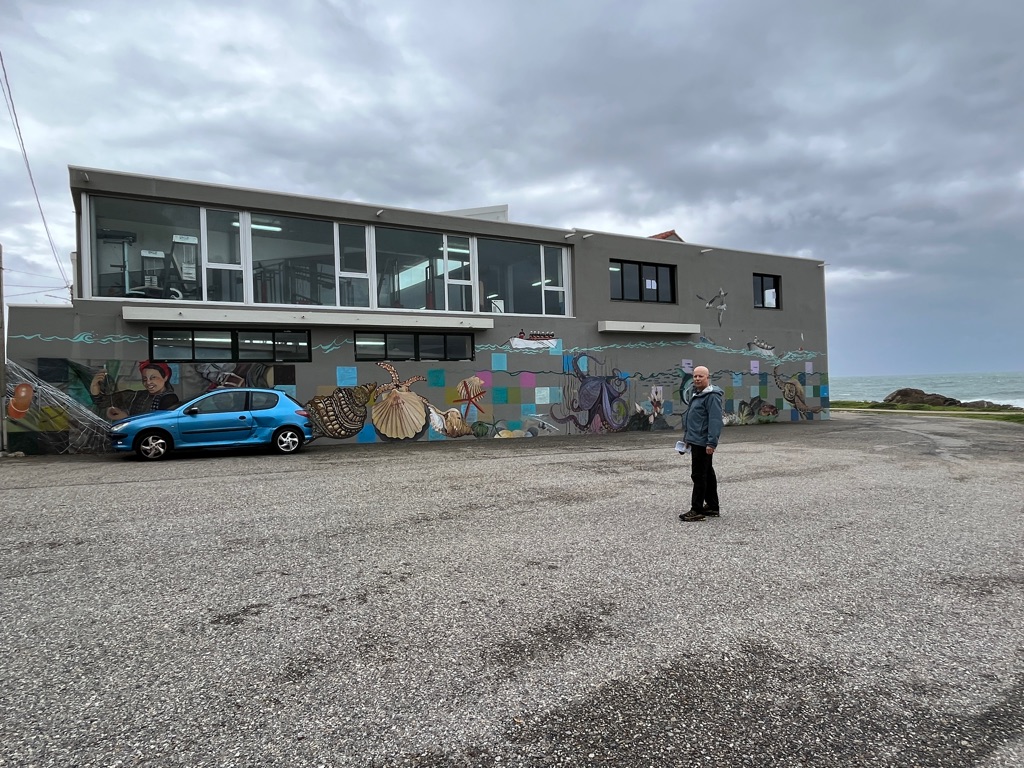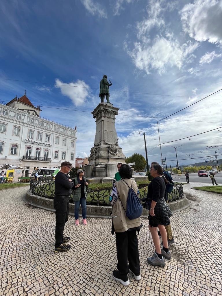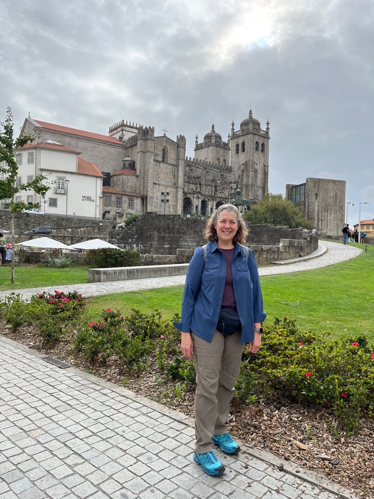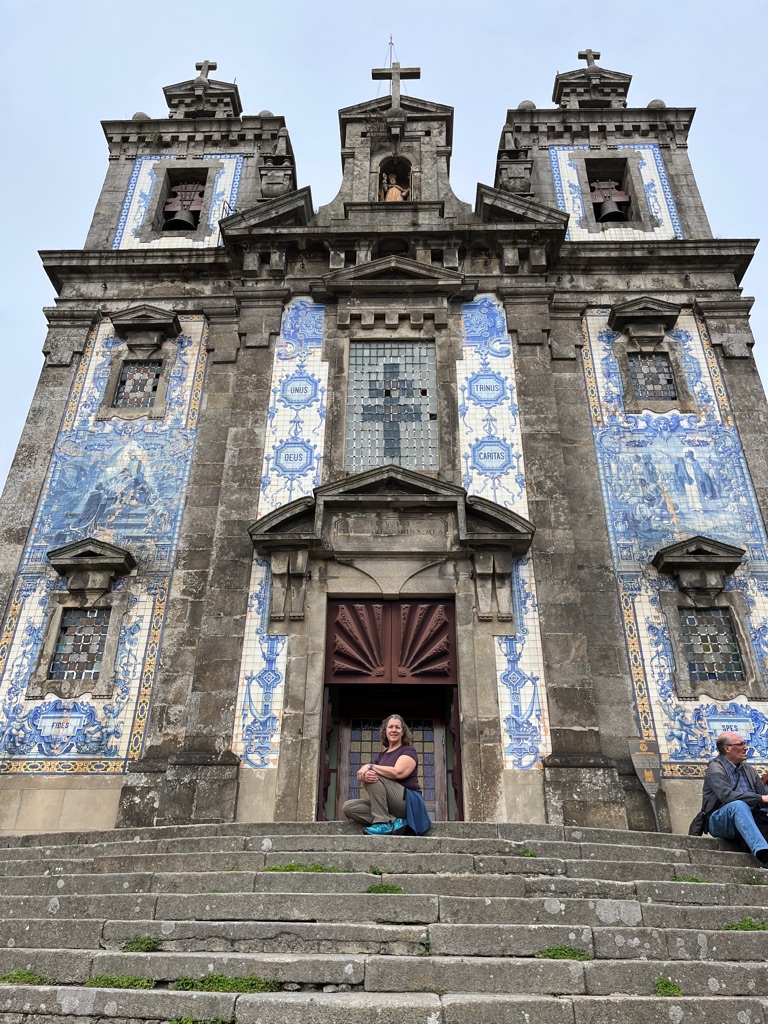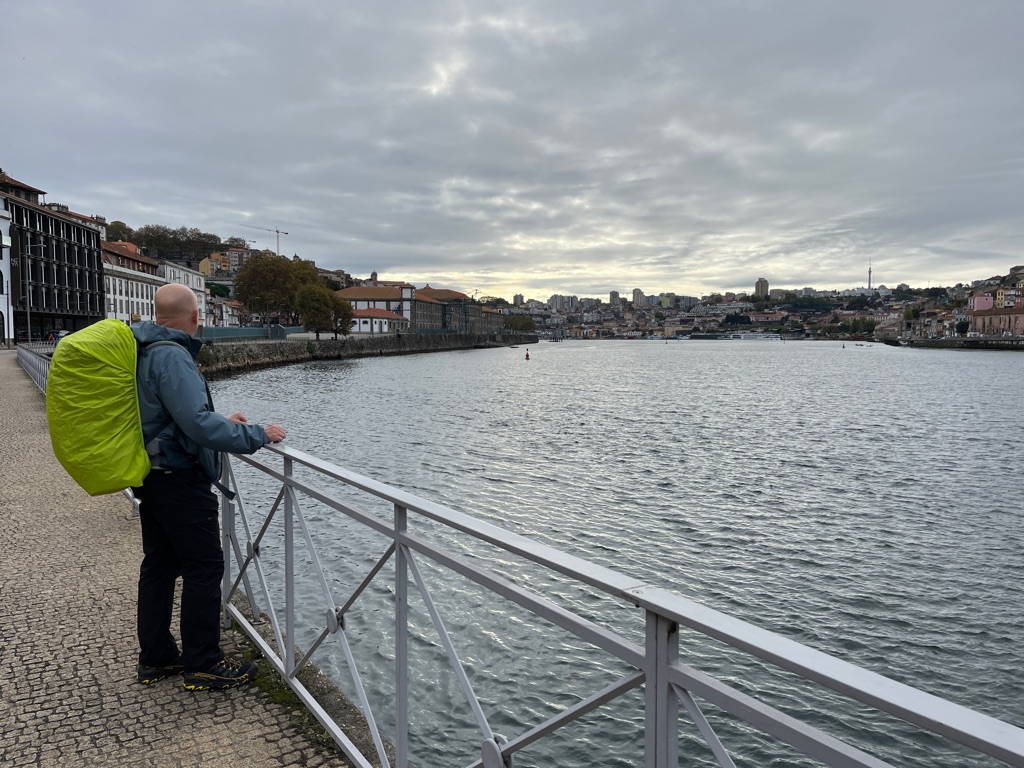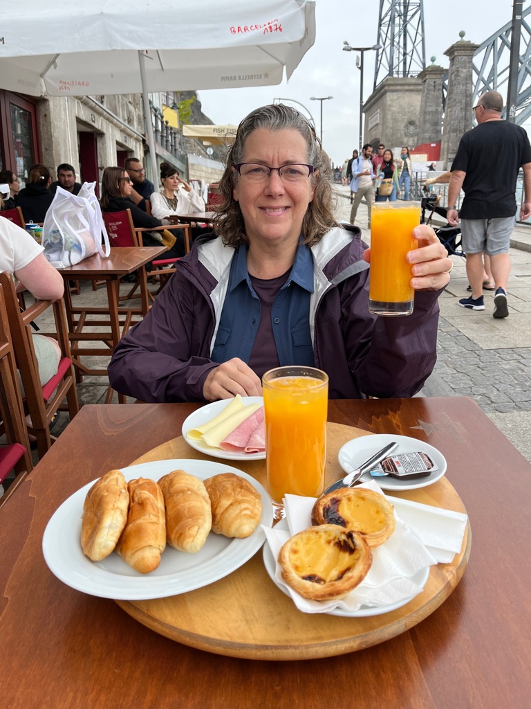 At about 10 am we entered the large city of Viana do Castelo. There was a very very long bridge as you enter the city. Normally this would have been a great vantage point to take photos, however today we were in a downpour at the time we were crossing, the wind kept wiping our ponchos and us. I was holding onto the bridge with one hand and my poncho with the other so I could see where I was going. Our first coffee stop was just across the bridge and we lingered here quite a while until the rain seemed to subside a bit.