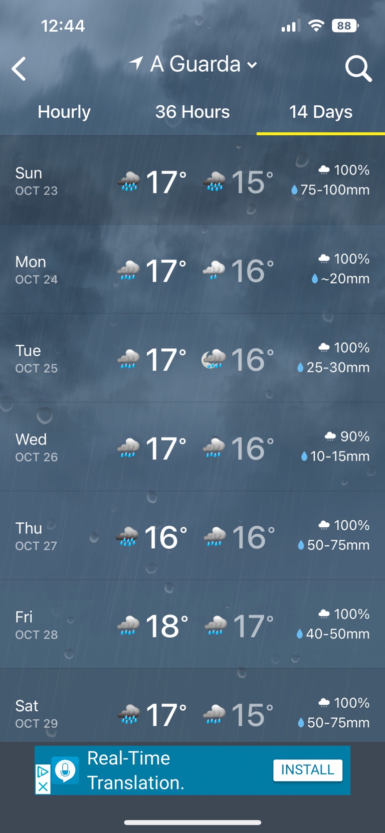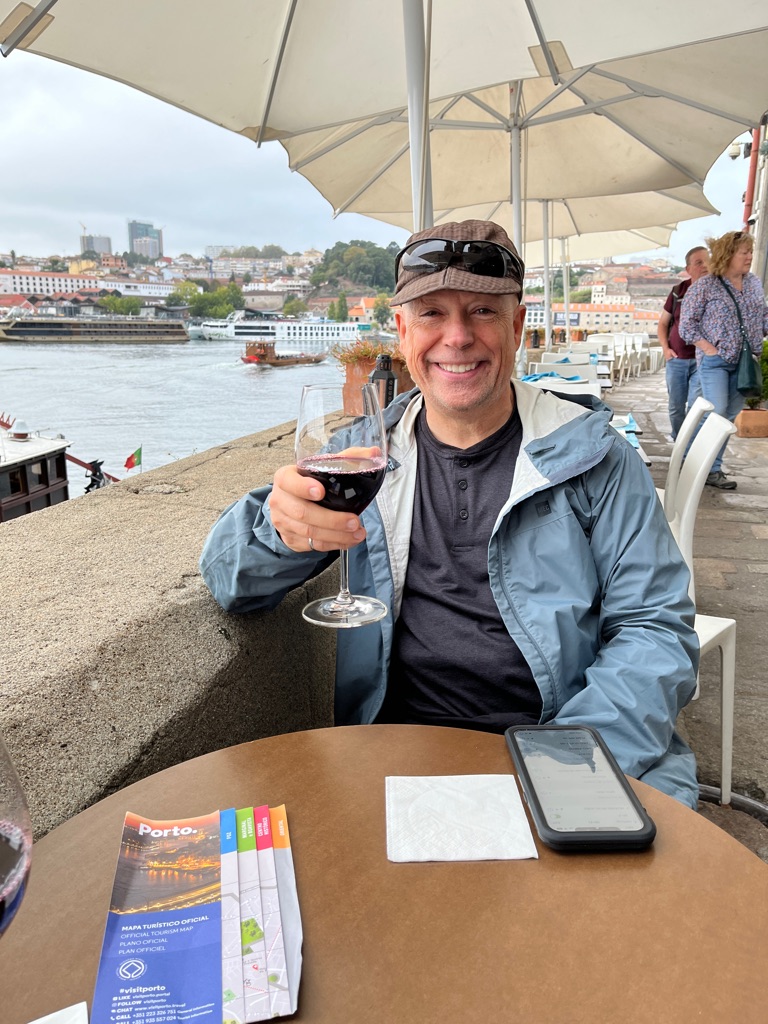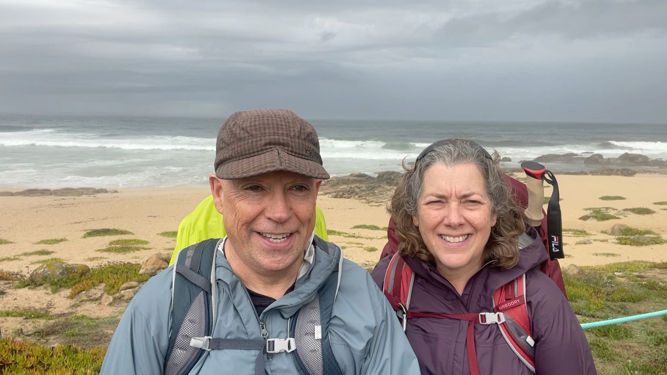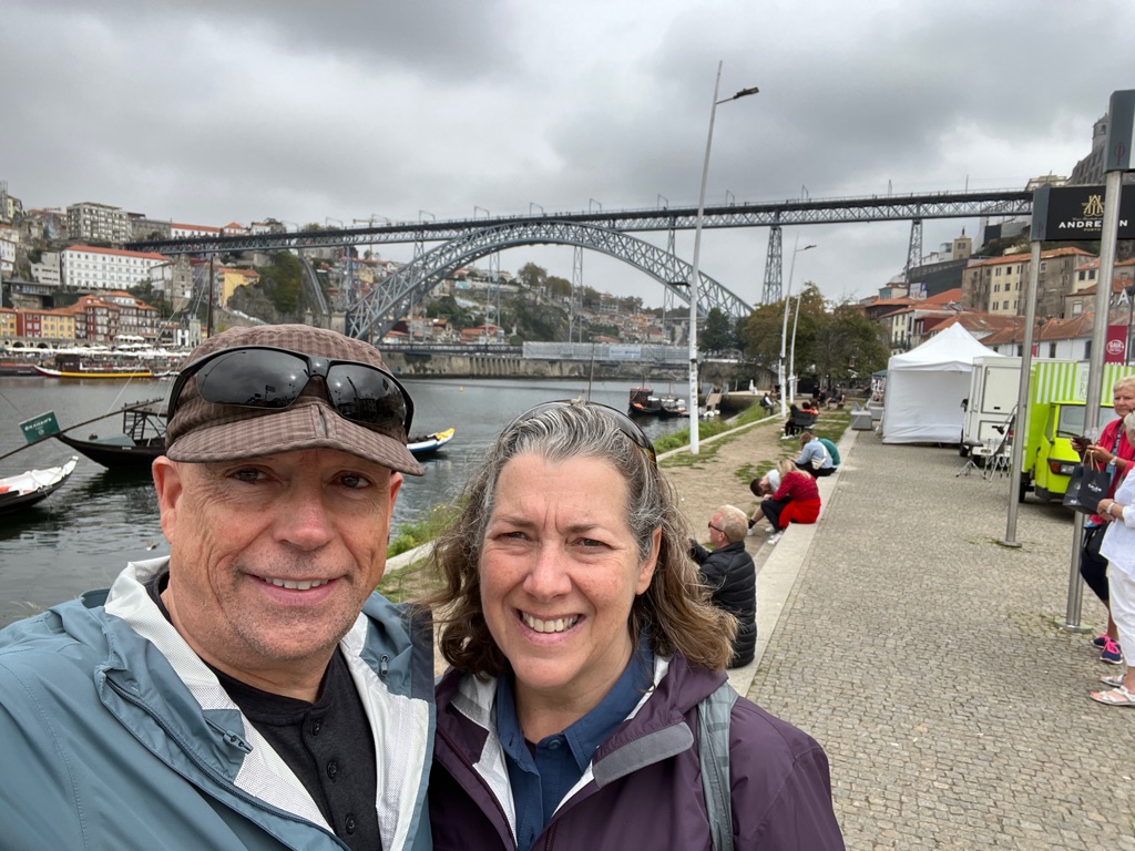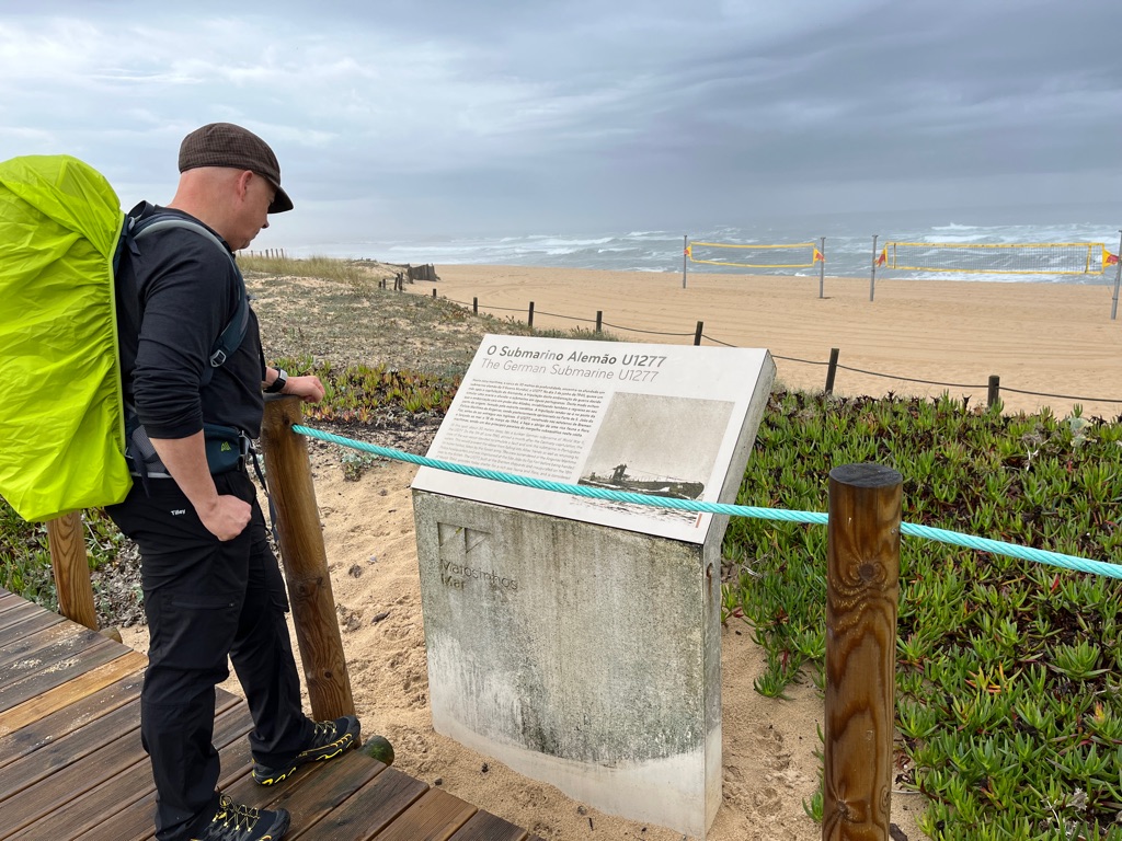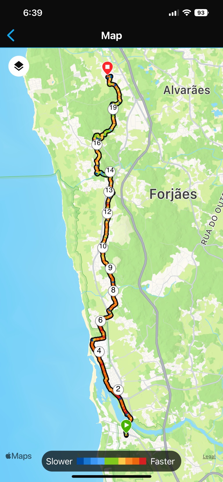 At about 10 am we entered the large city of Viana do Castelo. There was a very very long bridge as you enter the city. Normally this would have been a great vantage point to take photos, however today we were in a downpour at the time we were crossing, the wind kept wiping our ponchos and us. I was holding onto the bridge with one hand and my poncho with the other so I could see where I was going. Our first coffee stop was just across the bridge and we lingered here quite a while until the rain seemed to subside a bit.