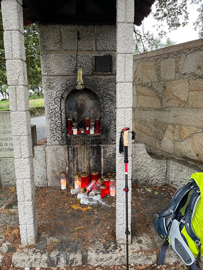 We have passed many of these family monuments along the path. Someone stopped to leave a couple of fresh candles as we were having a quick stop,