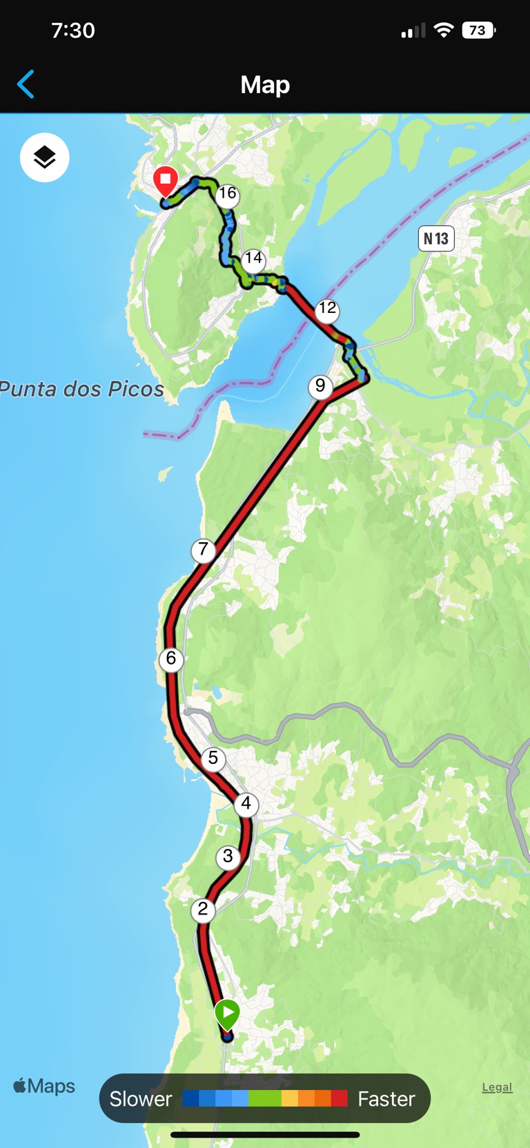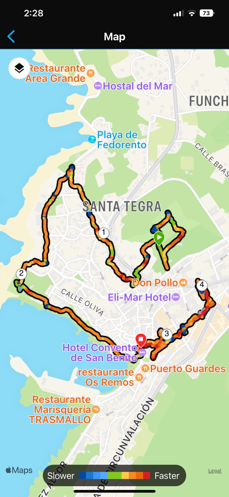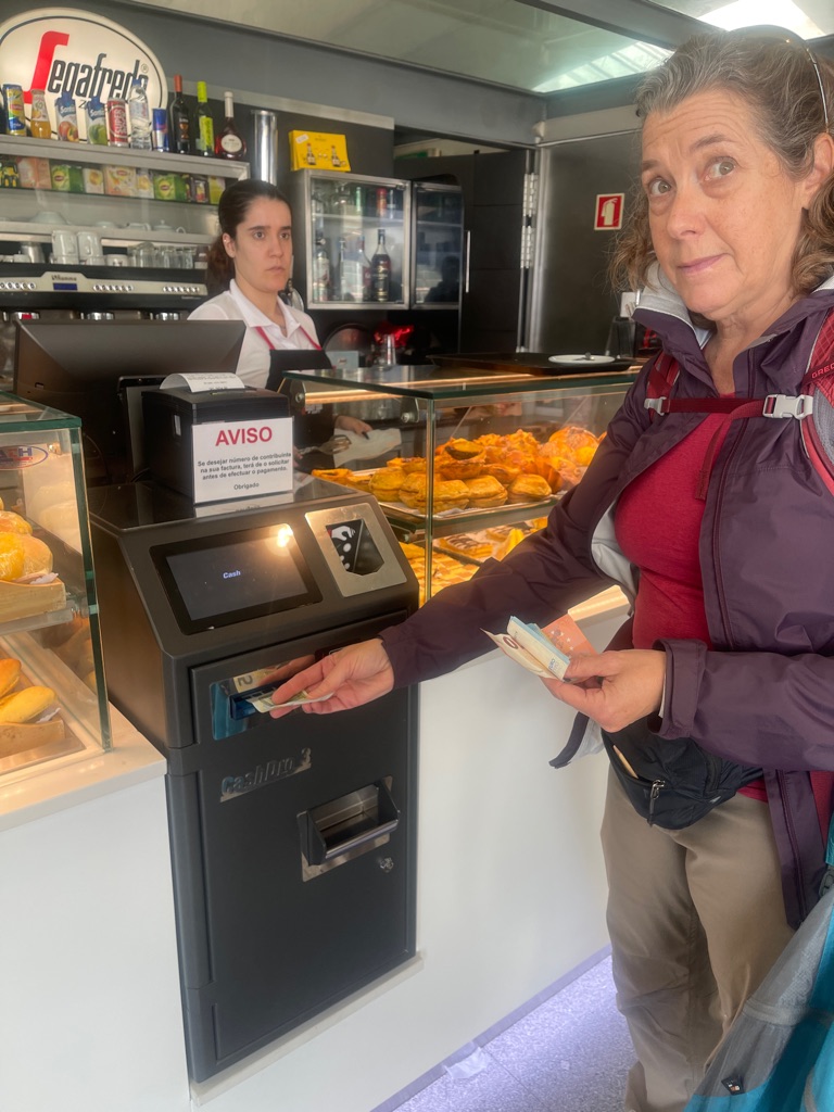At the town of Carreco, I left Ed at the cafe and ran down to the Farmica to get something for his heartburn. They are always great here when you are in need. We didn’t bring as much with us this time because everything is so readily available and often much cheaper than at home. They were able to give me something for him so off we went on the final leg (2.5km) of our journey. The total distance today should have been around 18km, but we ended at around 22km.
