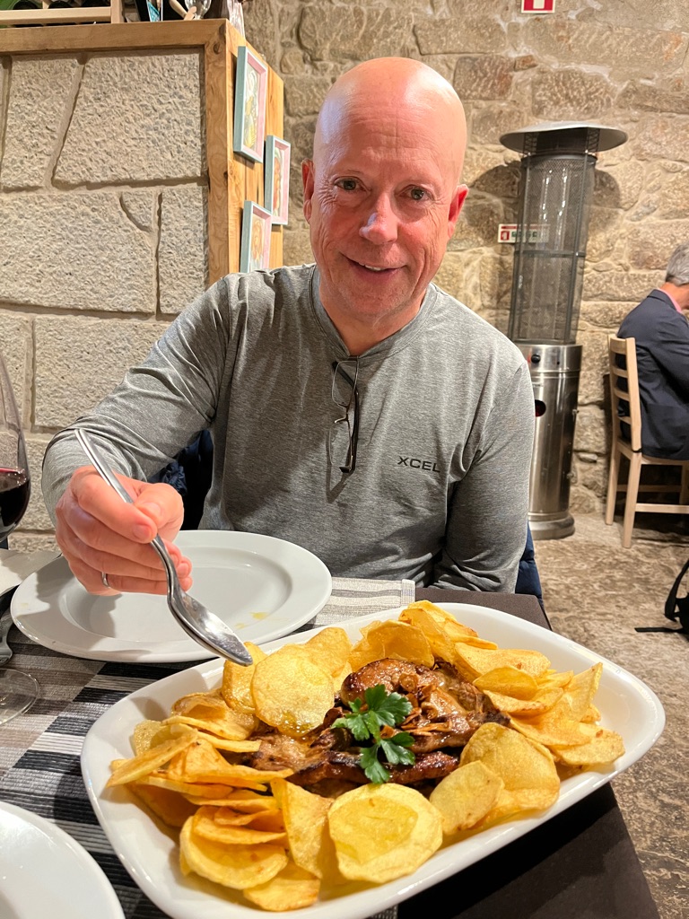 Our host for the evening Carlos, drove us to the supermarket so we could buy supplies for supper as many of the local restaurants are now closed. We enjoyed a delicious dinner of grilled cheese. Comfort food after a wet day. We were with Hans and Anna from Germany and Carlos joined us as well. It was a lovely evening sharing the company of others, this truly is what a Camino is all about…the people you meet along the Way!