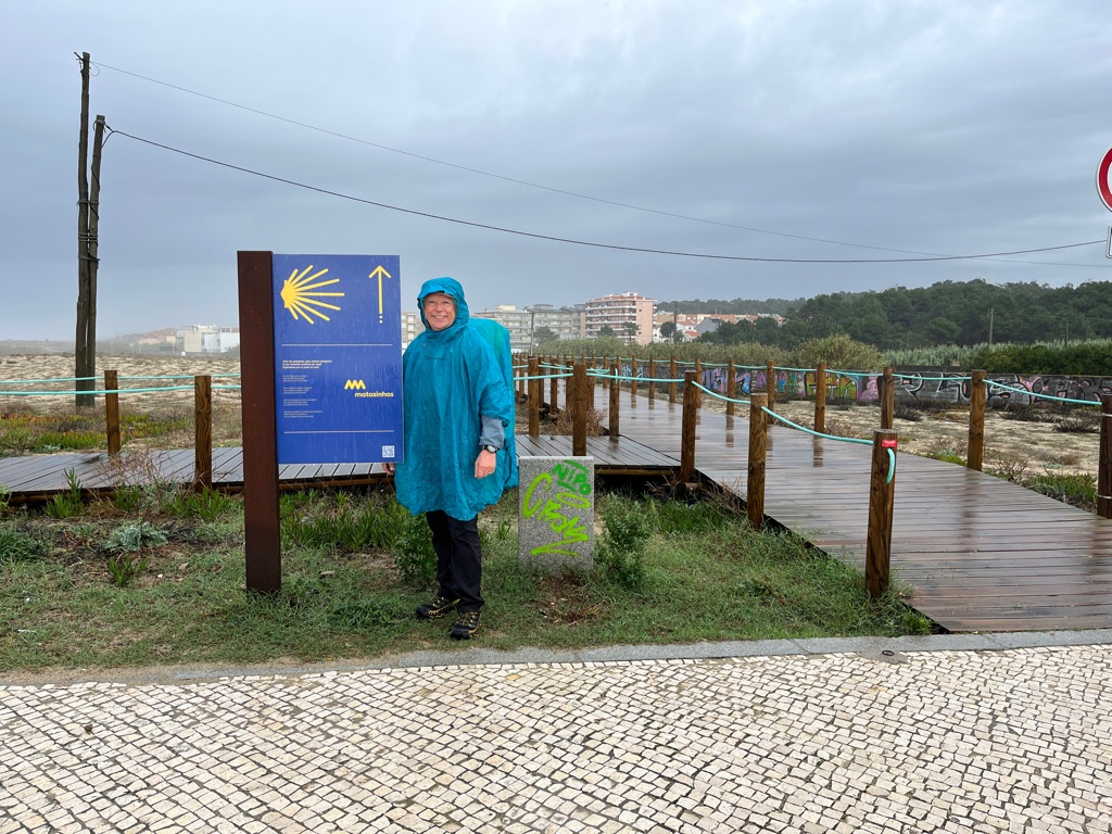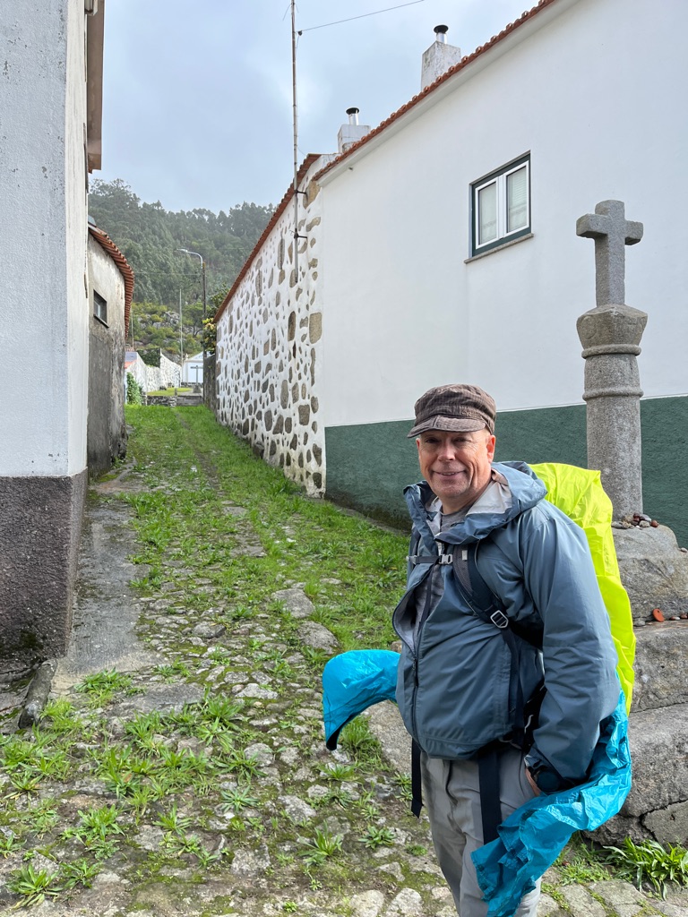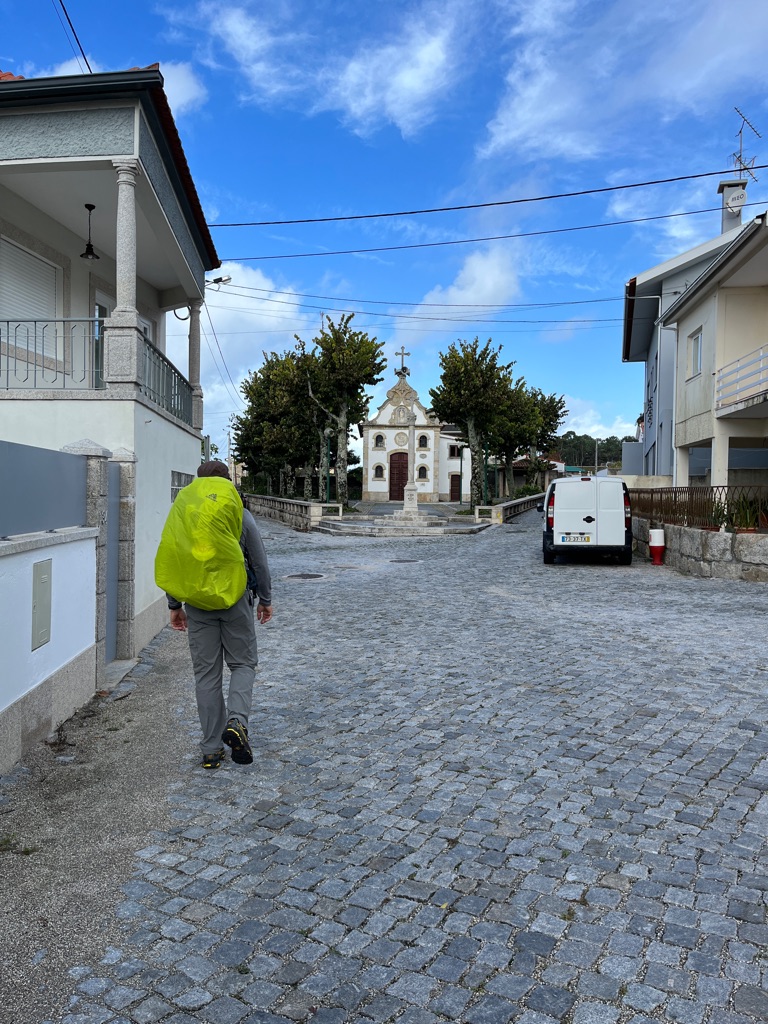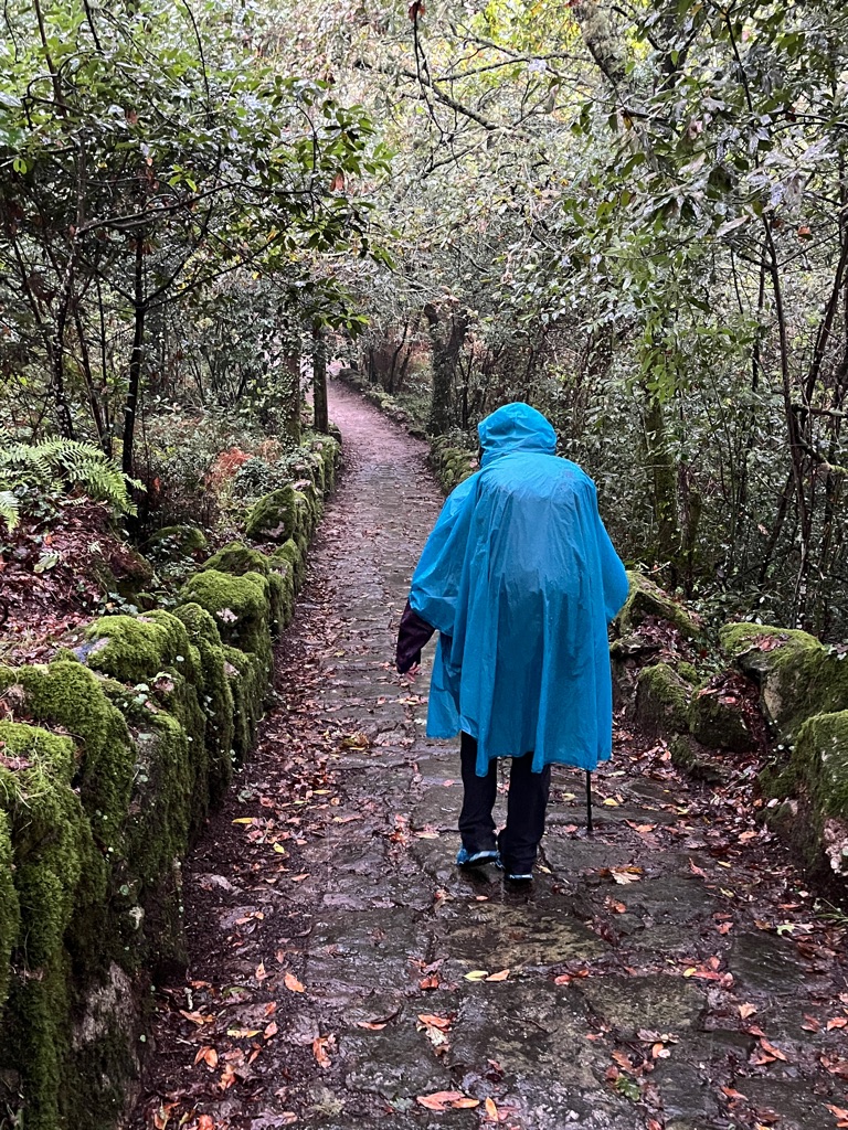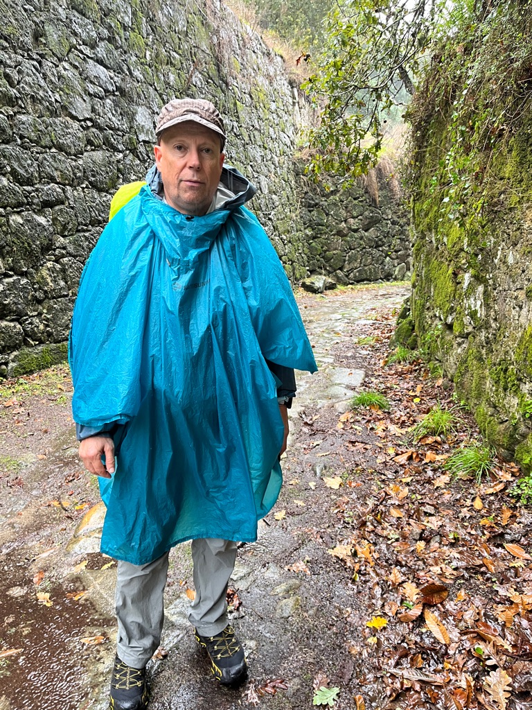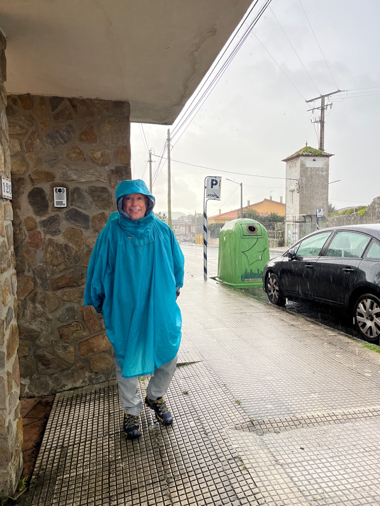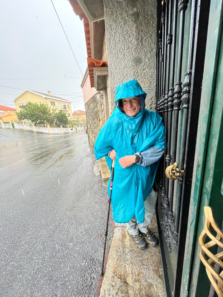 From Viana do Castelo the path was along the side of the hill. It was a farm road with very little traffic which was good, but this also meant that there were no cafe’s or break points along the way, until we reached the town of Carreco. We had rain downpours off and on. We were able to take our ponchos off a few times as they are quite hot, but we always kept them close by and ready to put on again.