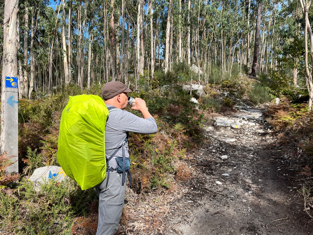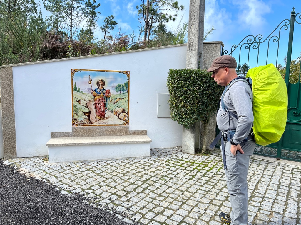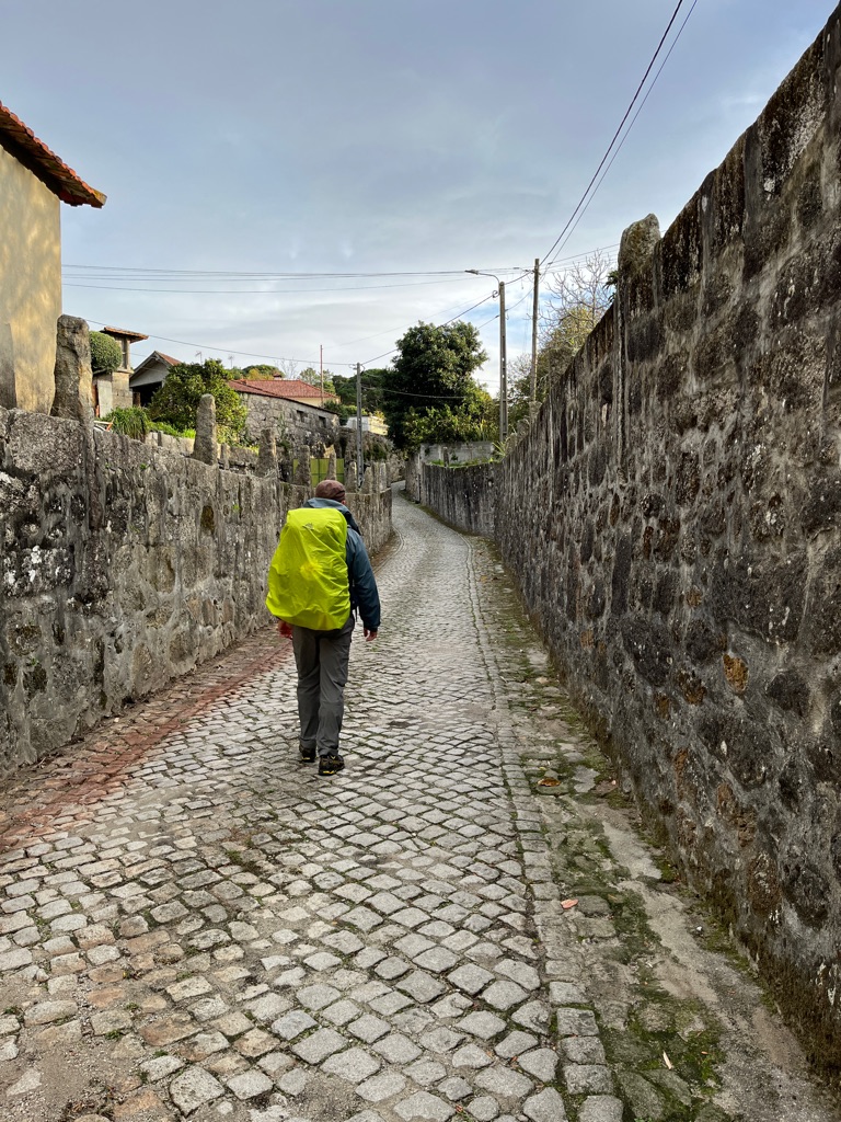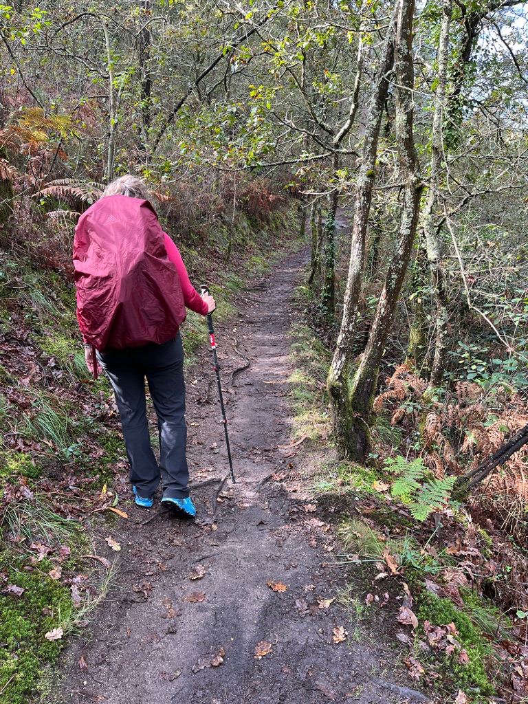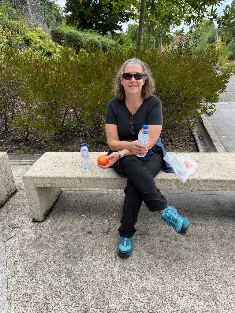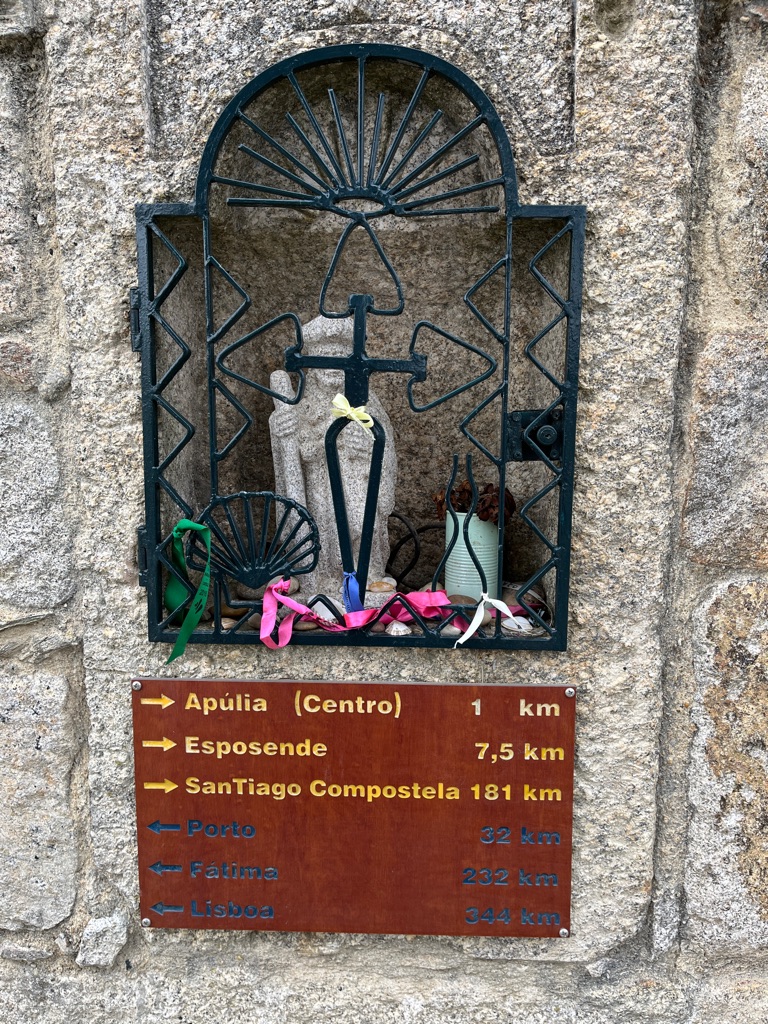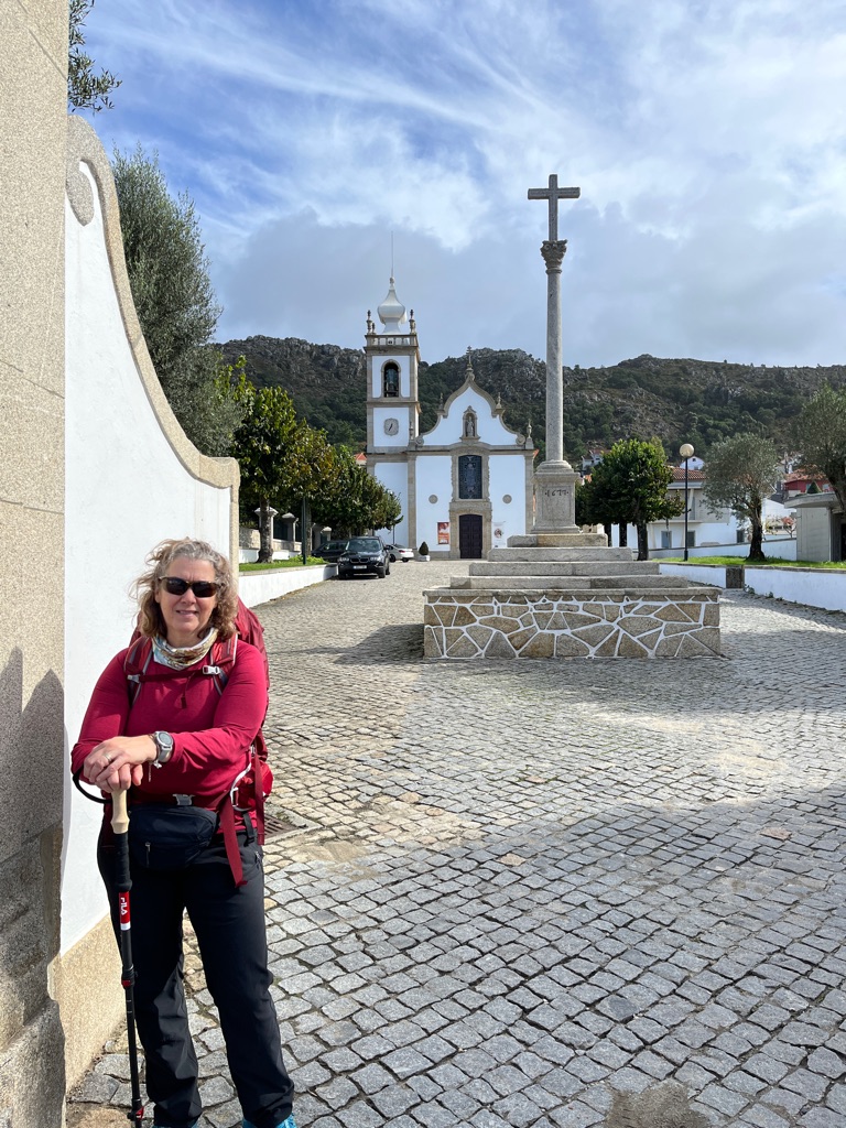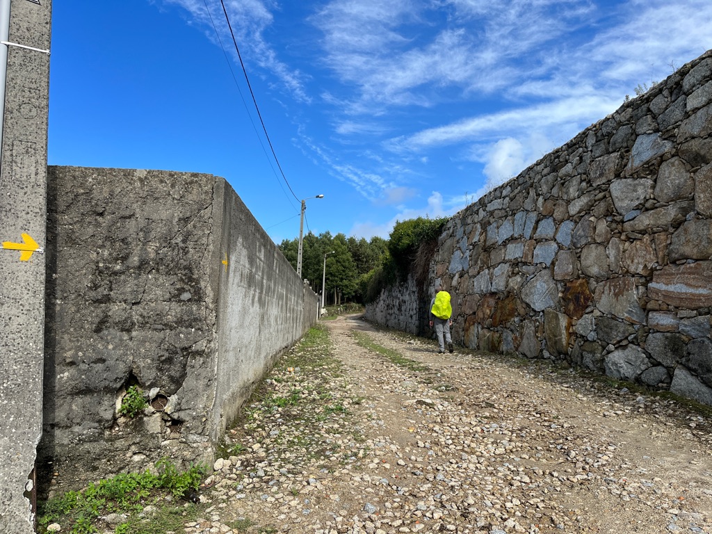 From Viana do Castelo the path was along the side of the hill. It was a farm road with very little traffic which was good, but this also meant that there were no cafe’s or break points along the way, until we reached the town of Carreco. We had rain downpours off and on. We were able to take our ponchos off a few times as they are quite hot, but we always kept them close by and ready to put on again.
