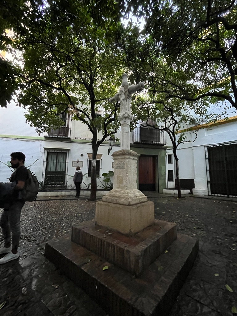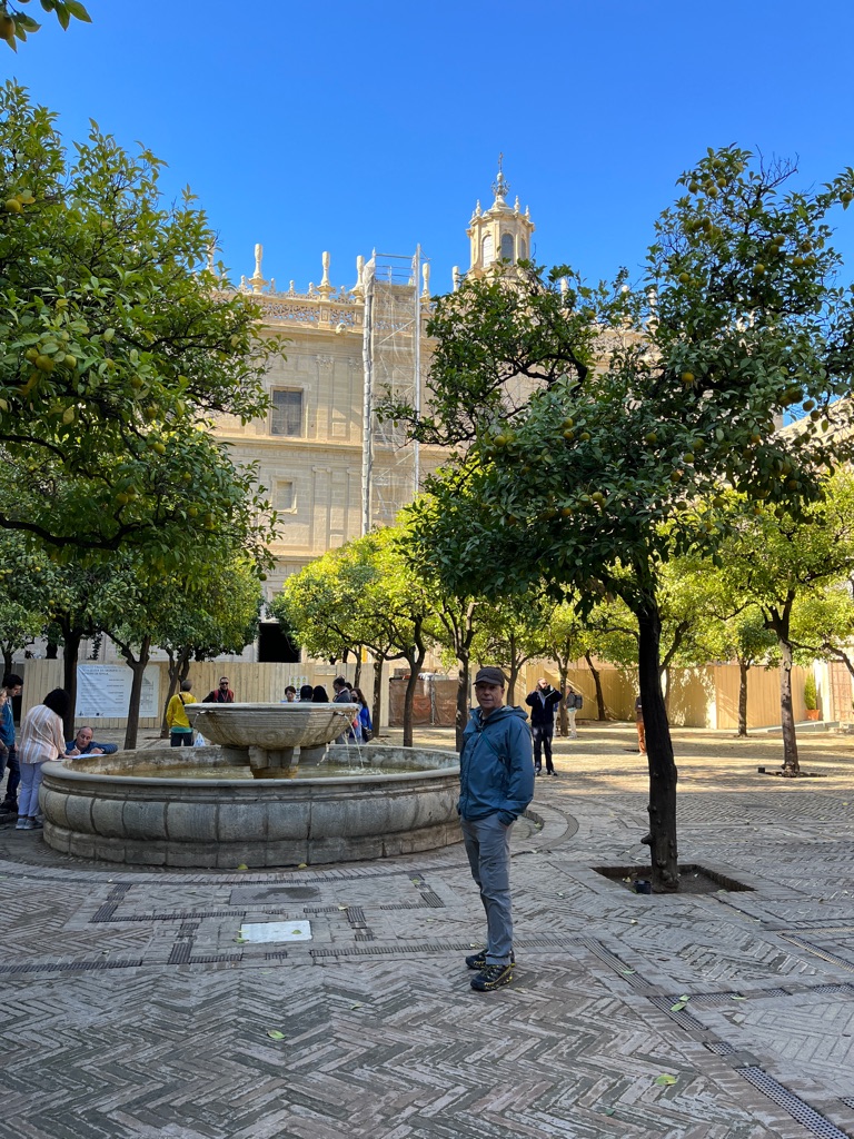 A fountain and orange trees in the square, this means a Mosque was once nearby.