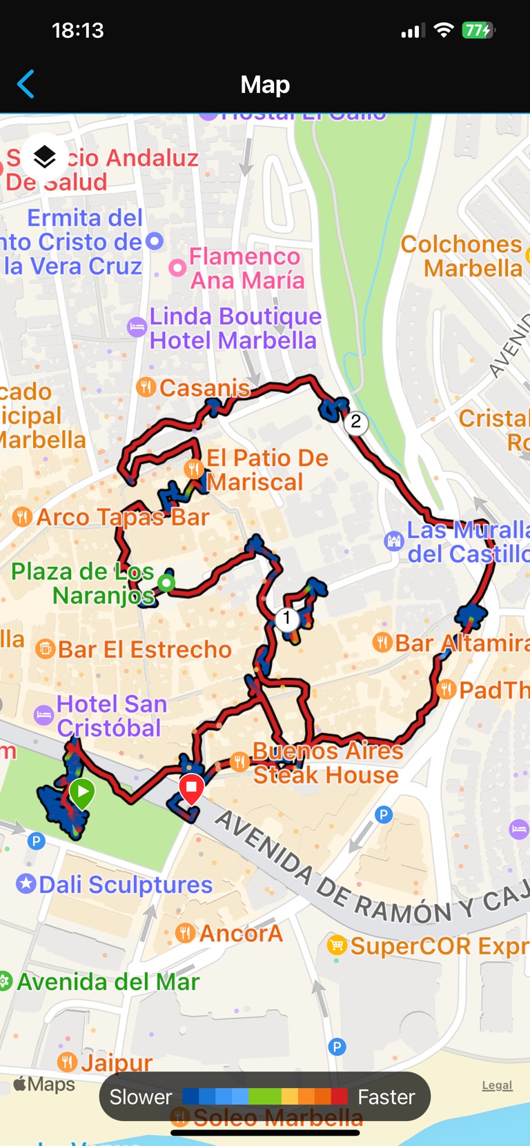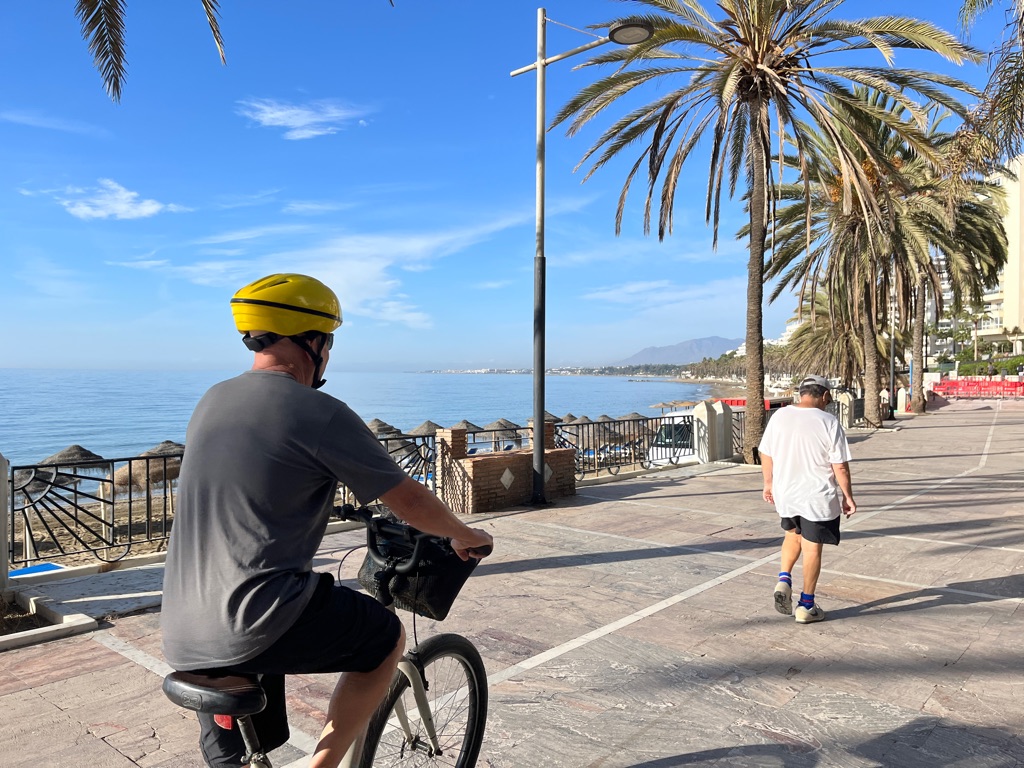 Today we are enjoying Marbella. We were able to connect with a free walking tour that started at noon. We wandered and explored in the morning, picking up supplies along the way at the grocery store. The promenade route along the sea is a beautiful multi use path. Very well maintained and clean.