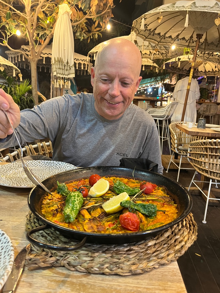 One of the authentic Spanish dishes in the area is Paella. It is a rice base dish normally made with seafood. This is a serving for 2 so we went with chicken and vegetables. Very tasty.
