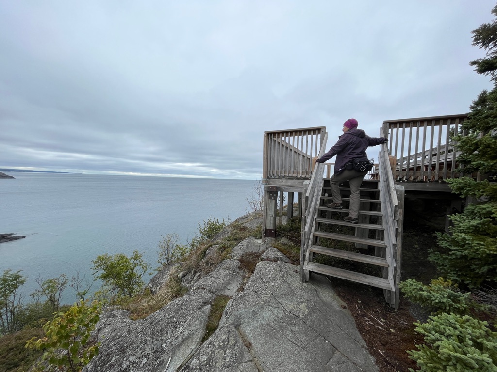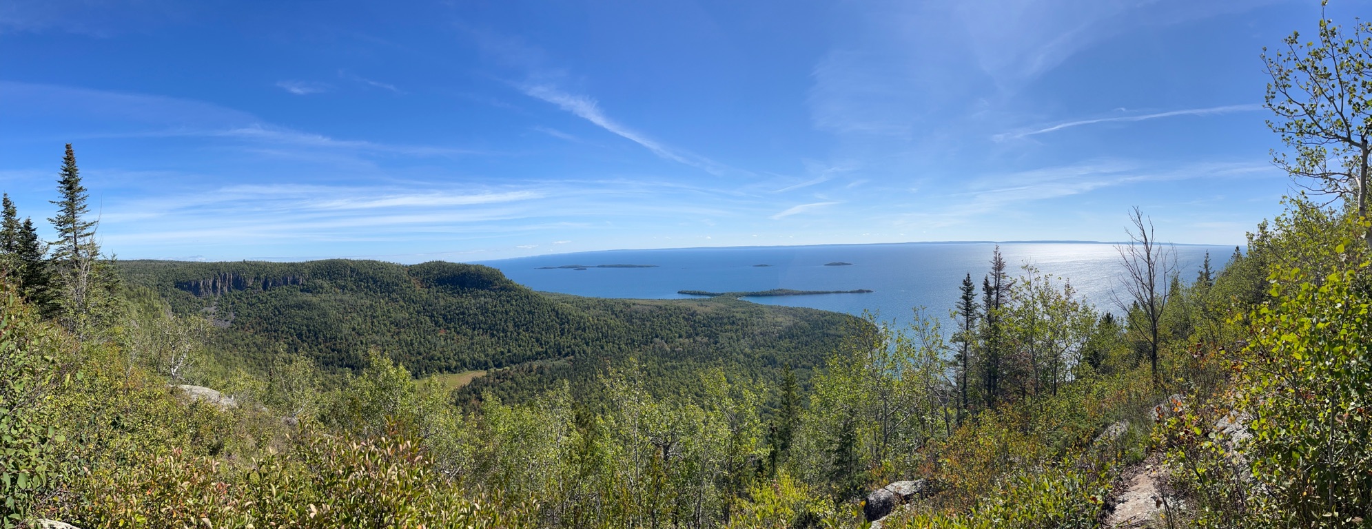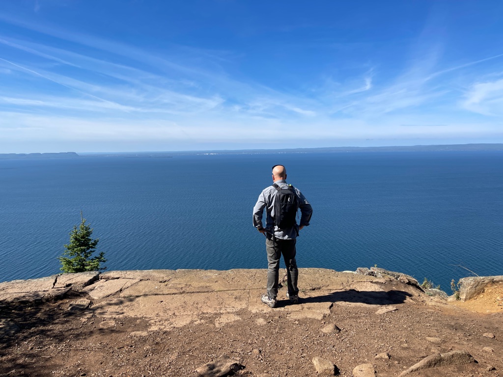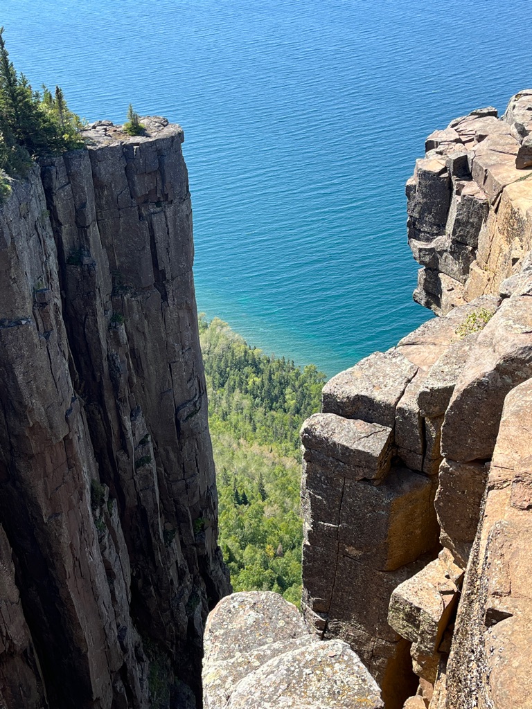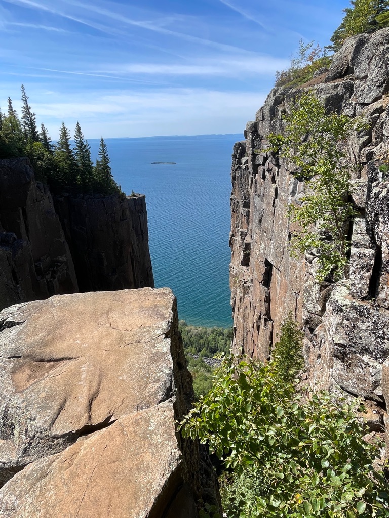 When we finally reached the end the view was definitely worth it. Magnificent views of the sheer cliffs of the Sleeping Giant! We were standing on his head.