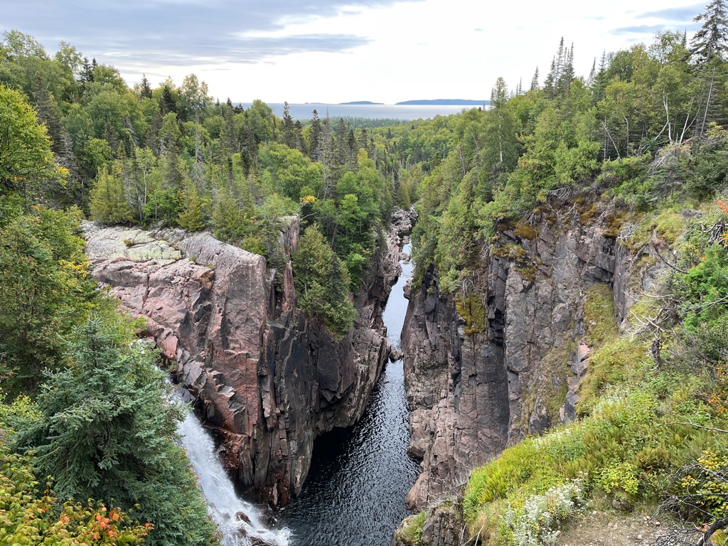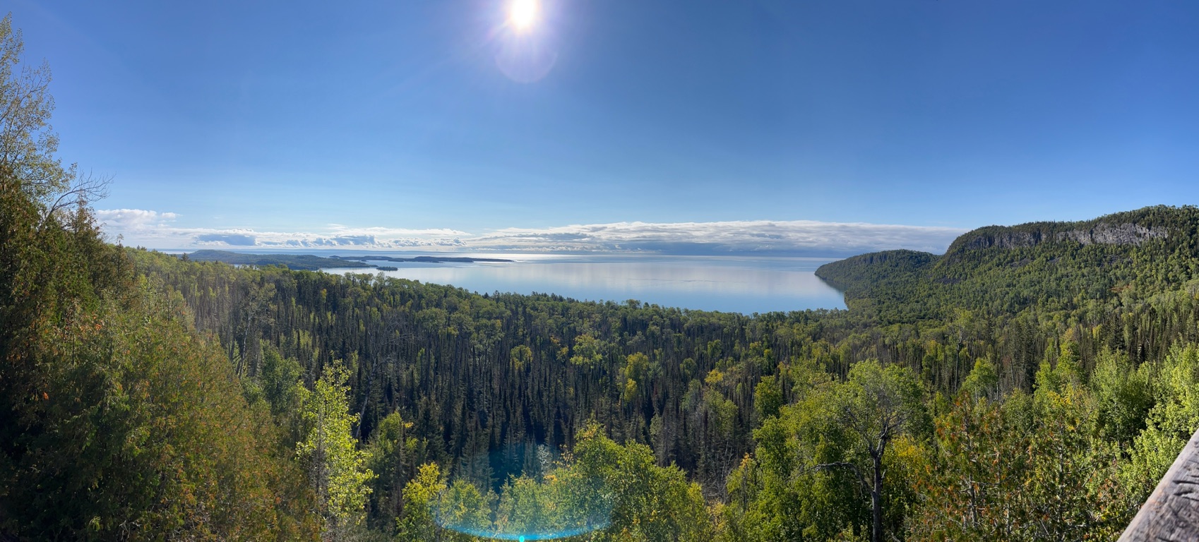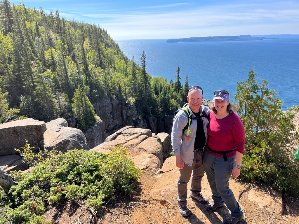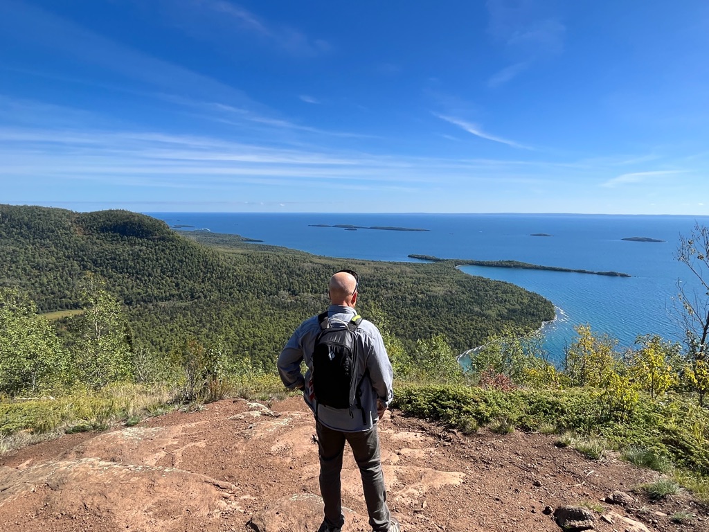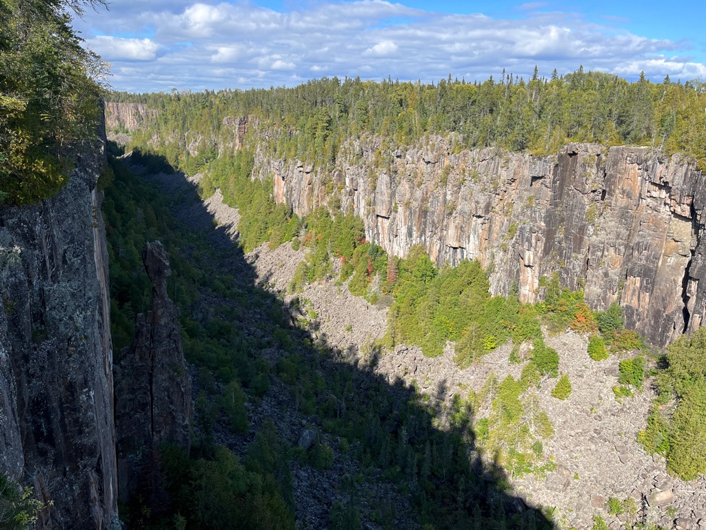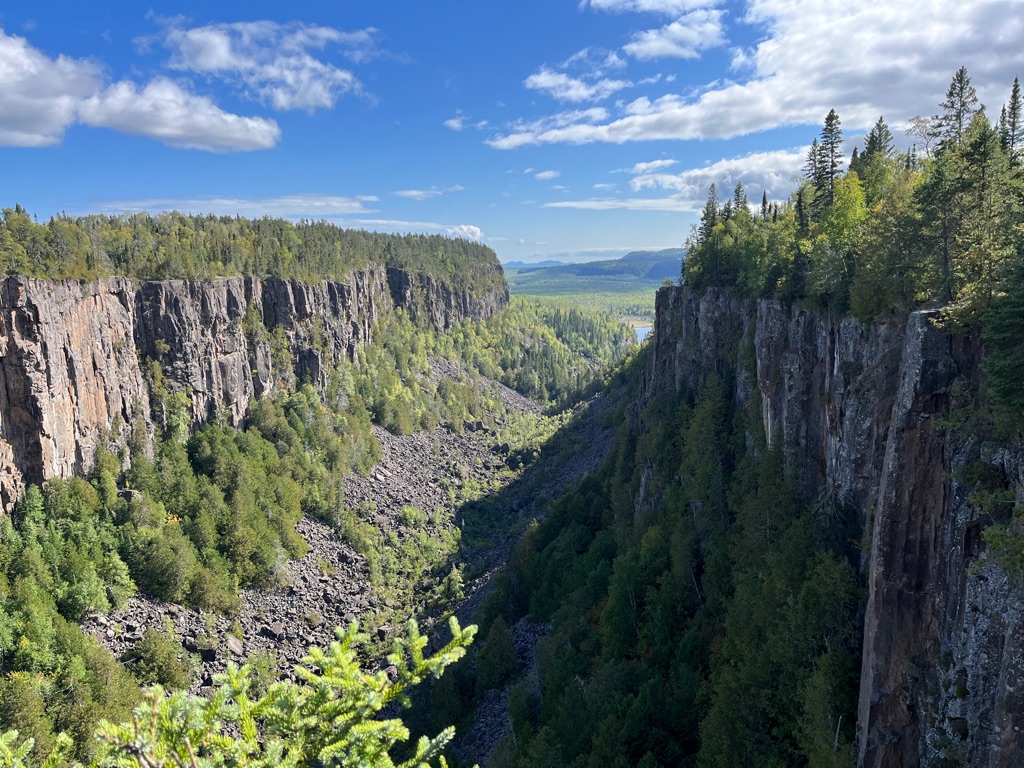 When we finally reached the end the view was definitely worth it. Magnificent views of the sheer cliffs of the Sleeping Giant! We were standing on his head.