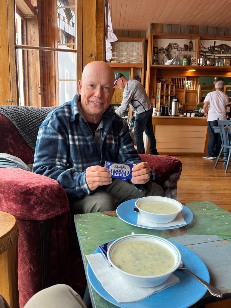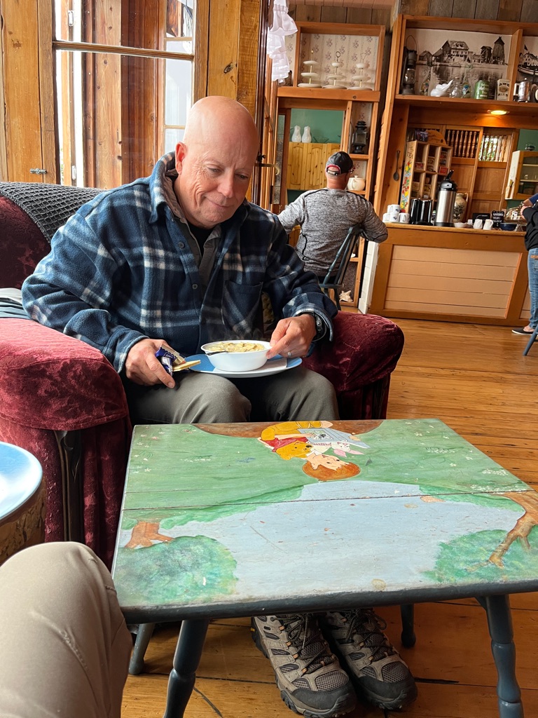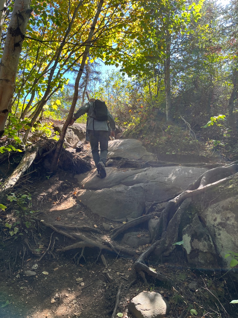 We knew that there was going to be climbing and we quickly came to roots, rocks and primitive stairs that had to be traversed. At one point I wasn’t sure we were going to make it, and Ed reminded me that it was on this date in 2019 that we started our Camino and climbed the Pyrenees. Those were the encouraging words I needed. We were very glad that the ground was dry and it was the perfect temperature.