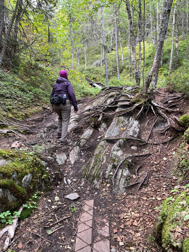 We first biked from our campsite to the South Kabeyan trail. There were a few rocky sections that we navigated cautiously but made it to our destination at the Talus Trail where we found a bike rack to secure our bikes. From here we would walk on foot the remainder of the trail (we expected 6.6 km).