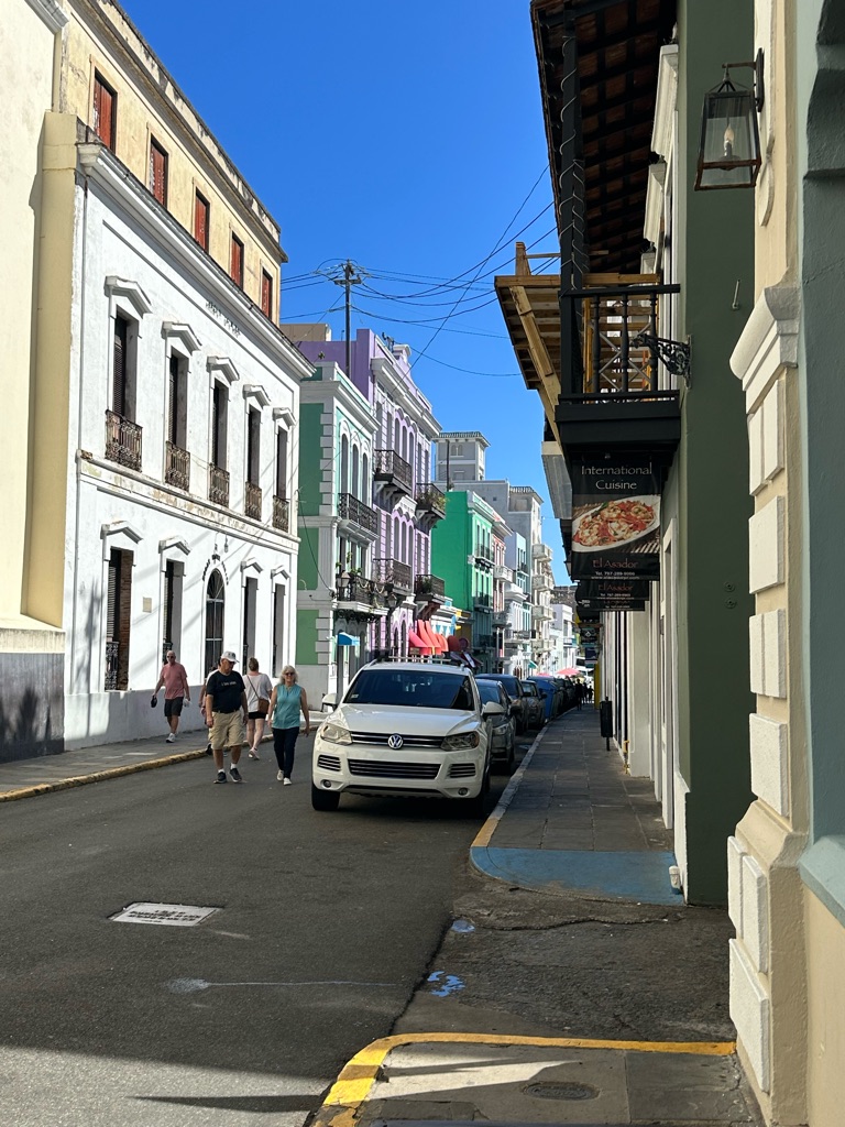 The whole of old town is blue cobblestone bricks, hundreds of years old , brought here from london. Did I mention that San Juan was founded in the late 1400’s by Christopher Columbus and shortly after by Ponce de Leon! \240The geographical location of PR made it the 1st stop on Atlantic crossings to get supplies and labor. \240I really need to investigate the indigenous people who lived here at the beginning, all from surrounding Caribbean countries.