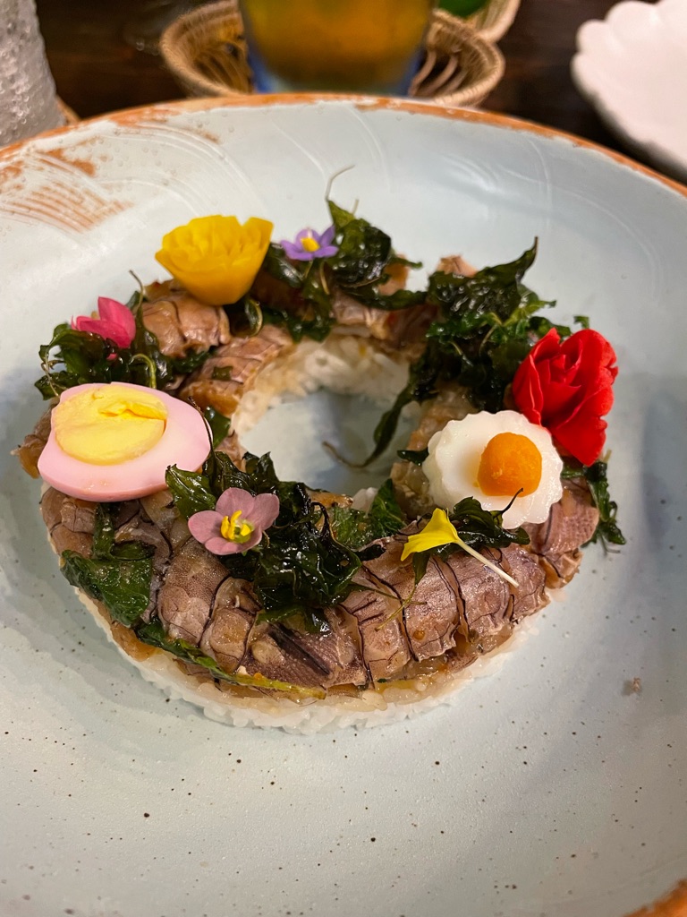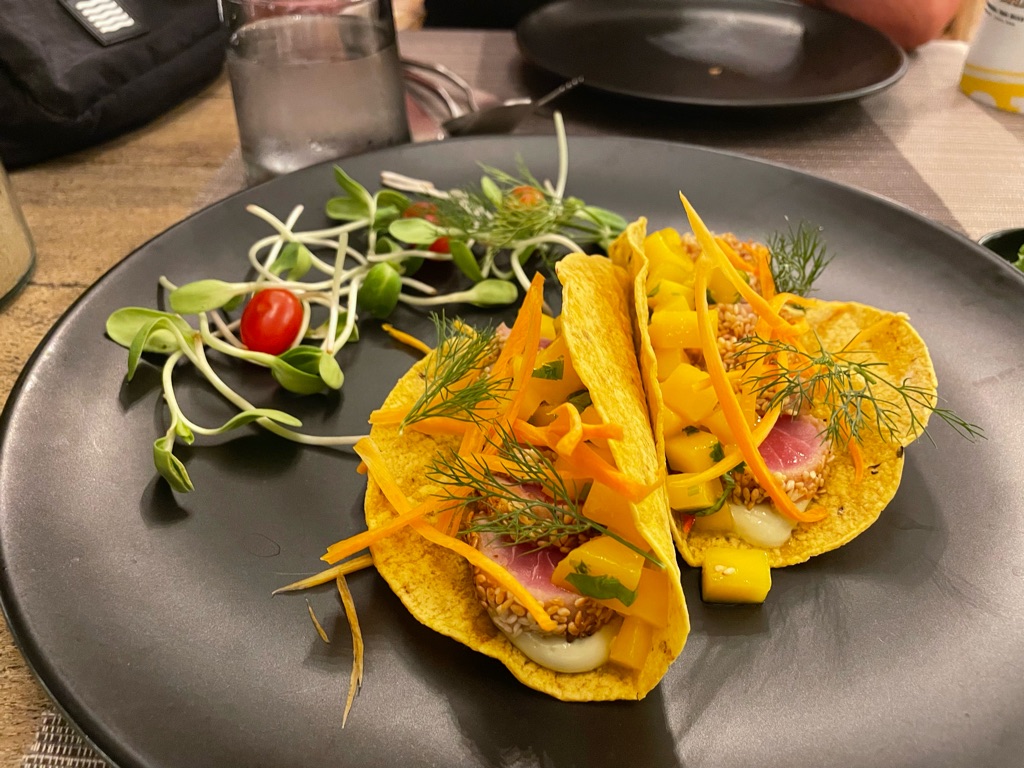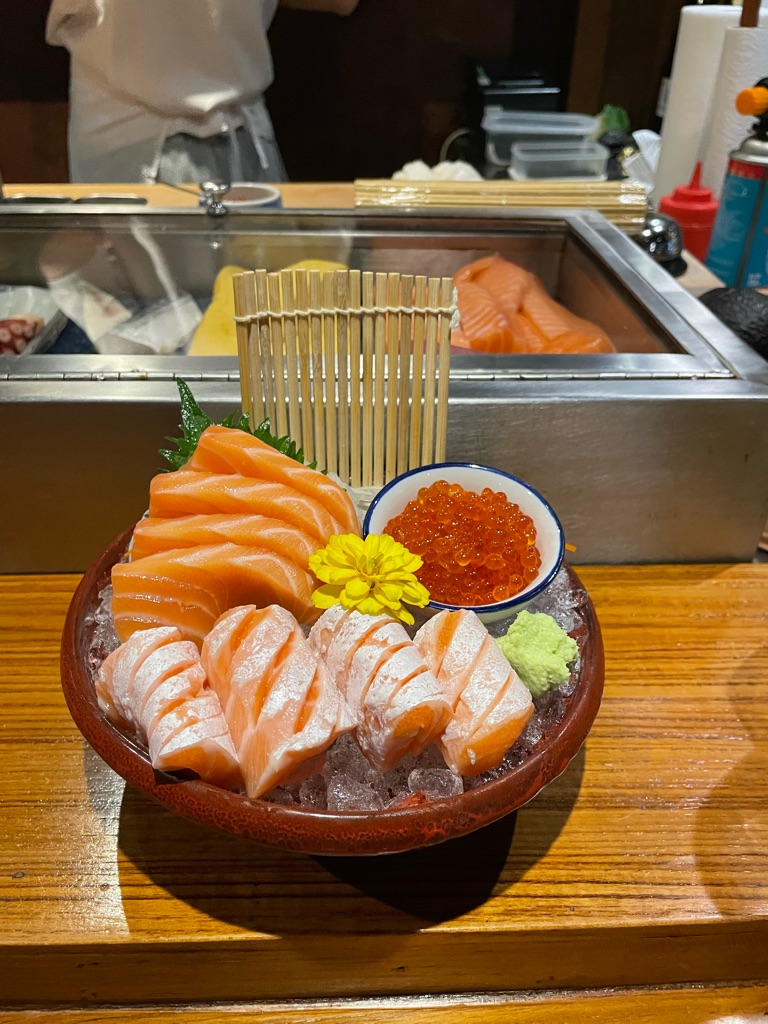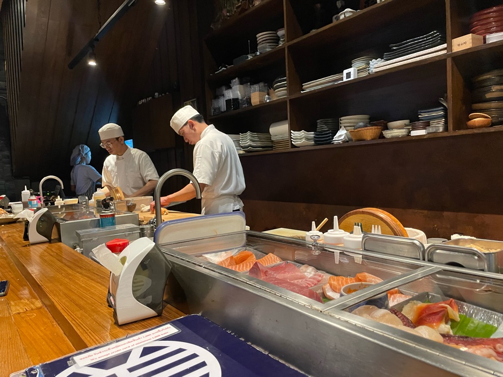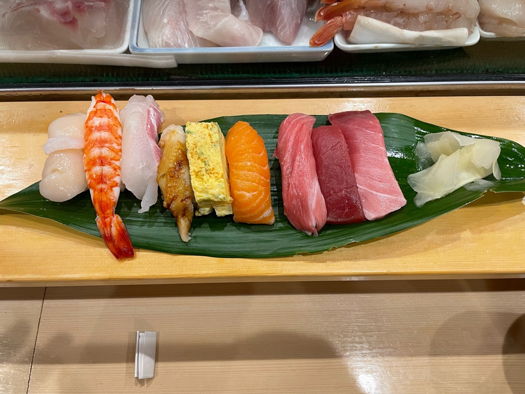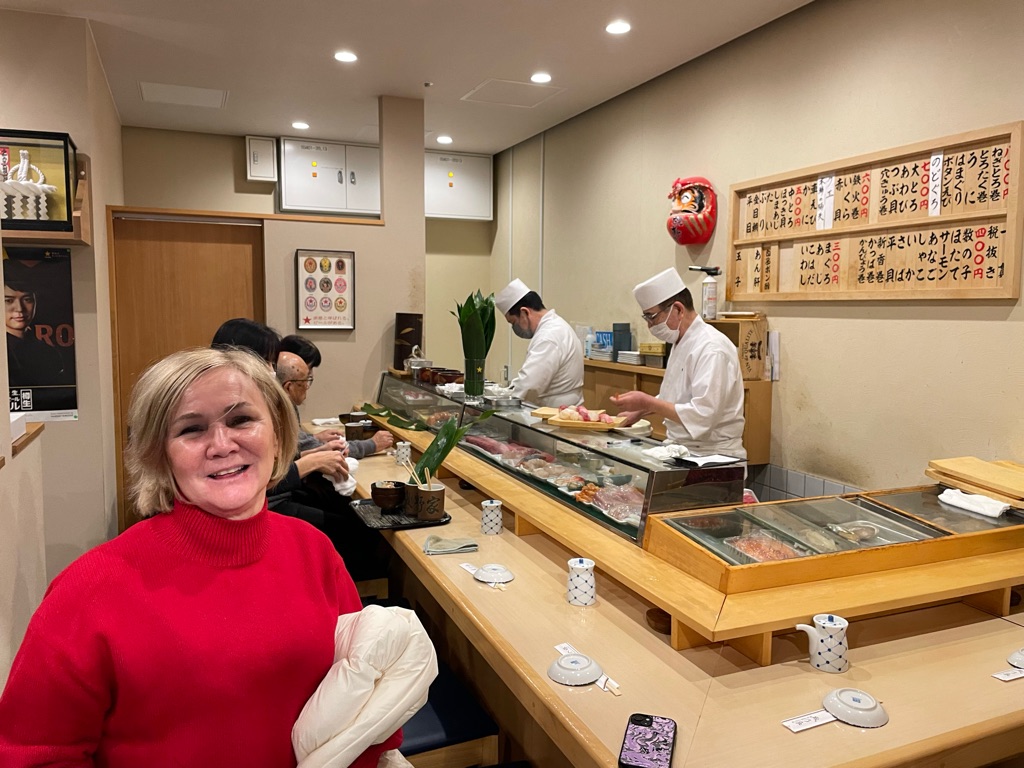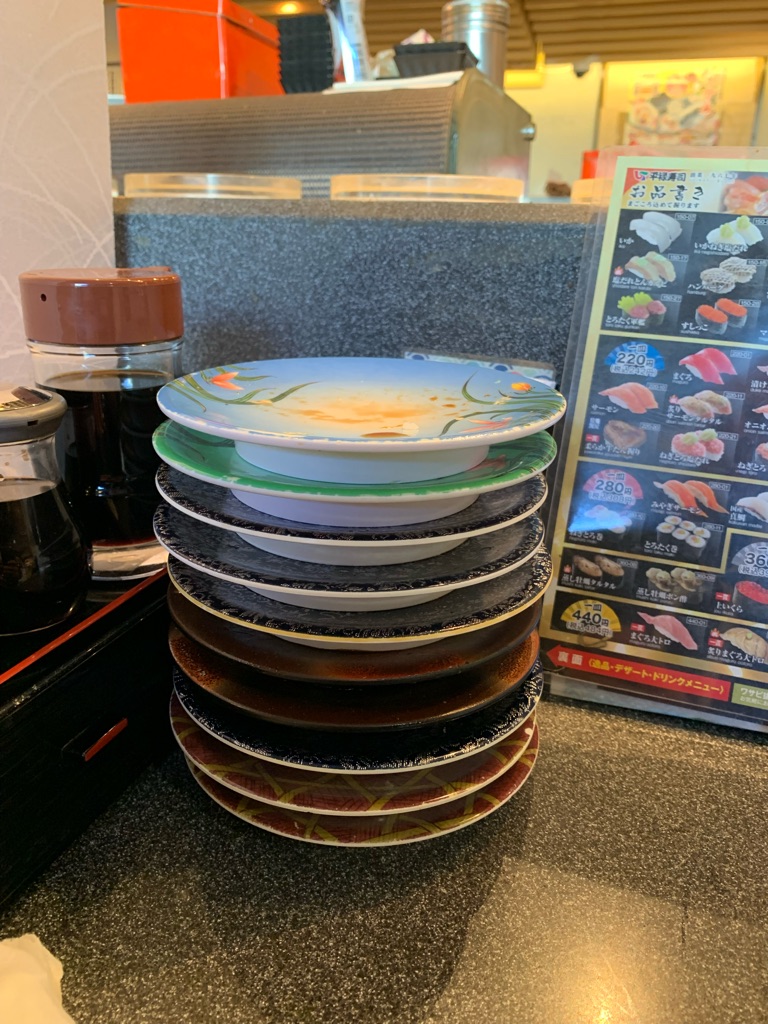 Late risers this morning = Sushi for brunch, all good, 10 Plates for Me, 8 for Marion, I win.