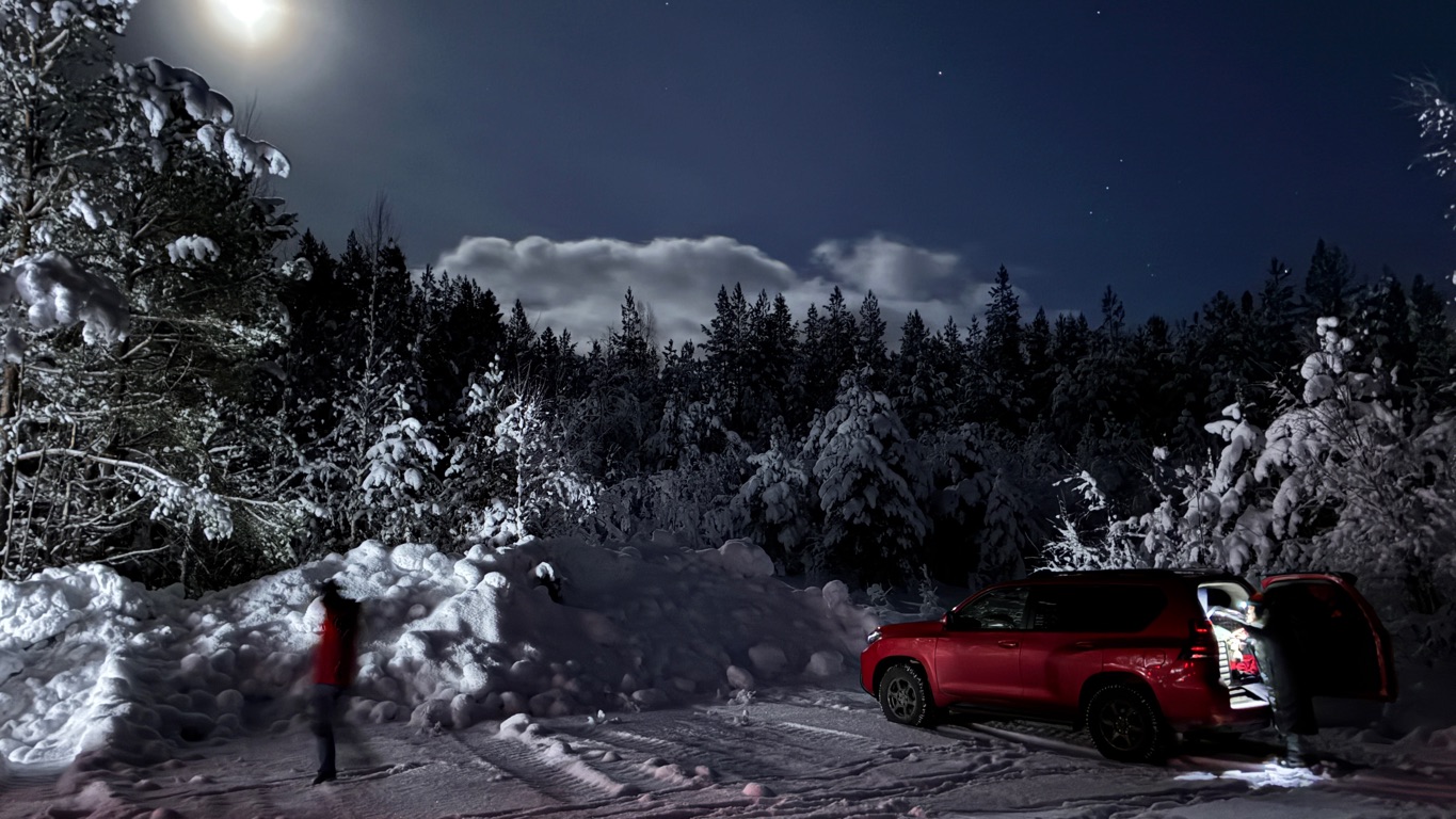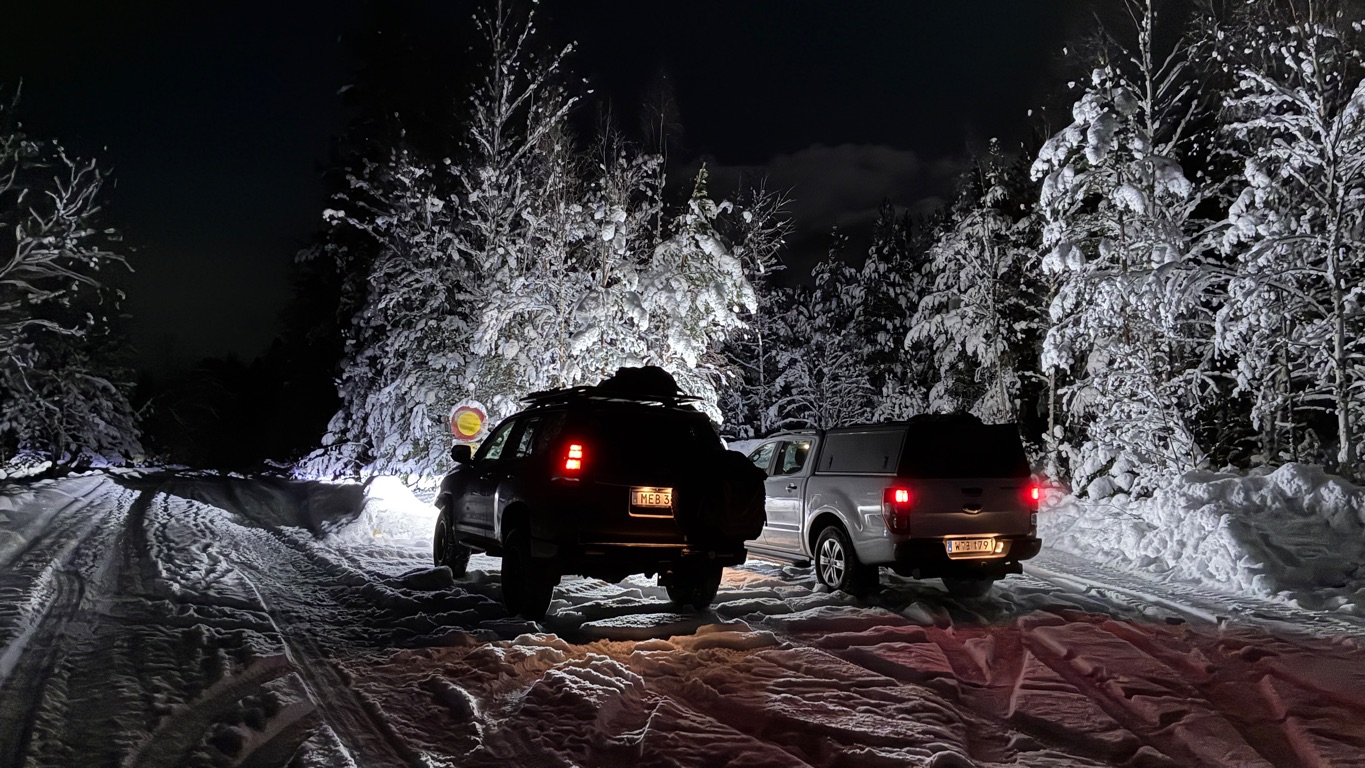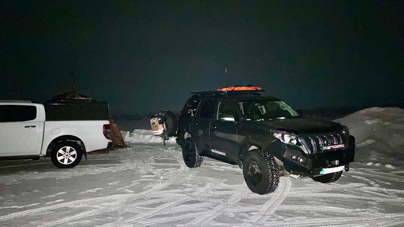 Natt ute på finska tundran. Hittade en plogad yta, perfekt för bil o tält 👌🏻