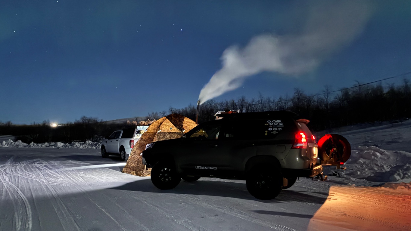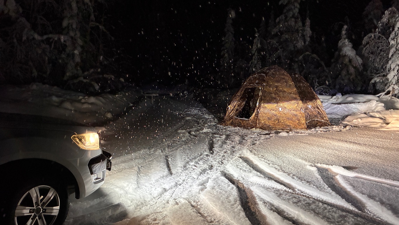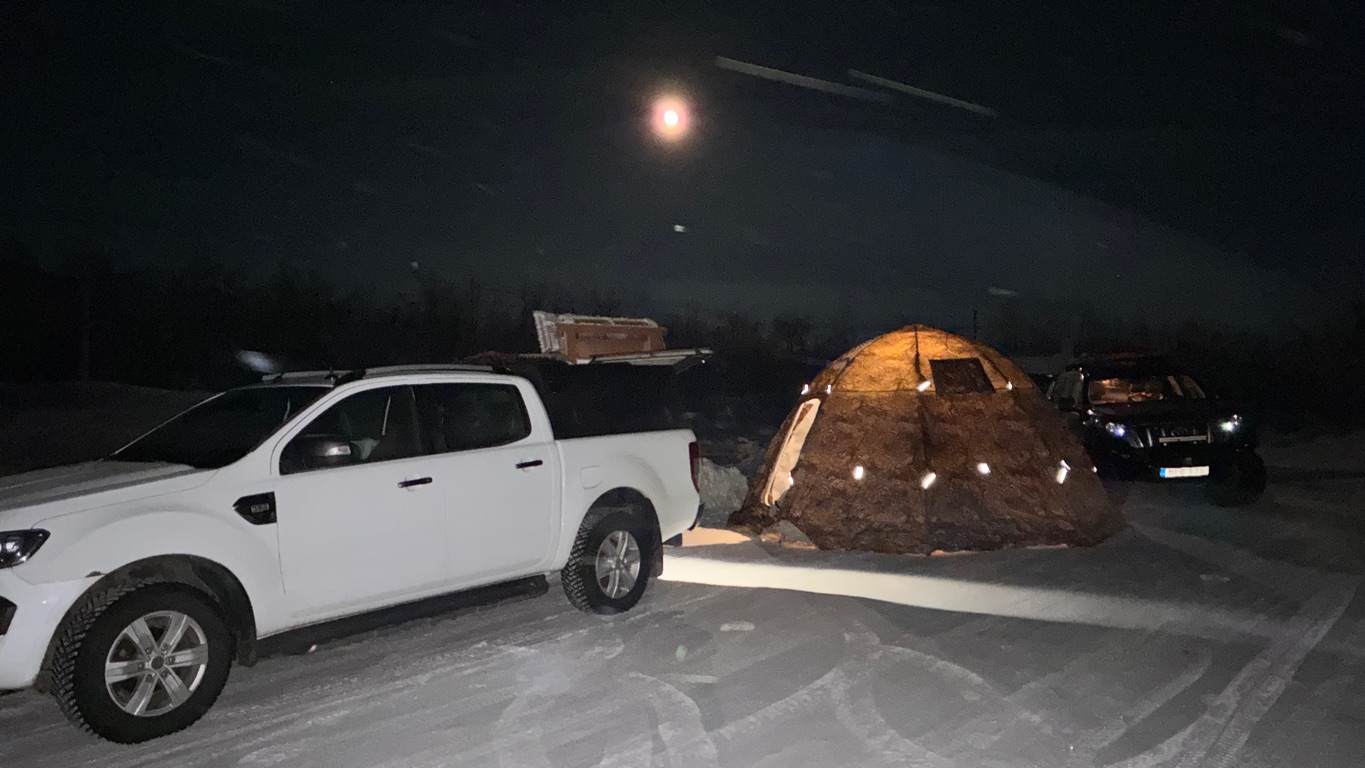 Natt ute på finska tundran. Hittade en plogad yta, perfekt för bil o tält 👌🏻