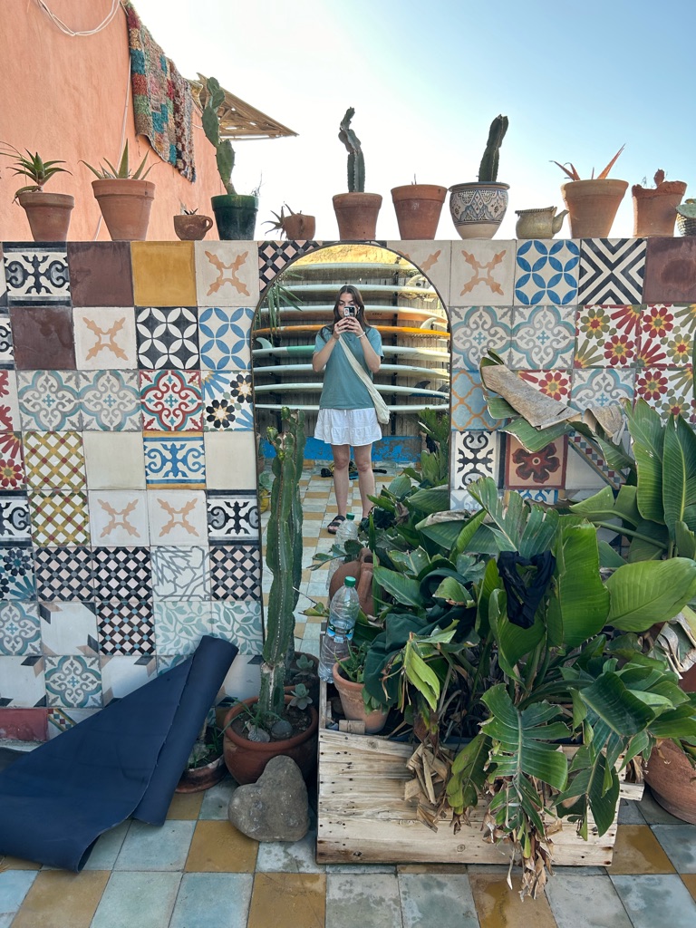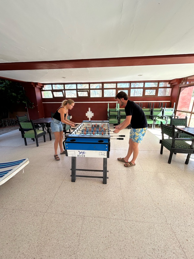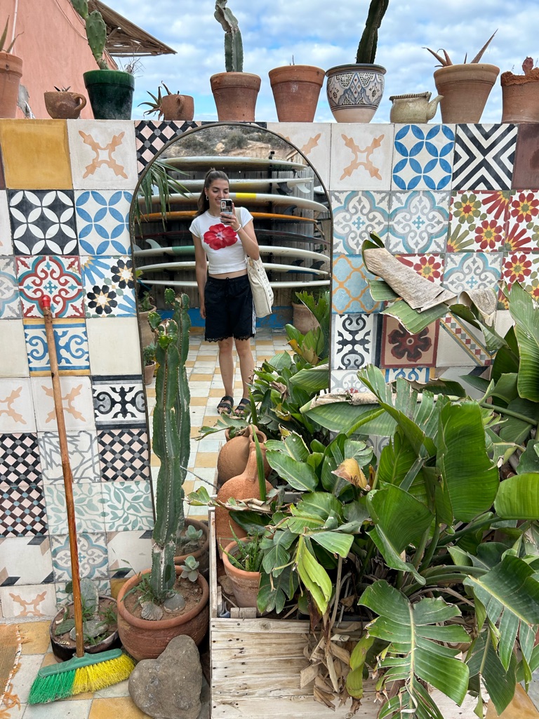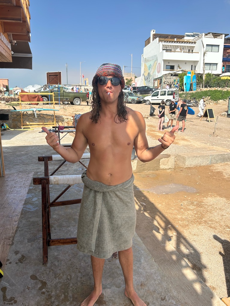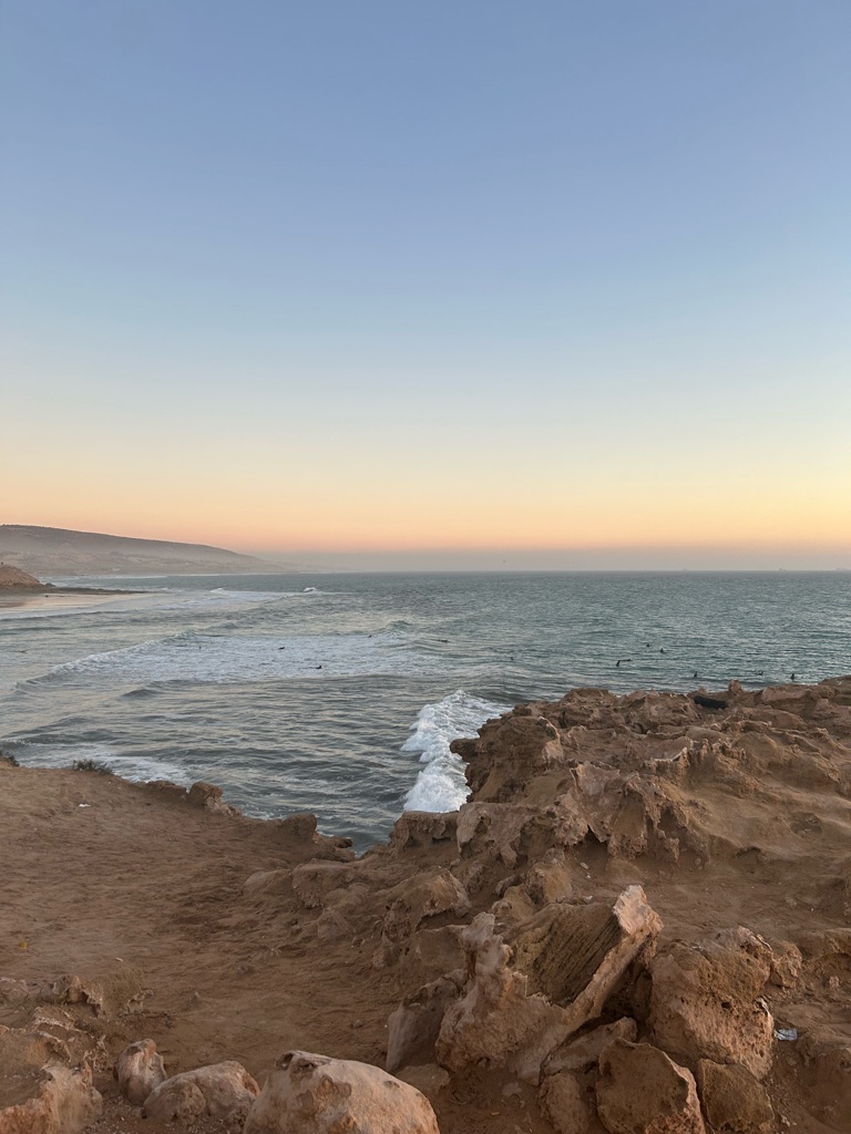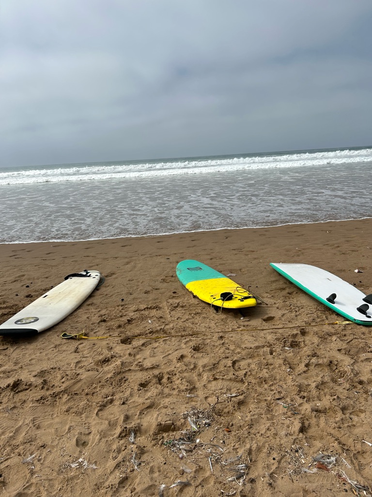 Goedemorgen! Eigenlijk was goedenacht passender toen de wekker om 01:50 ging, maar met een springende moeder en 3,5 week Marokko in het vooruitzicht was het goed opstaan. Te vroeg begon de reis naar Weeze vanaf waar ik naar Agadir zou vliegen. Gelukkig kon ik naar het vliegveld gebracht worden en met een paar boterhammen met eiersalade achter de kiezen gingen we ervoor. Eenmaal aangekomen op Weeze Airport ging alles erg voorspoedig en kon ik wachten tot we zouden vertrekken. De vlucht zelf ging ook lekker vlug doordat ik de tijd had gevuld met een romcom, muziek luisteren, lezen en een beetje dommelen. Na ruim 4 uur kwamen we dan ook aan in Marokko! Vanaf hier was het nog een moeilijke keuze of ik de taxi naar het surfdorp Tamraght zou pakken of met de lokale bussen zou gaan. Aangezien het nog vroeg was en ik de hele dag de tijd had besloot ik voor het laatste te gaan. Hoewel het niet volledig soepel ging met een grote koffer in een overvolle bus vol locals die geen Engels spraken, kwam ik met hulp van een aantal vriendelijke Marokkanen terecht in Tamraght. Hier had ik het hostel vrij snel gevonden en kon in gelukkig ook al wat eerder in mijn kamer.