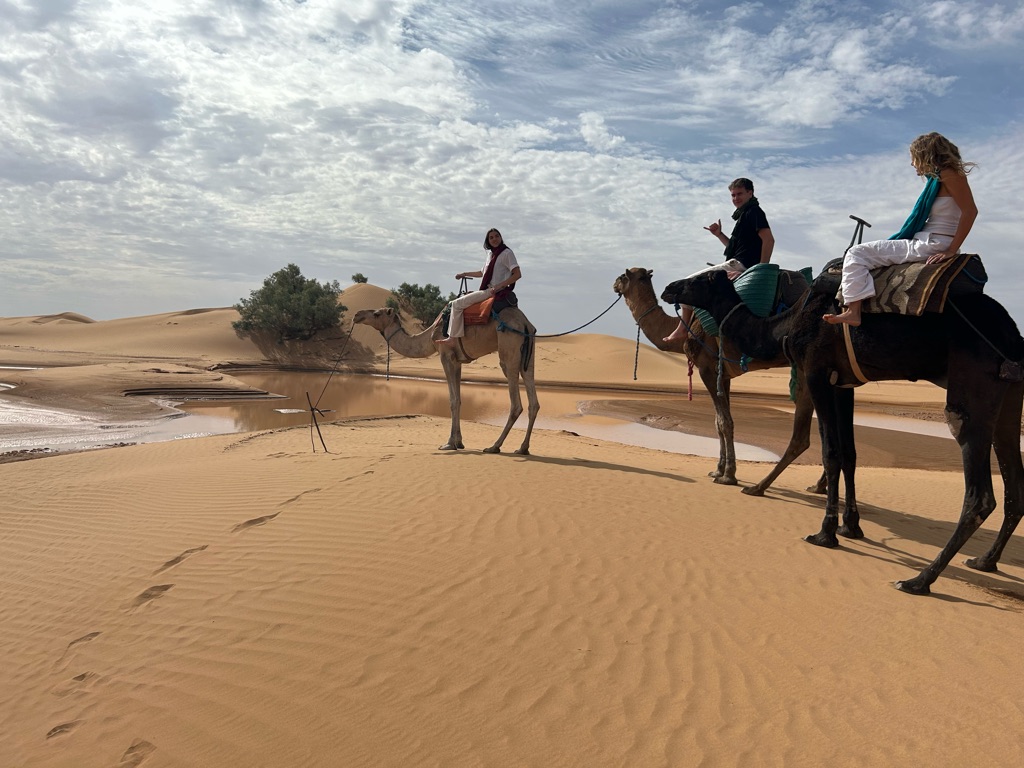 Kamelen op het strand, een erg bizarre ervaring