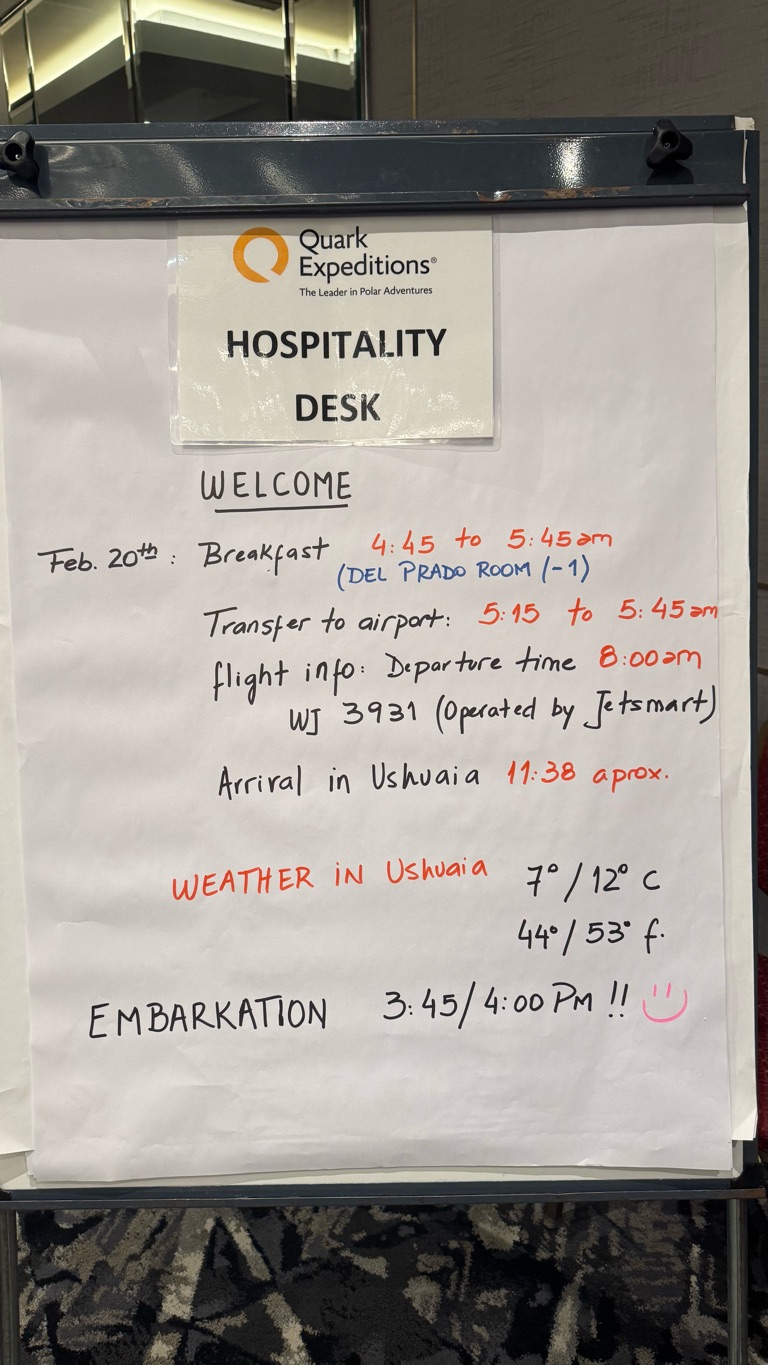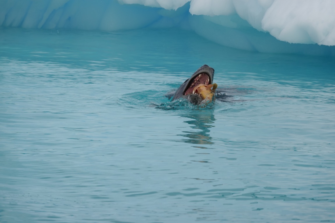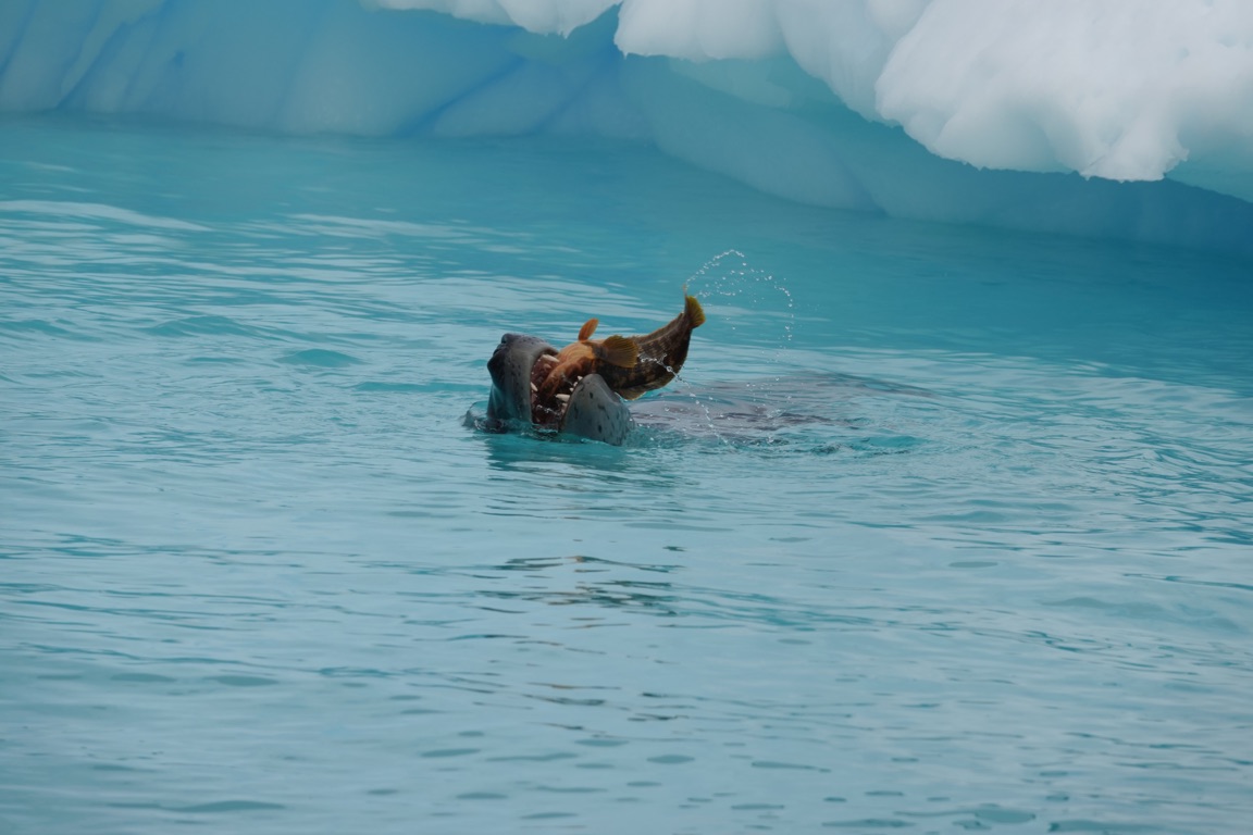 After dinner, we set sail for the Drake Passage. Surprisingly, it was calmer traveling north, then it was when we traveled south. We were truly lucky during both voyages. Lansing in “Endurance” describes the Drake Passage as “the most dreaded bit of ocean — here Mother Nature has been given a proving ground on which to demonstrate what she can do”. \240 Even on these travel days, we were kept busy with briefings and lectures. After dinner one evening, we gathered in the auditorium to play a variety of games. Each team had to answer a series of questions, ranging from naming as many types of penguins as we could, to attempting to identify the youngest and oldest expedition member. The games concluded with each group performing an interpretive dance that captured the essence of our cruise. Ali and I simulated getting in and out of zodiacs while Mary and one of the crew members laid on the ground and pretended to be Elephant seals, it was definitely a blast. The last day on board we had presentations on the building of the Ultramarine as our expedition leader, Jake, and our current captain Yuriy were part of the team that oversaw the construction of the ship. We also had briefing on disembarkation and a toast with the captain. The rest of the time flew by as we busied ourselves packing.
