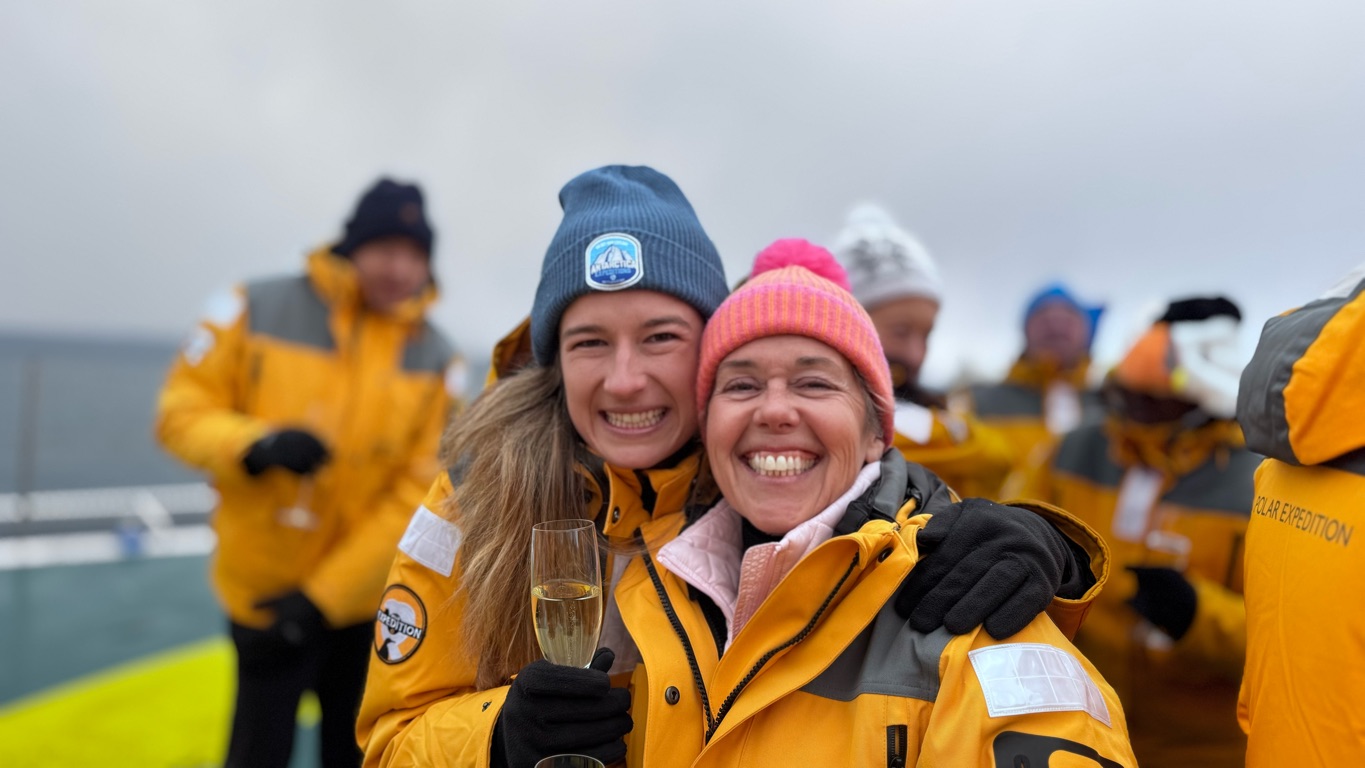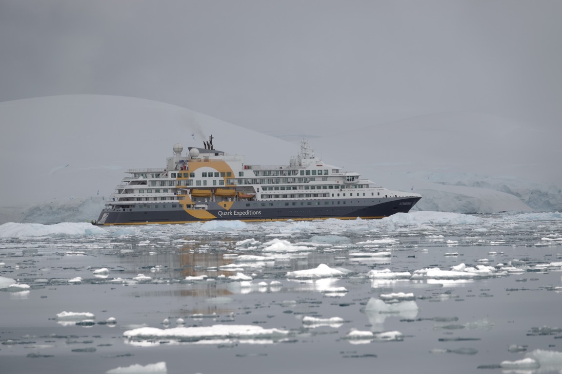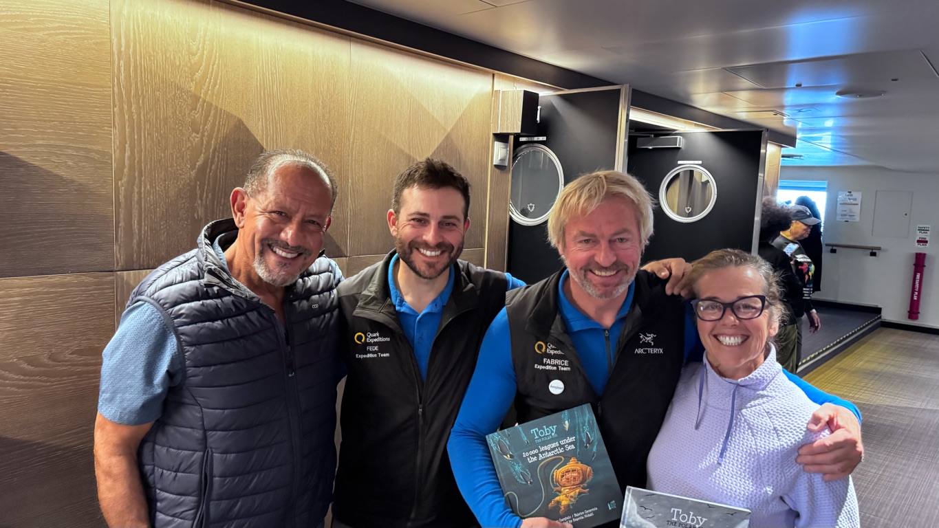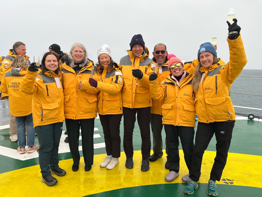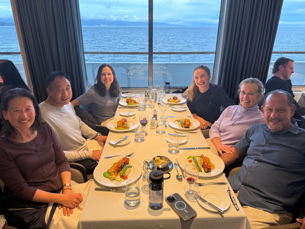 Shortly after returning to the ship, the expedition team mustered all the passengers on the helicopter deck for a farewell toast to Antarctica and to take a group photo. As we gathered, I realized how intriguing the make up of the ship’s passengers was. Although Quark was initially operated in Australia, it eventually became part of a British company, TUI Travel. Consequently, the ship is primarily English speaking, with passengers from Canada, Britain, Australia, New Zealand and some from the US. This cruise however, had large Chinese and Japanese contingencies and the largest number of African-American travelers they’ve had from a group called “The Black Travel Movement”. Because we were divided into four expedition groups, we gravitated to passengers in our group or passengers on our deck. We met two lovely young women from Australia, Ali and Jaqui, on our first or second night. They had taken a year off to do nothing but travel. In addition to Antarctica, upon returning to Ushuaia, they were going backpacking in Patagonia. They were both tremendously inspirational and we could only hope that our grandkids and great nieces and nephews can have that same adventurous spirit. The couple in the adjacent cabin, Tina and Tony, were also lovely. They were New Zealanders of asian descent. Tony is an anesthesiologist, and Tina is an immigration attorney, currently finishing a PhD. Most people we met, passengers and crew alike, were wonderful and fascinating.
