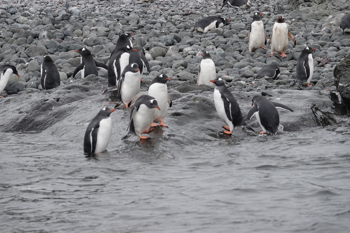 The afternoon’s landing on Livingston Island was by far the most lively of the trip. Before landing, we zodiac toured for over an hour, \240the water was teeming with wildlife. The Island was brimming with so many gentoo and chinstrap penguins, members of the expedition team had to escort us in groups of ten, so not to disturb them. \240As we landed, we were surrounded by hundreds of gentoo penguins. As we ascended a slippery trail towards a ridge overlooking the bay, we encountered a colony of chinstrap penguins. I know we posted a video about this on Facebook, but I don't recall talking about the overwhelming smell emanating from a penguin colony. It can be shocking, and it takes a bit to get accustomed to it. Interestingly enough, for scientists, the penguin guano (poop) informs them on the health of the colony. \240Also dotted throughout the island were elephant seals, the largest we had encountered so far. We were amazed at how nimble these bus-size creatures were on land.