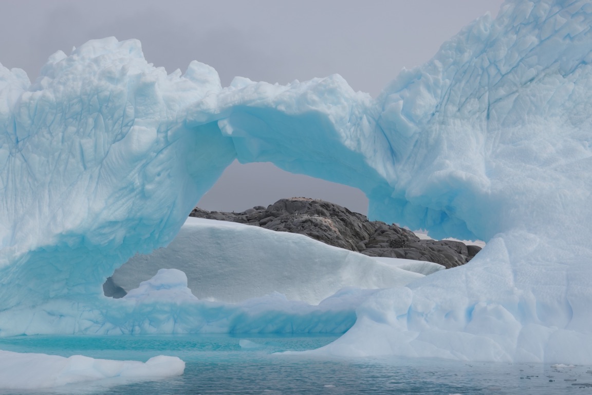 Our first landing of the day consisted of a steep snowy trek, up a narrow ridge on Two Hummock Island. The expedition has two professional mountaineers. Phil, who has summited many of the mountains in Antarctica, and Marcos, who has climbed mountains all over the world, including Antarctica. Marcos, who’s from the Patagonia region of Argentina, is one of the oldest expedition members. Although he’s an experienced mountaineer, Marco‘s main job seems to be to flirt with the ladies, and keep everyone laughing. Like many of the expedition staff, Marco speaks numerous languages, but his English sounds like Fernando Lamas, (Mr. Corinthian Leather, or Billy Crystal’s \240rendition of “it’s better to look good than to feel good). Collectively, Phil and Marcos comprise the forward team. They scope out landing sites, and create paths for passengers to follow, steering everyone clear of crevasses. Although in theory, the path they chose was wide enough for two people, ice on either side of the ridge made it tricky to maneuver, \240especially when one person was ascending and one was descending. Although snow fall was heavy, the views from the top of the ridge were breathtaking. The afternoon landing in Portal Point and the subsequent zodiac tour were almost mirror images of the morning’s landing, with a lot less snow. We have to mention that not all passengers took advantage of the multiple daily landings and \240zodiac cruises. Quite often, as we dragged our frozen limbs to our cabin, we would spot some delicate flowers emerging from the spa — bless their hearts.