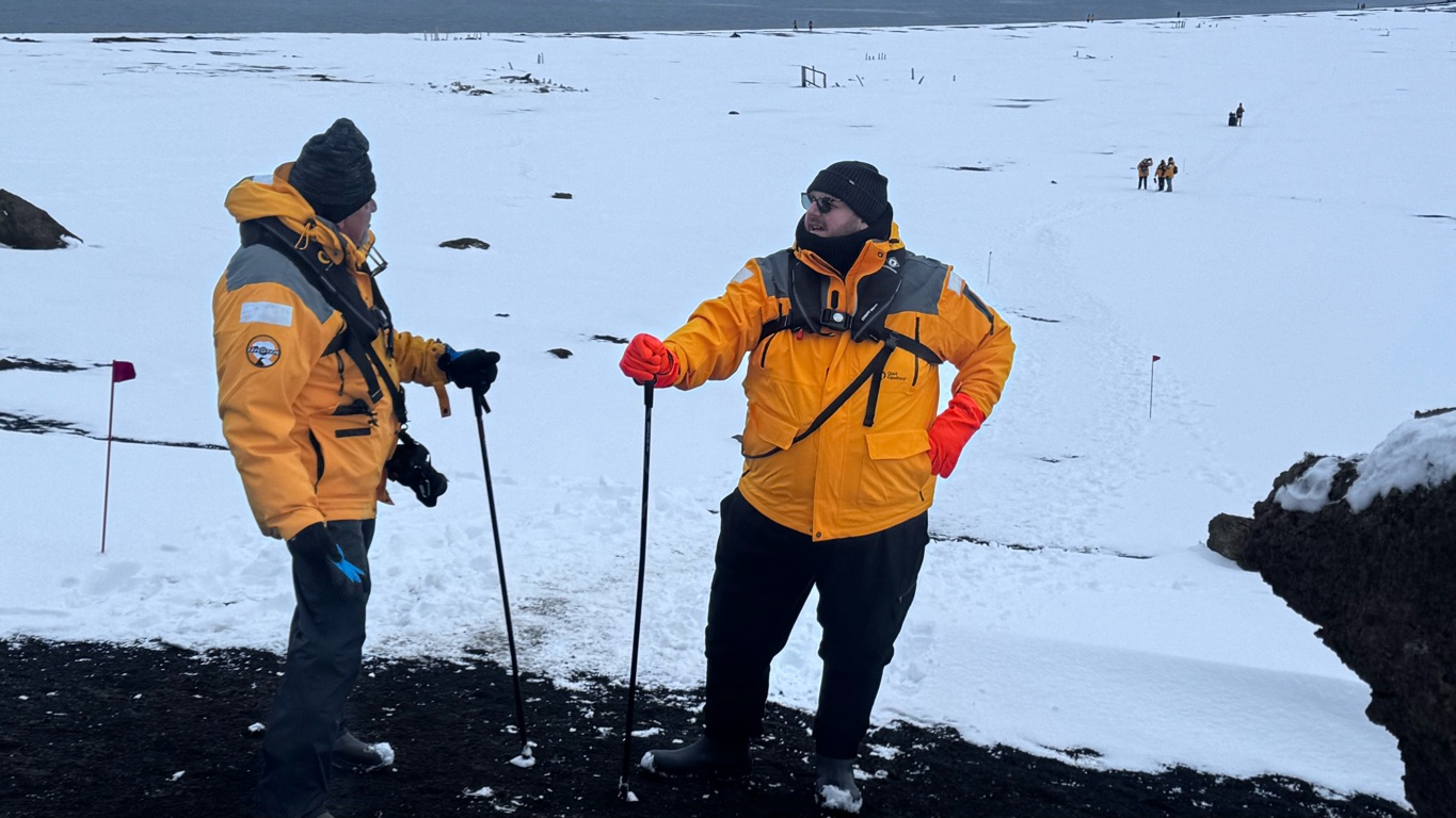 Tuesday, February 25th, was helicopter day, and subsequently our longest expedition day. The conditions for deploying the helicopters have to optimal, clear visibility and fairly calm winds. We were up early that morning and were graced with a magnificent sunrise. After a short walk and hearty breakfast, we readied ourselves for the day’s activities. We have an exceptional young Canadian expedition leader, named Jake. He, the captain and the hotel manager have known each other since they were all junior officers. As a result, they collaborate to maximize the number of excursions passengers can participate in. \240Irrespective of the forecast, weather in Antarctica is at best unpredictable. Because of severe winds, rough seas or freak storms, expedition ships often have to cancel activities. They consider themselves fortunate if they can execute half of the planned excursions. \240As we previously mentioned, day one was too windy to launch zodiacs, as a result, Jake and Captain Yuriy scoured numerous areas to find a place where we could have an excursion rather than cancel activities. According to staff that have previously cruised with Jake, unlike other expedition leaders, Jake goes out of his way to ensure excursion and landings take place.
