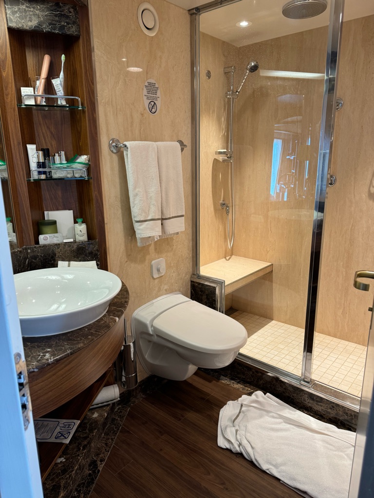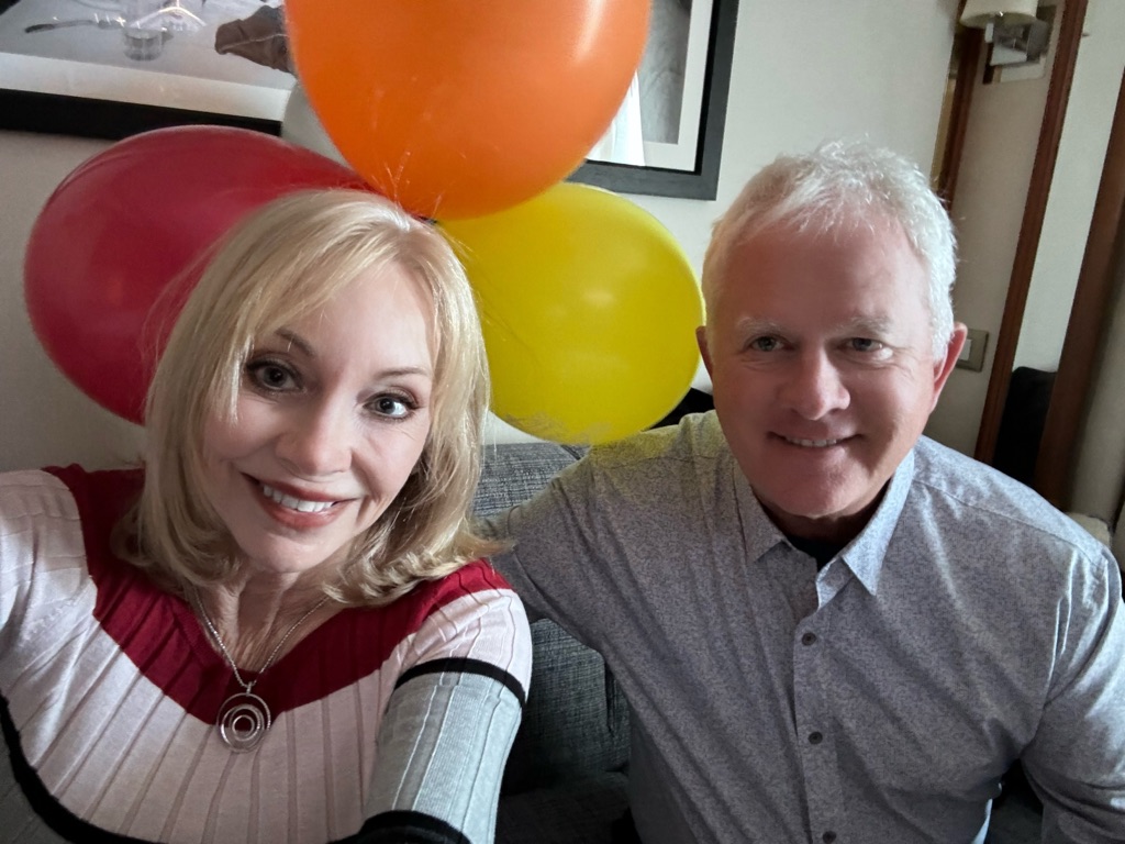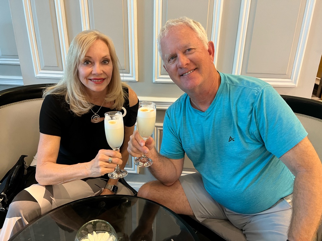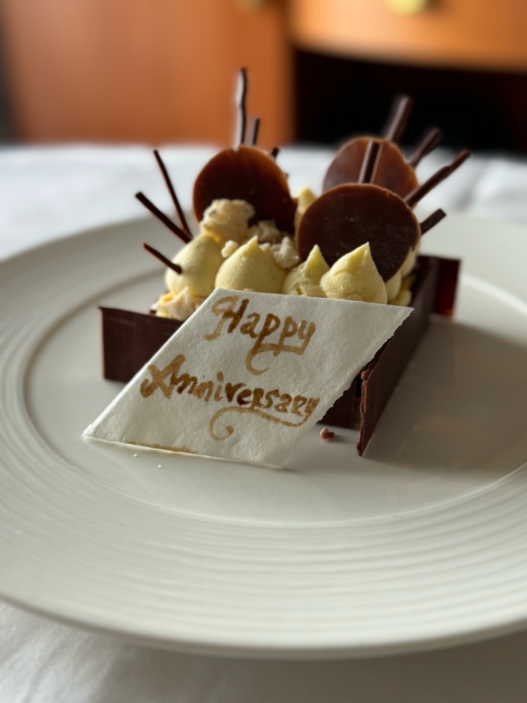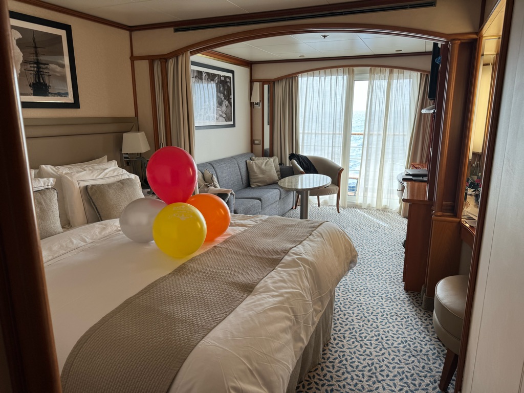 Then we returned from the bridge tour to find our room made up with Happy Anniversary balloons. It isn’t our anniversary, but we enjoyed the mimosas, and the cake!