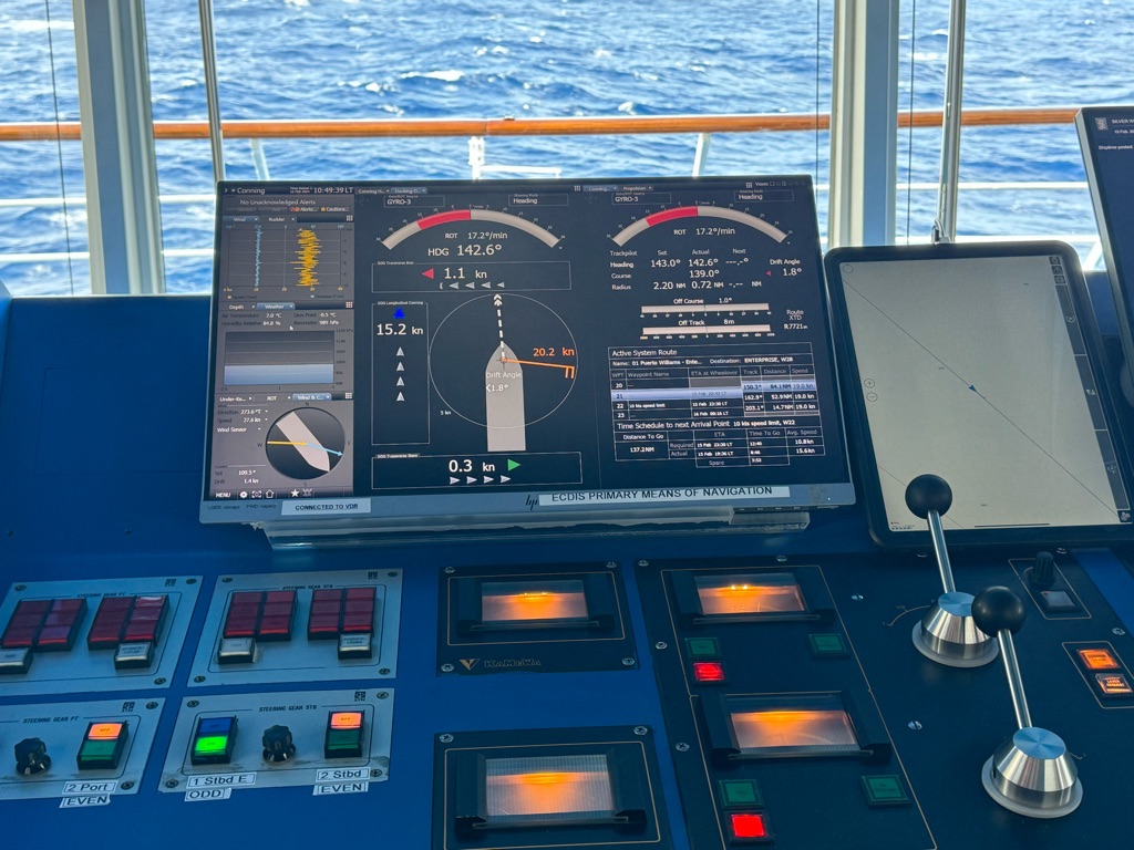 The Drake really didn’t calm down, but the captain changed course and, for the dinner hour, placed the waves behind us for a more \240comfortable dining experience.