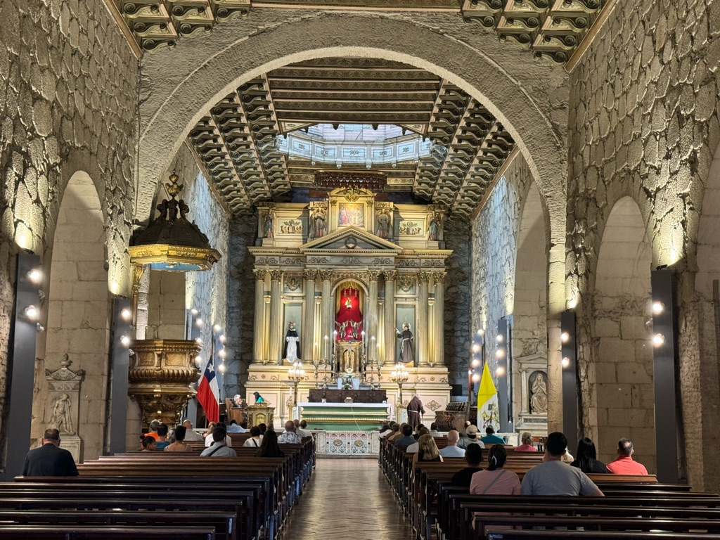 Chile was conquered by Spain and like most of Central and South America, the primary religion is Catholicism. \240This church was famed for having lost the cap of its tower during and \240earthquake in 2010. K